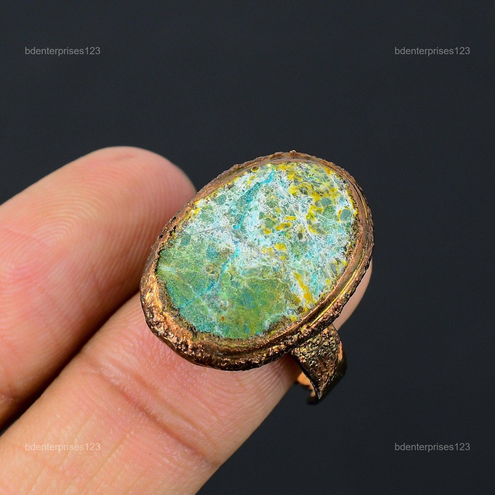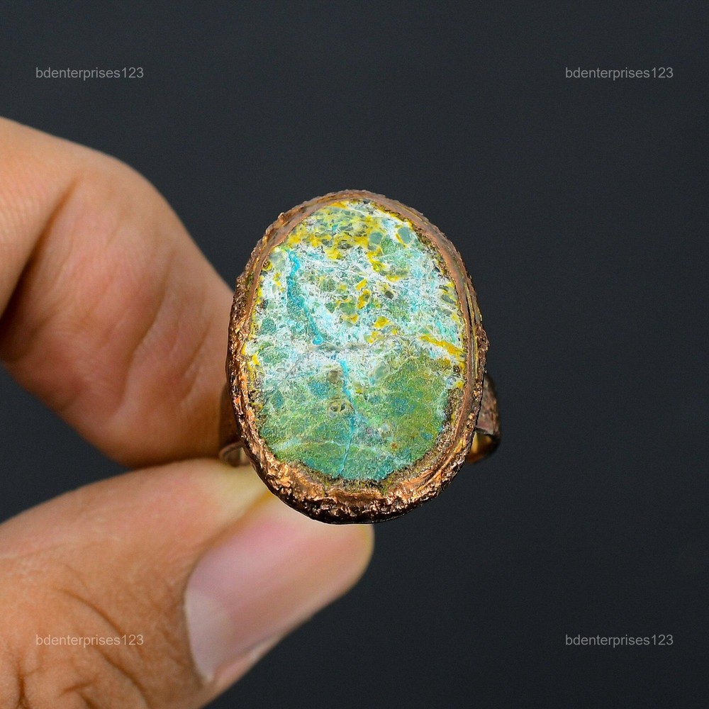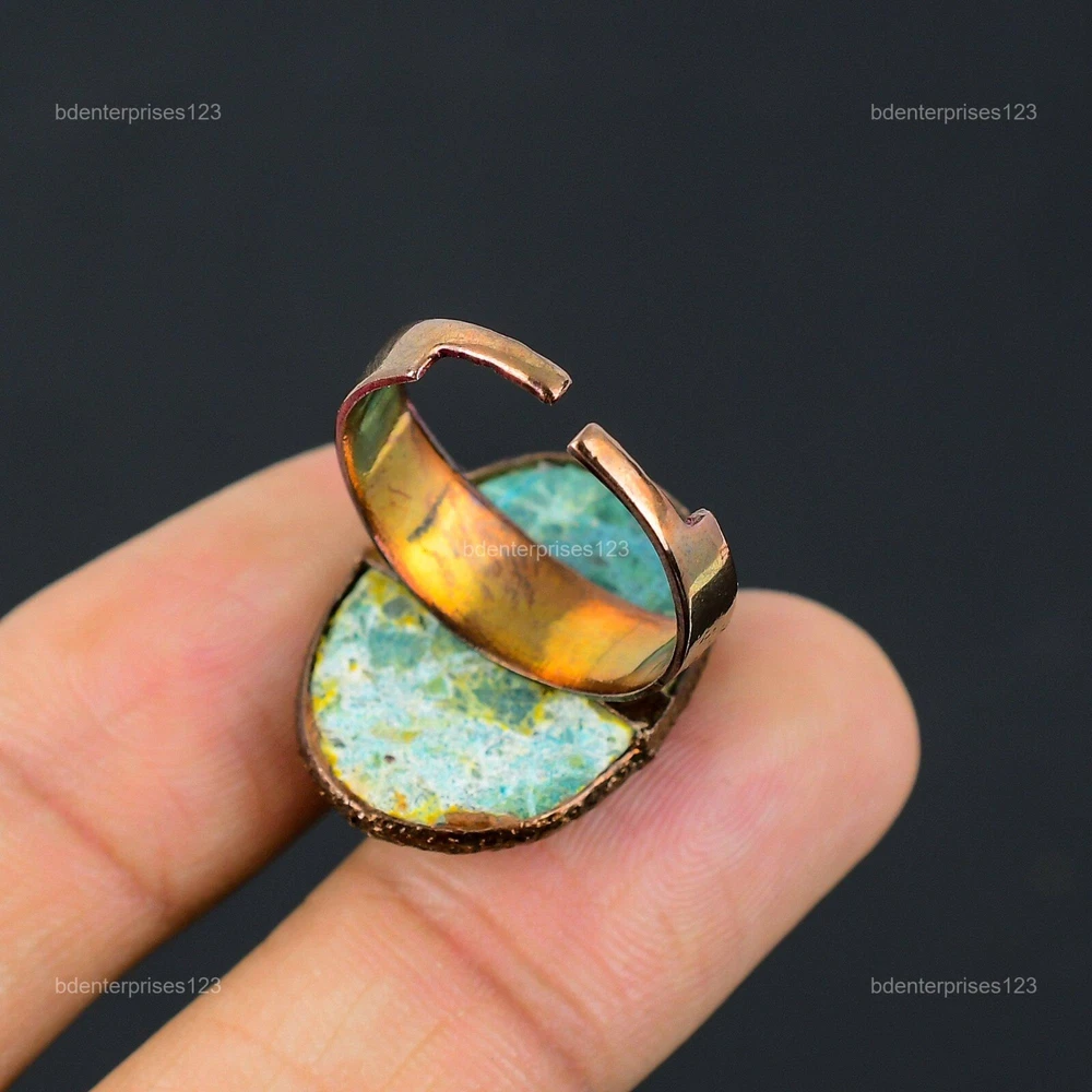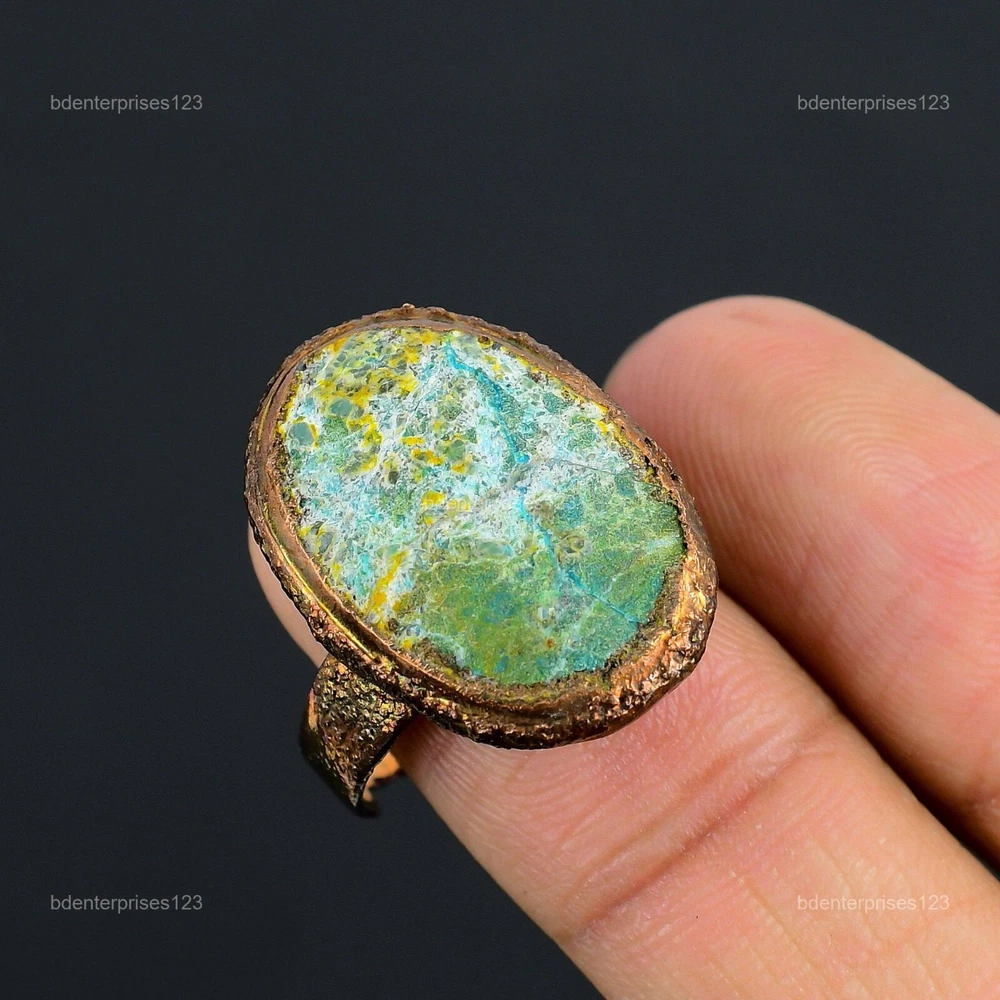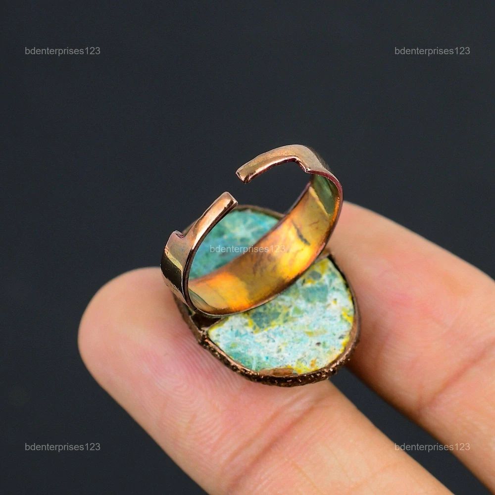 Welcome to bdenterprises123 Mothers day Deal Copper Chrysocolla Rough Gemstone Wedding Electroformed Ring Handmade Ring, Wire Wrapped Ring, Wire Wrapped Jewelry, Copper Pendant, Copper Wire Ring, Wrapped Jewelry, Wire Wrap Ring, Wire Wrap Jewelry SKU : HZR-76 Gemstone : Chrysocolla Rough Stone Shape : Oval Metal Purity : Unknown Copper Ring Size : Adjustable US Adjustable : Yes Copper has been used for jewelry making for thousands of years, dating back to ancient civilizations such as the Egyptians, Romans, and Aztecs. Copper was valued for its beauty, versatility, and durability, and was often used to make everything from jewelry and coins to cookware and tools. In addition to its historical significance, copper jewelry also offers several benefits. Copper is a natural conductor of heat and electricity, which makes it ideal for energy healing and therapeutic purposes. Wearing copper jewelry is believed to have various health benefits, such as improving circulation, reducing inflammation, and boosting the immune system. Some people also believe that copper jewelry has the ability to balance energy and improve mood. For Mother's Day Gift For Father's Day Gift For Promise For Valentine's Day For Halloween Party For Christmas Day Gift For New Year Party For Mom For Her If you can't find the information you need or need some advice for your design? Feel free to contact us. We are fast to reply :) All our work is made by hand with Love and Care in our workshop Thank you so much for visiting and hope you enjoy shopping with us bdenterprises123 is committed to delivering the best quality sterling silver jewelry to customers. As a handmade jewelry manufacturer, we offer an extensive selection of copper gemstone jewelry that showcases the brilliance of our craftsmanship. We are an experienced handmade jewelry supplier with expertise in embellishing gemstones to suit every style. We offer you the liberty to create your jewelry ensemble with sparkling, earthy, and pure gemstones. Our Talented artisans masterfully handcraft each piece of jewelry you see here. Our pieces are made with genuine gemstones. The one-of-a-kind piece you see here is the same exact piece you will receive.