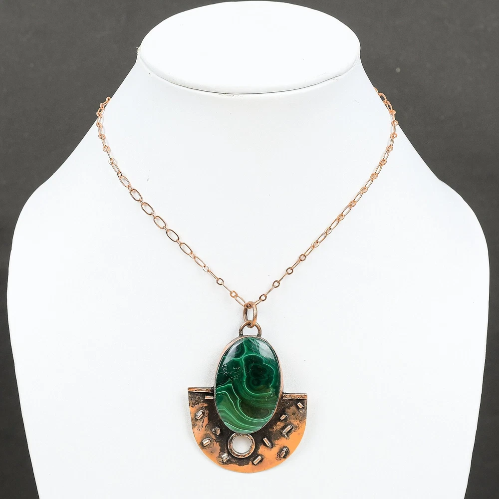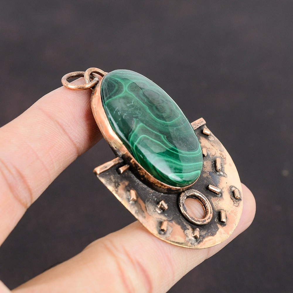 Note : Due to the natural formation of this gemstone. Slight variation in design and color are to be expected. Welcome to Silver Creation Mothers day Deal Copper Natural Malachite Elegant Wife Anniversary Boho Pendant Handmade Pendant, Wire Wrapped Pendant, Wire Wrapped Jewelry, Copper Pendant, Copper Wire Pendant, Wrapped Jewelry, Wire Wrap Pendant, Wire Wrap Jewelry SKU : WP-113 Stone Shape : Oval Metal Purity : Unknown Copper Length : 70 Millimeters Width : 50 Millimeters Copper has been used for jewelry making for thousands of years, dating back to ancient civilizations such as the Egyptians, Romans, and Aztecs. Copper was valued for its beauty, versatility, and durability, and was often used to make everything from jewelry and coins to cookware and tools. In addition to its historical significance, copper jewelry also offers several benefits. Copper is a natural conductor of heat and electricity, which makes it ideal for energy healing and therapeutic purposes. Wearing copper jewelry is believed to have various health benefits, such as improving circulation, reducing inflammation, and boosting the immune system. Some people also believe that copper jewelry has the ability to balance energy and improve mood. For Mother's Day Gift For Father's Day Gift For Promise For Valentine' Day For Halloween Party For Christmas Day Gift For New Year Party For Mom For Her If you can't find the information you need or need some advice for your design? Feel free to contact us. We are fast to reply :) All our work is made by hand with Love and Care in our workshop Thank you so much for visiting and hope you enjoy shopping with us Silvercreations is committed to delivering the best quality sterling silver jewelry to customers. As a handmade jewelry manufacturer, we offer an extensive selection of copper gemstone jewelry that showcases the brilliance of our craftsmanship. We are an experienced handmade jewelry supplier with expertise in embellishing gemstones to suit every style. We offer you the liberty to create your jewelry ensemble with sparkling, earthy, and pure gemstones. Our Talented artisans masterfully handcraft each piece of jewelry you see here. Our pieces are made with genuine gemstones.