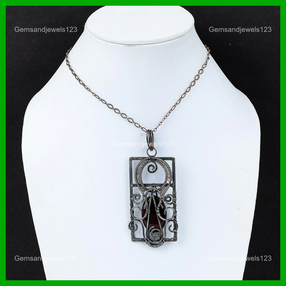 Note : Due to the natural formation of this gemstone. Slight Variation in design and color are to be expected. Welcome to gemsandjewels123 Mothers day Deal Copper Oval Red Fire Labradorite Gemstone Wire Wrapped Pendant Handmade Pendant, Wire Wrapped Pendant, Wire Wrapped Jewelry, Copper Pendant, Copper Wire Pendant, Wrapped Jewelry, Wire Wrap Pendant, Wire Wrap Jewelry SKU : VFWP-4053 Gemstone : Red Fire Labradorite Stone Shape : Oval Metal Purity : Unknown Copper Length : 94 Millimeters Width : 41 Millimeters Copper has been used for jewelry making for thousands of years, dating back to ancient civilizations such as the Egyptians, Romans, and Aztecs. Copper was valued for its beauty, versatility, and durability, and was often used to make everything from jewelry and coins to cookware and tools. In addition to its historical significance, copper jewelry also offers several benefits. Copper is a natural conductor of heat and electricity, which makes it ideal for energy healing and therapeutic purposes. Wearing copper jewelry is believed to have various health benefits, such as improving circulation, reducing inflammation, and boosting the immune system. Some people also believe that copper jewelry has the ability to balance energy and improve mood. For Mother's Day Gift For Father's Day Gift For Promise For Valentine's Day For Halloween Party For Christmas Day Gift For New Year Party For Mom For Her If you can't find the information you need or need some advice for your design? Feel free to contact us. We are fast to reply :) All our work is made by hand with Love and Care in our workshop Thank you so much for visiting and hope you enjoy shopping with us gemsandjewels123 is committed to delivering the best quality sterling silver jewelry to customers. As a handmade jewelry manufacturer, we offer an extensive selection of copper gemstone jewelry that showcases the brilliance of our craftsmanship. We are an experienced handmade jewelry supplier with expertise in embellishing gemstones to suit every style. We offer you the liberty to create your jewelry ensemble with sparkling, earthy, and pure gemstones. Our Talented artisans masterfully handcraft each piece of jewelry you see here. Our pieces are made with genuine gemstones. The one-of-a-kind piece you see here is the same exact piece you will receive.