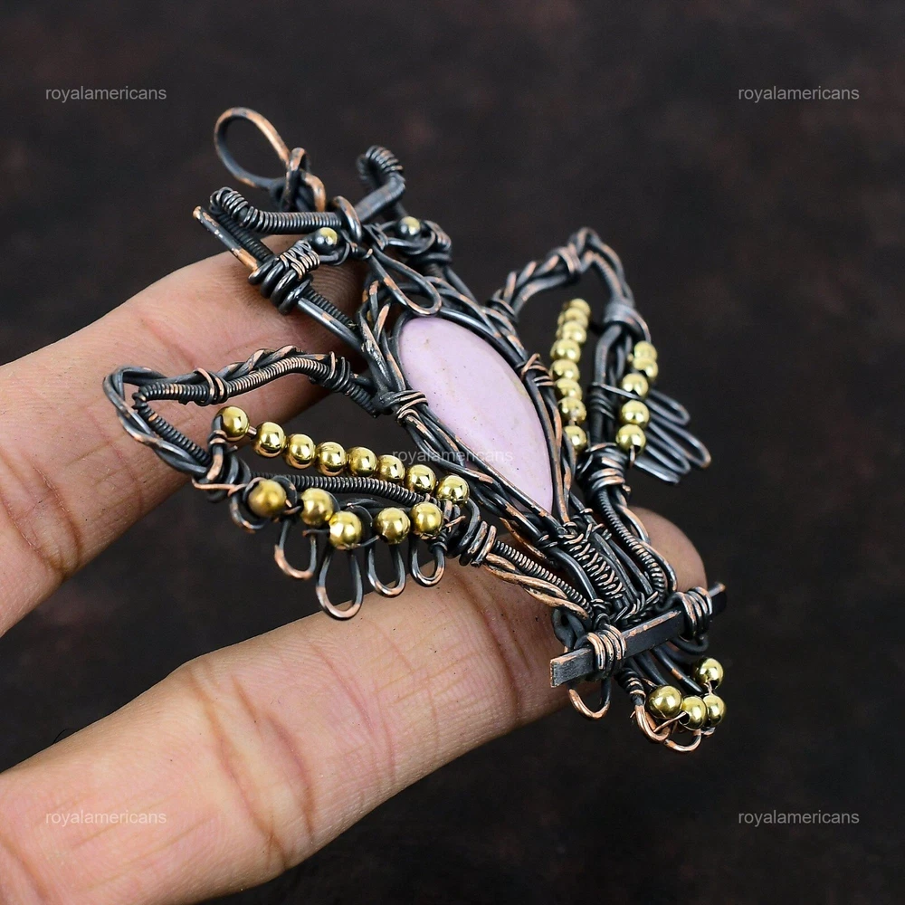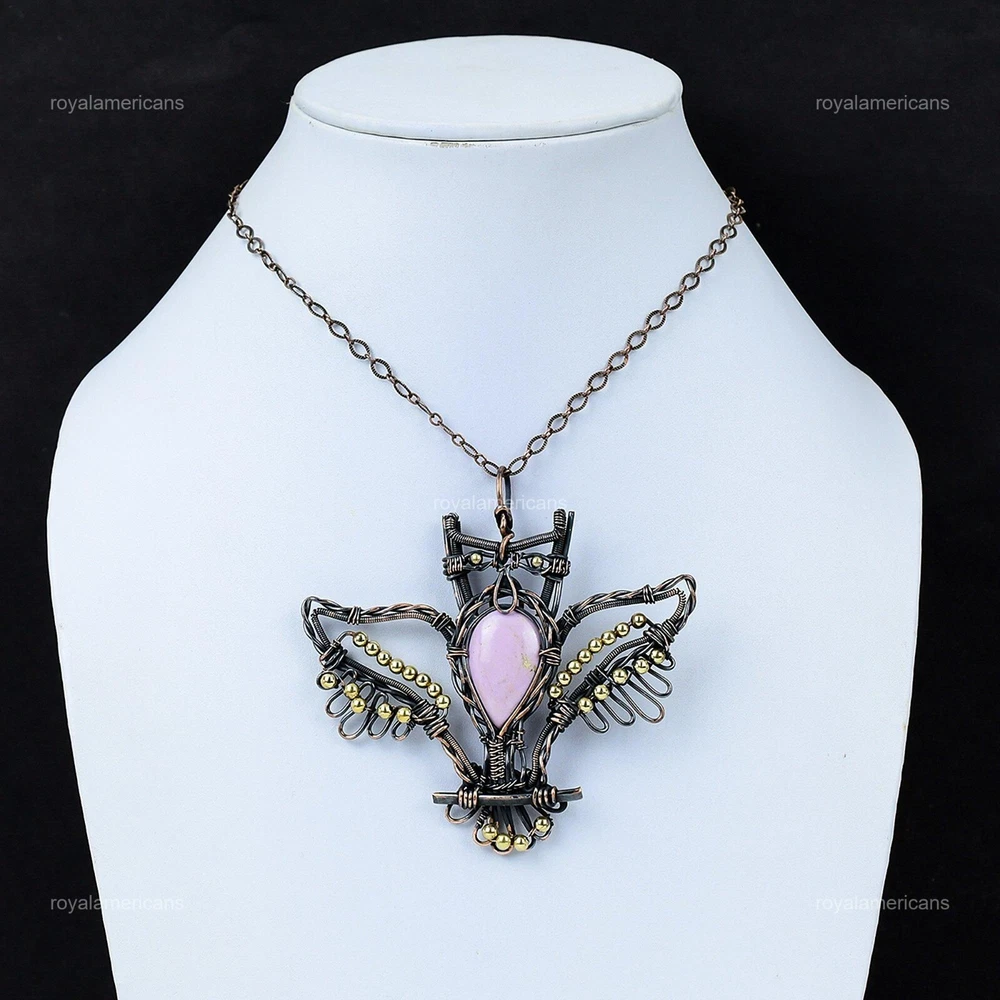 Note : Due to the natural formation of this gemstone. Slight variation in design and color are to be expected. Welcome to Royalamericans Mothers day Deal Copper Natural Phosphosiderite Art Deco Wife Boho Owl Pendant Handmade Pendant, Wire Wrapped Pendant, Wire Wrapped Jewelry, Copper Pendant, Copper Wire Pendant, Wrapped Jewelry, Wire Wrap Pendant, Wire Wrap Jewelry SKU : UFWP-4335 Gemstone : Phosphosiderite Stone Shape : As Seen In Picture Metal Purity : Unknown Copper Length : Millimeters Width : Millimeters Copper has been used for jewelry making for thousands of years, dating back to ancient civilizations such as the Egyptians, Romans, and Aztecs. Copper was valued for its beauty, versatility, and durability, and was often used to make everything from jewelry and coins to cookware and tools. In addition to its historical significance, copper jewelry also offers several benefits. Copper is a natural conductor of heat and electricity, which makes it ideal for energy healing and therapeutic purposes. Wearing copper jewelry is believed to have various health benefits, such as improving circulation, reducing inflammation, and boosting the immune system. Some people also believe that copper jewelry has the ability to balance energy and improve mood. For Mother's Day Gift For Father's Day Gift For Promise For Valentine's Day For Halloween Party For Christmas Day Gift For New Year Party For Mom For Her If you can't find the information you need or need some advice for your design? Feel free to contact us. We are fast to reply :) All our work is made by hand with Love and Care in our workshop Thank you so much for visiting and hope you enjoy shopping with us Royalamericans is committed to delivering the best quality sterling silver jewelry to customers. As a handmade jewelry manufacturer, we offer an extensive selection of copper gemstone jewelry that showcases the brilliance of our craftsmanship. We are an experienced handmade jewelry supplier with expertise in embellishing gemstones to suit every style. We offer you the liberty to create your jewelry ensemble with sparkling, earthy, and pure gemstones. Our Talented artisans masterfully handcraft each piece of jewelry you see here. Our pieces are made with genuine gemstones.
