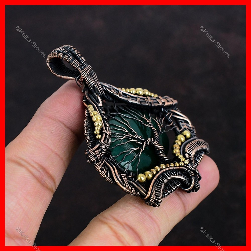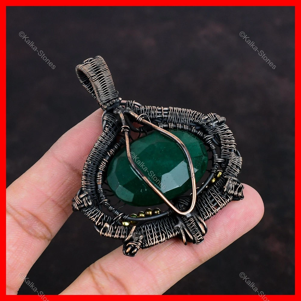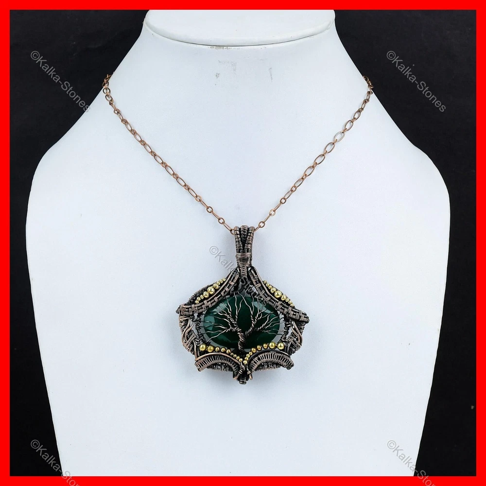 Note : Due to the natural formation of this gemstone. Slight variation in design and color are to be expected. Welcome to Kalka Stones Mothers day Deal Copper Zambian Emerald Stone Wire Wrapped Tree Of Life Pendant Handmade Pendant, Wire Wrapped Pendant, Wire Wrapped Jewelry, Copper Pendant, Copper Wire Pendant, Wrapped Jewelry, Wire Wrap Pendant, Wire Wrap Jewelry SKU : VFWP-4583 Gemstone : Zambian Emerald Stone Shape : Oval Metal Purity : Unknown Copper Length : 72 Millimeters Width : 60 Millimeters Copper has been used for jewelry making for thousands of years, dating back to ancient civilizations such as the Egyptians, Romans, and Aztecs. Copper was valued for its beauty, versatility, and durability, and was often used to make everything from jewelry and coins to cookware and tools. In addition to its historical significance, copper jewelry also offers several benefits. Copper is a natural conductor of heat and electricity, which makes it ideal for energy healing and therapeutic purposes. Wearing copper jewelry is believed to have various health benefits, such as improving circulation, reducing inflammation, and boosting the immune system. Some people also believe that copper jewelry has the ability to balance energy and improve mood. For Mother's Day Gift For Father's Day Gift For Promise For Valentine's Day For Halloween Party For Christmas Day Gift For New Year Party For Mom For Her If you can't find the information you need or need some advice for your design? Feel free to contact us. We are fast to reply :) All our work is made by hand with Love and Care in our workshop Thank you so much for visiting and hope you enjoy shopping with us Kalka Stones is committed to delivering the best quality jewelry to customers. As a handmade jewelry manufacturer, we offer an extensive selection of copper gemstone jewelry that showcases the brilliance of our craftsmanship. We are an experienced handmade jewelry supplier with expertise in embellishing gemstones to suit every style. We offer you the liberty to create your jewelry ensemble with sparkling, earthy, and pure gemstones. Our Talented artisans masterfully handcraft each piece of jewelry you see here. Our pieces are made with genuine gemstones.