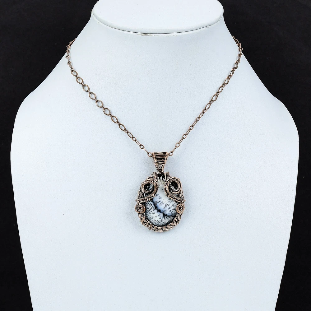Mother's Day Deal Boho Dendrite Opal Copper Wire Wrapped Pendant