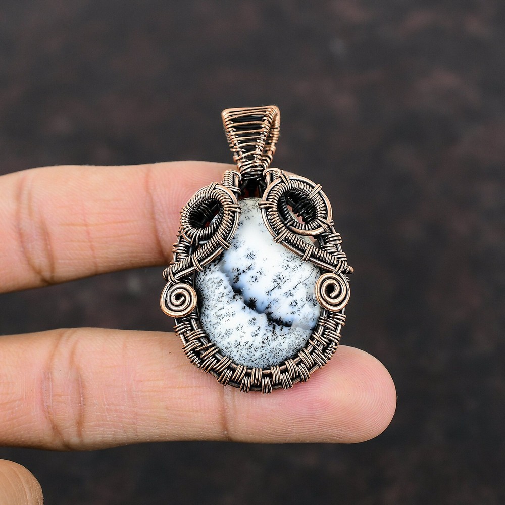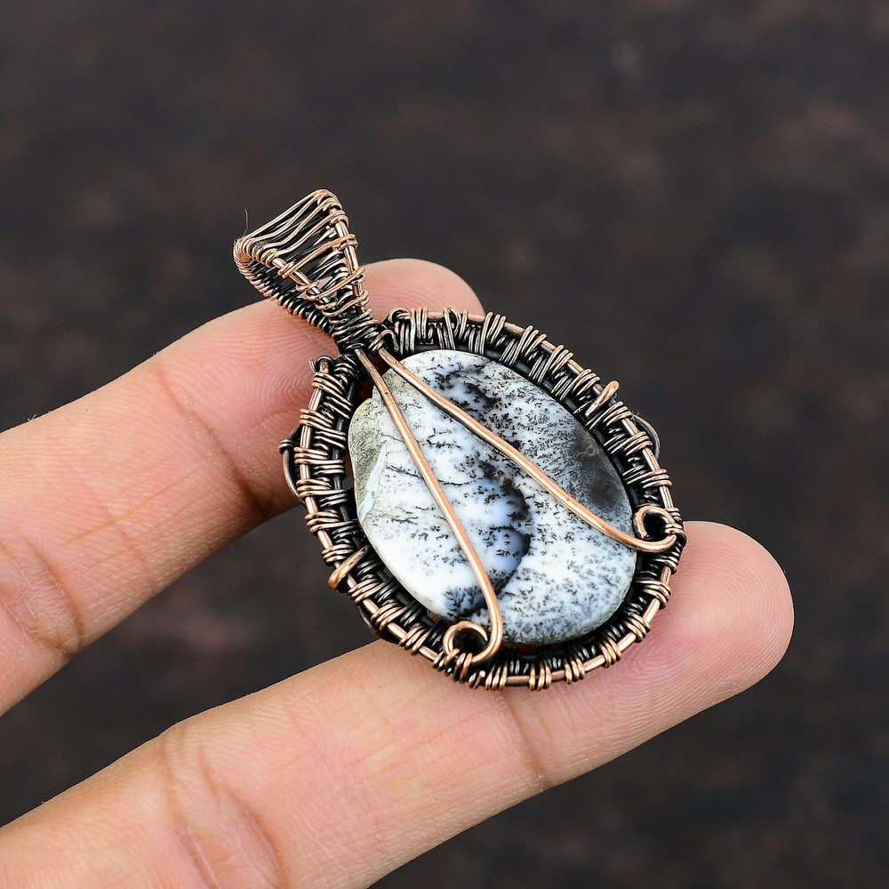 Pendant/Locket Type: Charm Number of Gemstones: As Seen in Picture Pendant Shape: Oval Metal: Copper Country of Origin: India Type: Pendant Signed: Yes Main Stone Creation: Natural Features: Engraved, Handcrafted Metal Purity: Unknown Cut Grade: Very Good Wholesale: Yes Color: Brown Main Stone Treatment: Not Enhanced Customized: No Style: Pendant Antique: No Setting Style: Wire Wrap Theme: Beauty, Bohemian, Ethnic, Healing, Love, Luck, Holiday Country/Region of Manufacture: India Closure: Not Applicable Vintage: No Main Stone Shape: Oval Necklace Length: Not Applicable Main Stone: Dendrite Opal Chain Type: Not Applicable Main Stone Color: White Occasion: Anniversary, Birthday, Engagement, Wedding Base Metal: Copper Secondary Stone: No Stone Material: Crystal, Gemstone, Stone, Metal, Mineral Seller Notes: “Handcrafted Copper Gemstone Pendant Jewelry” Brand: Unbranded Seller Warranty: Yes