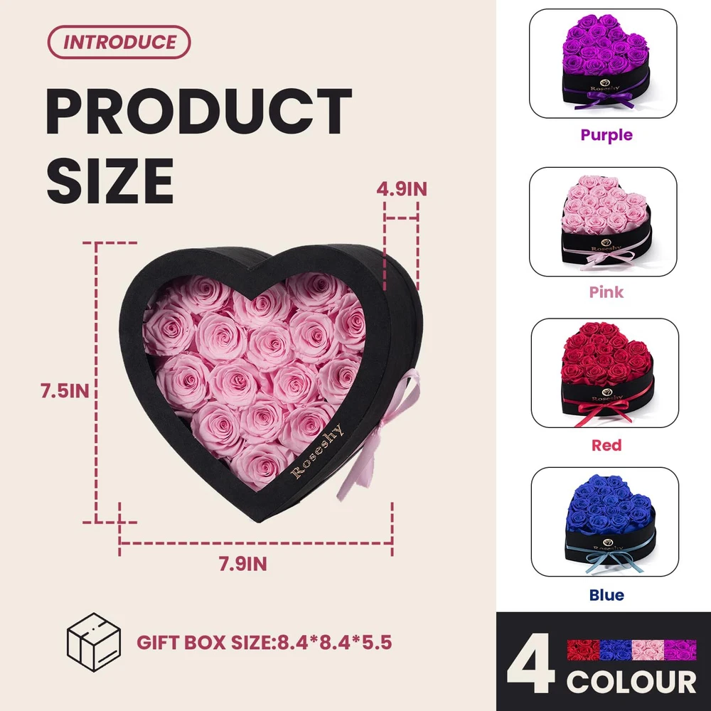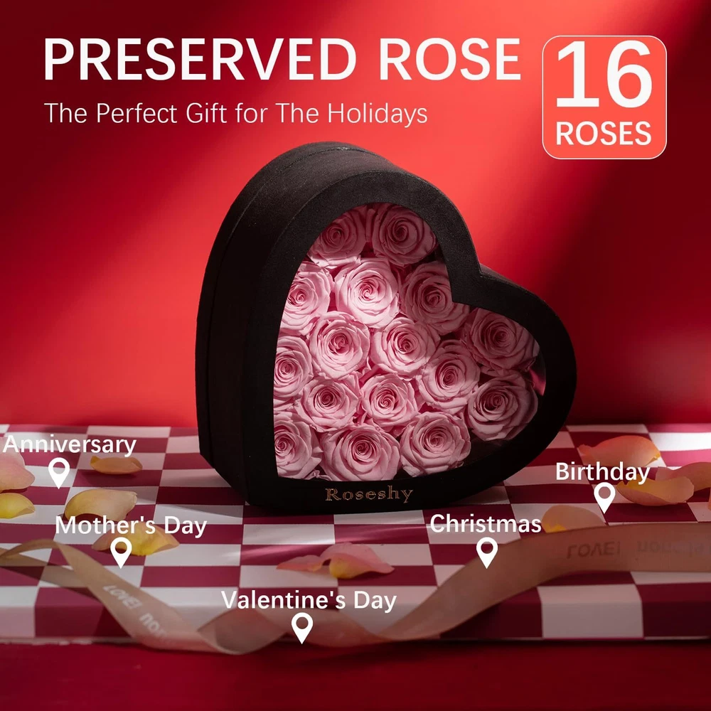 Mothers Day Flowers Roses Gifts for Mom,16pcs Forever Preserved Roses in Heart Shape Gift Box,Mothers Day Delivery Gifts-Roses Gifts for Her Women,Mom Wife Eternal Preserved Roses: These preserved roses can be kept for 1-3 years, expressing everlasting love and affection. Heart-Shaped Gift Box: The set includes 16pcs of forever preserved roses beautifully arranged in a heart-shaped gift box, perfect for romantic occasions. Thoughtful Gifts: Ideal for girlfriends, wives, moms, or any special woman in your life, these roses make heartfelt gifts that convey love and appreciation. Versatile Occasion: Whether it's Christmas, Valentine's Day, Mother's Day, anniversary, or a birthday, these preserved roses are a fitting gift choice. Lasting Beauty: Unlike fresh flowers that wither quickly, this preserved rose set stays vibrant and attractive, serving as a lasting symbol of your love and care. Shipping We ship within Three business days of payment, usually sooner. Some delivery times are longer than normal due to increased demand. We use a selection of shipping services such as UPS, FedEx, USPS etc. We only ship to the lower 48 states, no APO/FPO addresses or PO Boxes allowed. Local pickups and combined shipping options are not provided at this time. Return You can return a product for up to 30 days from the date you purchased it. Any product you return must be in the same condition you received it and in the original packaging. Please keep the receipt. Payment We accept payment by any of the following methods: PayPal Please pay as soon as possible after winning an auction, as that will allow us to post your item to you sooner! Feedback Customer satisfaction is very important to us. If you have any problem with your order, please contact us and we will do our best to make you satisfied. Contact Us If you have any queries, please contact us via ebay. We usually respond within 24 hours on weekdays. Thank you for shopping at our store.