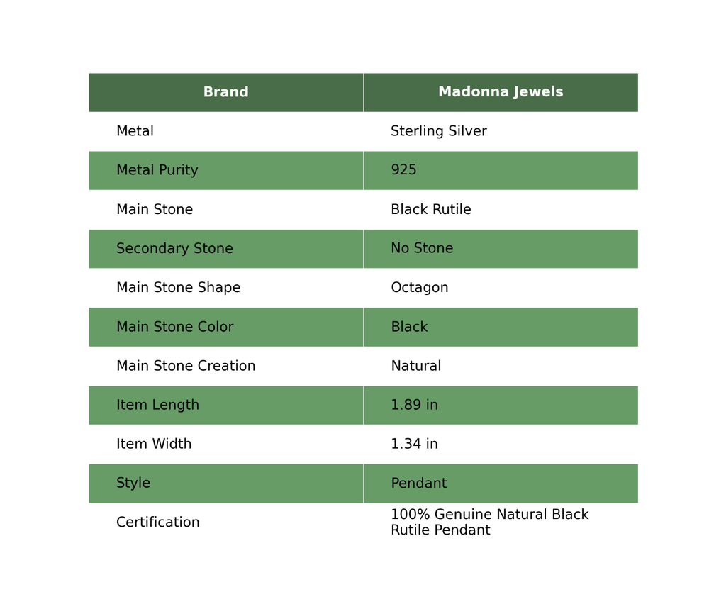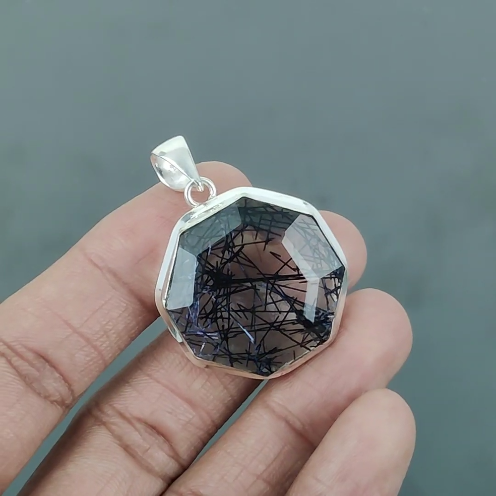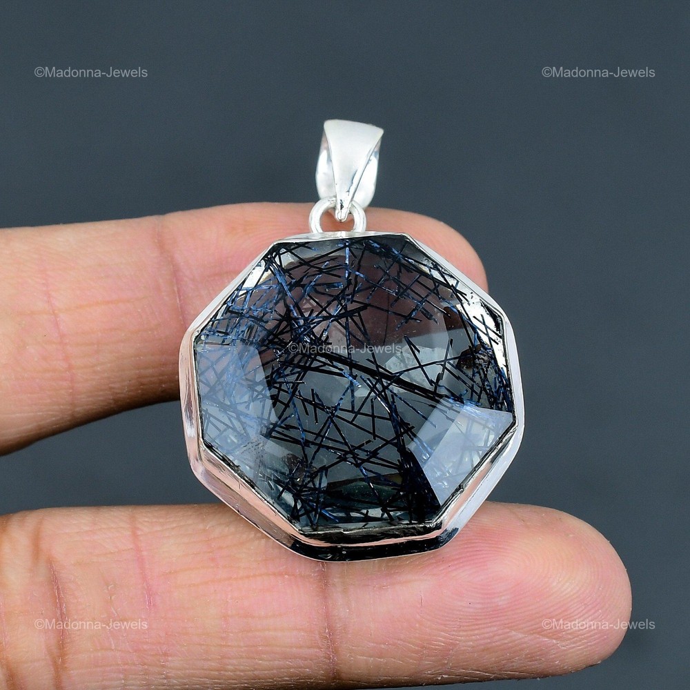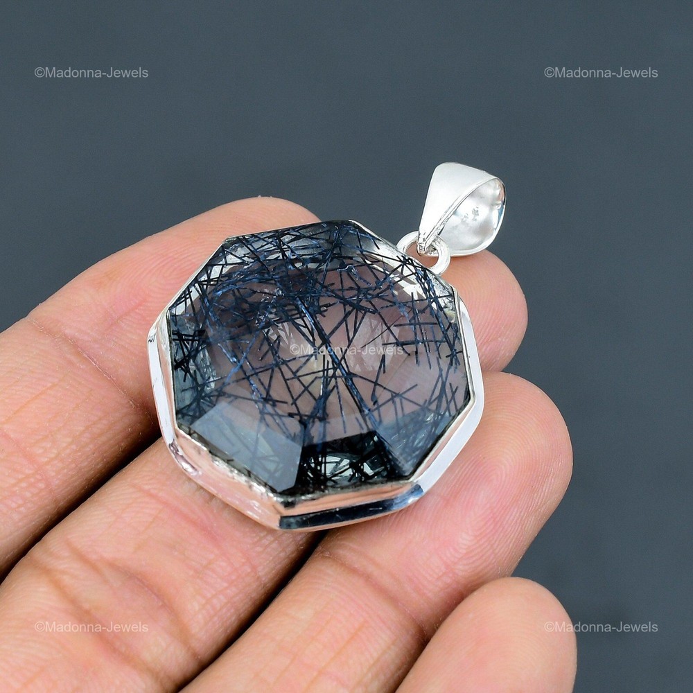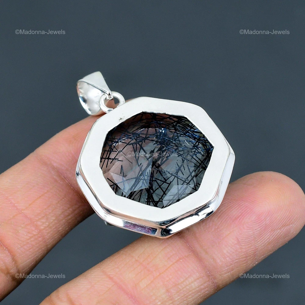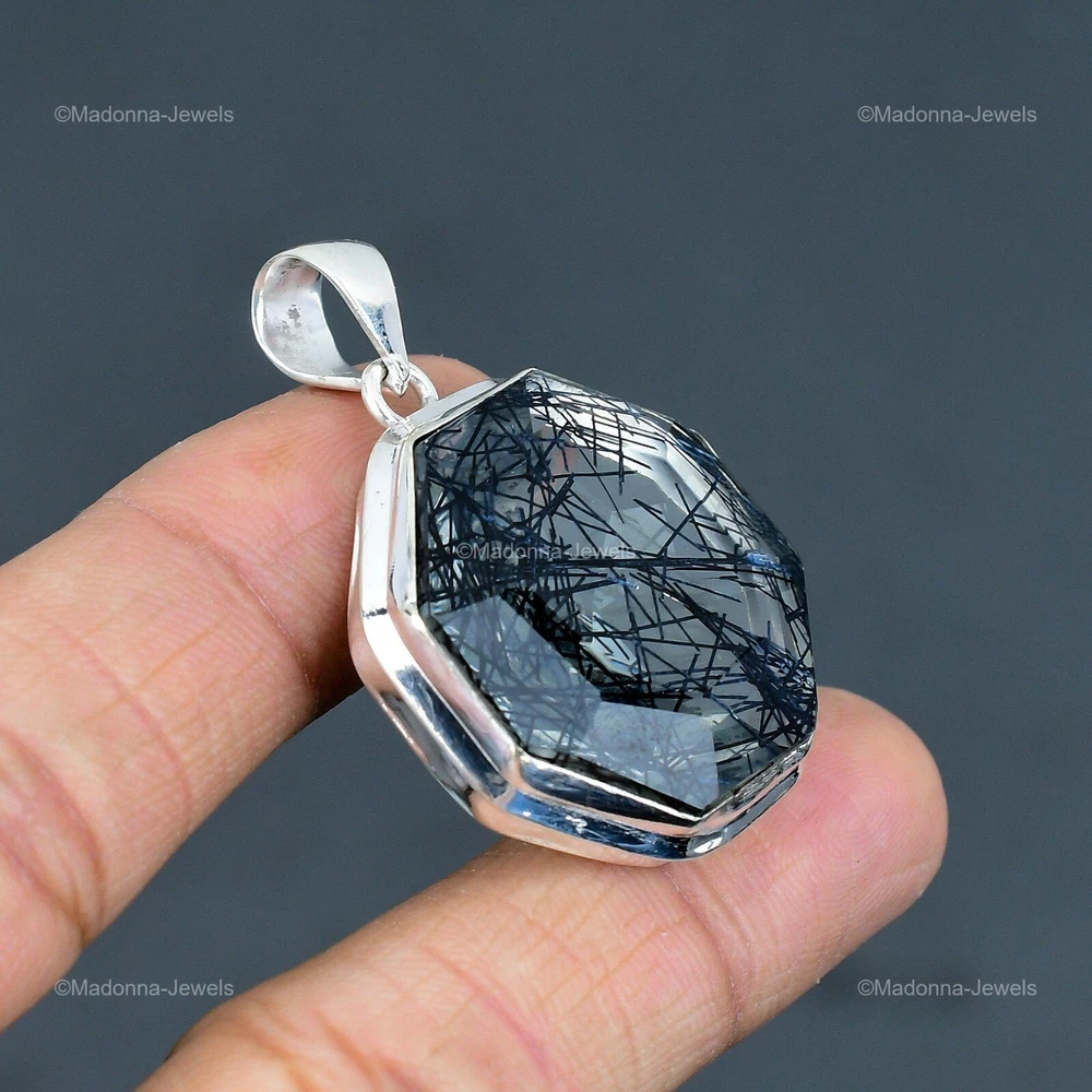 Welcome to Madonna Jewels Mothers day Deal Black Rutile Gemstone Wife Pendant Jewelry 925 Sterling Silver Handmade Pendant, Sterling Silver Pendant, Black Rutile Pendant, Handcrafted Pendant SKU : VP-1635 Gemstone : Black Rutile Stone Shape : Octagon Metal Purity : 925 Sterling Silver Length : 48 Millimeters Width : 34 Millimeters Silver Jewelry is a popular choice for many people due to its unique properties and numerous benefits. Here are some of the key properties and benefits of wearing silver jewelry: Properties: Durability: Silver is a durable metal that can withstand regular wear and tear. Malleability: Silver is highly malleable, which means it can be easily shaped and molded into various designs. Conductivity: Silver is an excellent conductor of heat and electricity. Anti-bacterial: Silver has natural anti-bacterial properties, which can help prevent the growth of harmful bacteria. Benefits: Aesthetic appeal: Silver jewelry is known for its beauty and versatility, and can be worn with a variety of outfits and styles. Hypoallergenic: Silver is generally hypoallergenic, which means it is unlikely to cause an allergic reaction in most people. Healing properties: Some people believe that wearing silver jewelry can help with various physical and emotional conditions, such as arthritis, anxiety, and depression. Spiritual significance: Silver has been used in various cultures for its spiritual and symbolic significance, and wearing silver jewelry can help to connect with these traditions. Investment value: Silver is a precious metal that retains its value over time, and investing in silver jewelry can be a smart financial decision. Overall, silver jewelry offers a unique combination of beauty, durability, and benefits, making it a popular choice for people around the world. For Mother's Day Gift For Father's Day Gift For Promise For Valentine' Day For Halloween Party For Christmas Day Gift For New Year Party For Mom For Her If you can't find the information you need or need some advice for your design? Feel free to contact us. We are fast to reply :) All our work is made by hand with Love and Care in our workshop Thank you so much for visiting and hope you enjoy shopping with us Madonna Jewels is dedicated to providing customers with high-quality sterling silver jewelry. As a manufacturer of handmade jewelry, we offer an extensive range of silver gemstone jewelry that demonstrates our exceptional craftsmanship. We are skilled in adorning gemstones to complement any style, and we give you the freedom to design your own jewelry collection with dazzling, natural, and genuine gemstones. Our talented craftsmen carefully handcraft each jewelry piece, ensuring that it is unique and made with authentic gemstones. The jewelry item you see on our website is precisely the same one you will receive.