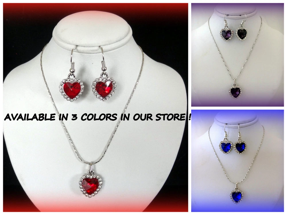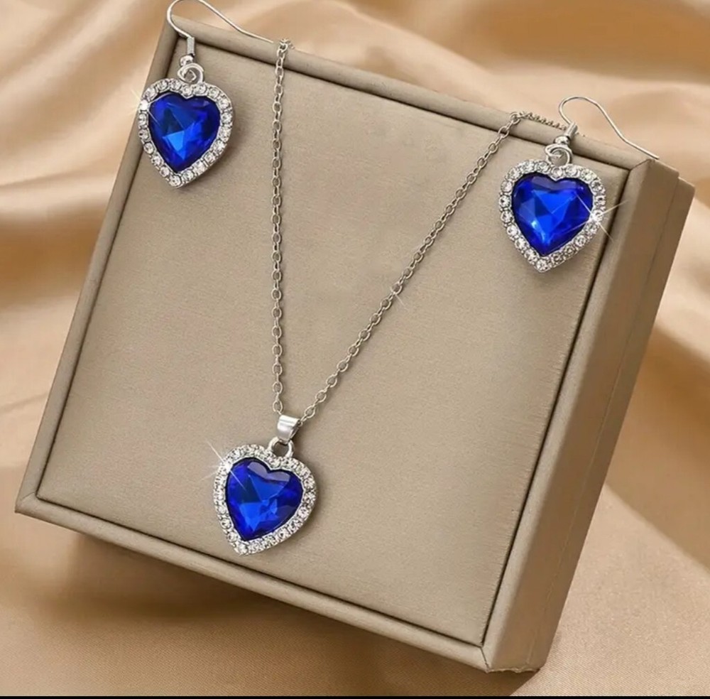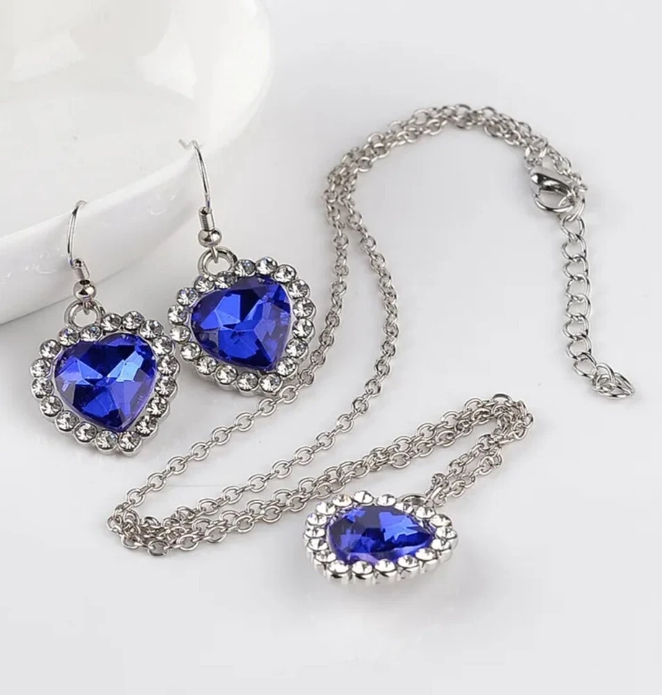 NEW ~ Silver Plated Heart Pendant Necklace & Earrings Set with Sapphire Blue Swarovski Austrian Crystal Elements & Clear Rhinestones NEW ARRIVAL !! ~ LIMITED QUANTITIES !! Showcase Presentation: Item Necklace Condition New Metal Silver Plated Closure Lobster Claw Clasp Design / Motif Heart Approximate Item Weight 3 gms Approximate Measurements The Heart is 5/8" Wide x 3/4" Long with the Bail. The Silver Plated Delicate Wheat Link Chain adjusts from 17" to 19" Gemstone Information Crystal Swarovski Austrian Crystal Elements & Rhinestones Color Sapphire Blue Crystals Accent Stone Color Clear Rhinestones Showcase Presentation: Item Earrings Condition New Metal Silver Plated Hooks Closure Fish Hooks with Plastic Plugs Design / Motif Dangle Earrings ~ Heart Approximate Item Weight 4 gms For the Pair Approximate Measurements 5/8" Wide x 1-1/4" Long Gemstone/ Material Information: Stone Color Sapphire Blue Crystals Accent Stone Color Clear Rhinestones Track Page Views With Auctiva's Counter