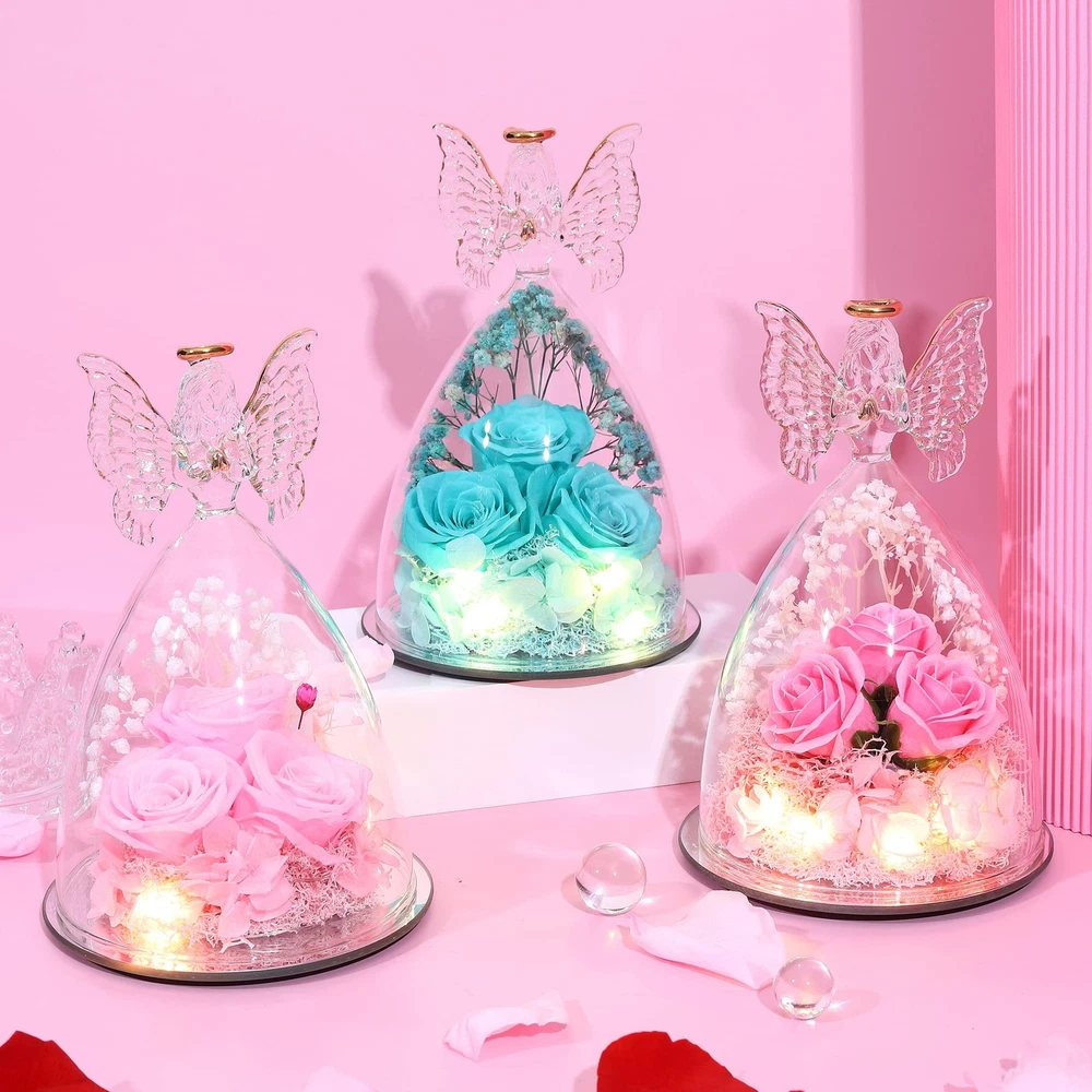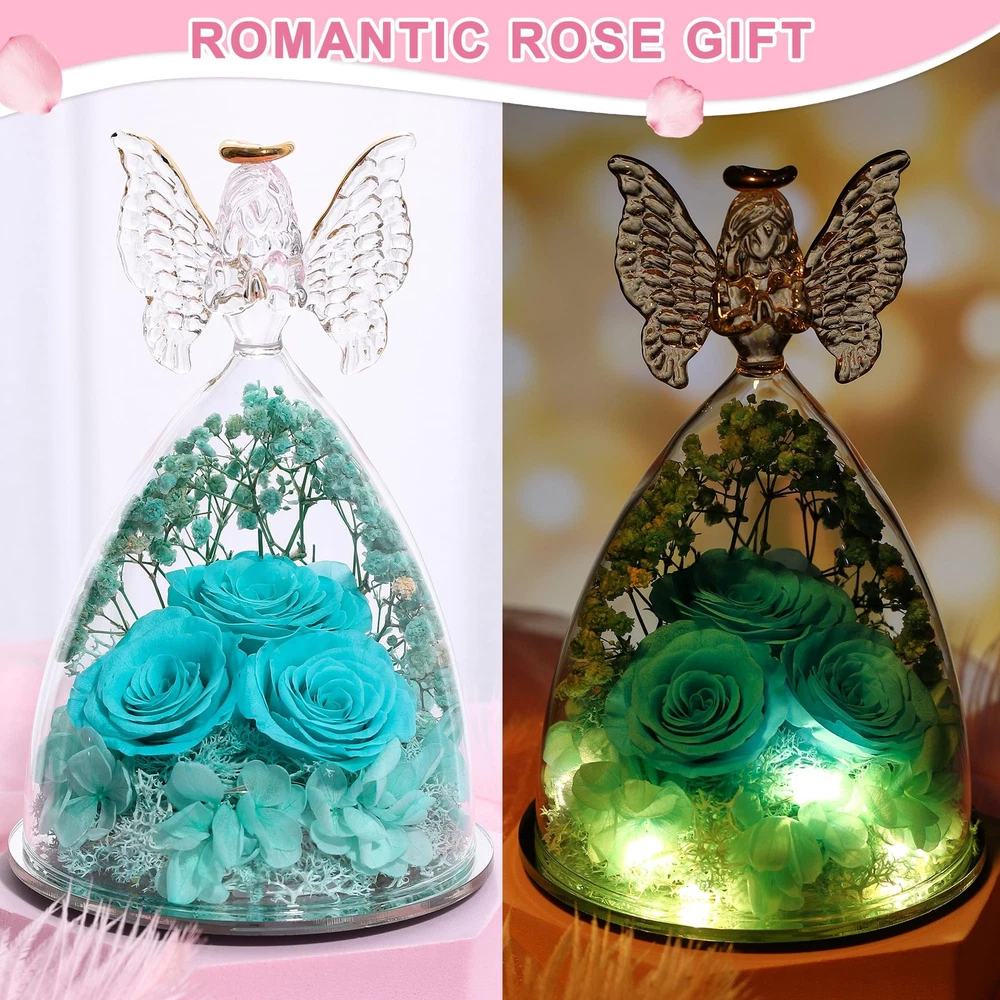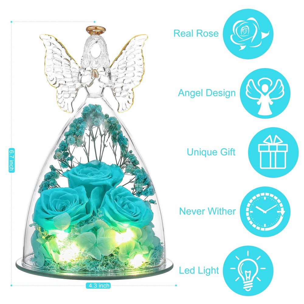 Angel Roses Mothers Day Gifts for Women Preserved Flower Rose Forever Flowers for Delivery Prime Mother's Day Birthday Gifts for Grandma Patented Product for both Angel Figurines and Inside Decorative Flower Bouquet. Angel Rose Gifts,Three Forever Real Rose in Angel Figurines Gifts for Women, Angel Guardian with Rose Gift for Valentine Day Mothers Day Birthday Christmas Gift Mothers Day Gift and Rose flower for Valentines Day: It is the best gift for mother,grandmother,wife,fiancee,girlfriend, friends,colleagues and classmates on Mother's Day, Christmas, Valentine's Day 【Size】:The diameter of the angel is 11 cm (4.33 inches) and the height is 17 cm (6.7 inches)Glass Angel with three roses inside. 【No Withering, Easy to care,Gift for Women】Put it in cool place, it will stay for 3-5 years to forever. Your loved one will have a good mood when she looks at it everyday. Avoid Direct Sunlight Romantic Gift for her: Sending a romantic and surprise gift for the women who is important in your life on Romantic Valentine's Day, Mother's Day, Christmas, Thanksgiving, Wedding, Anniversaries, Marriage Proposals,New Year's Day or any other special occasion.