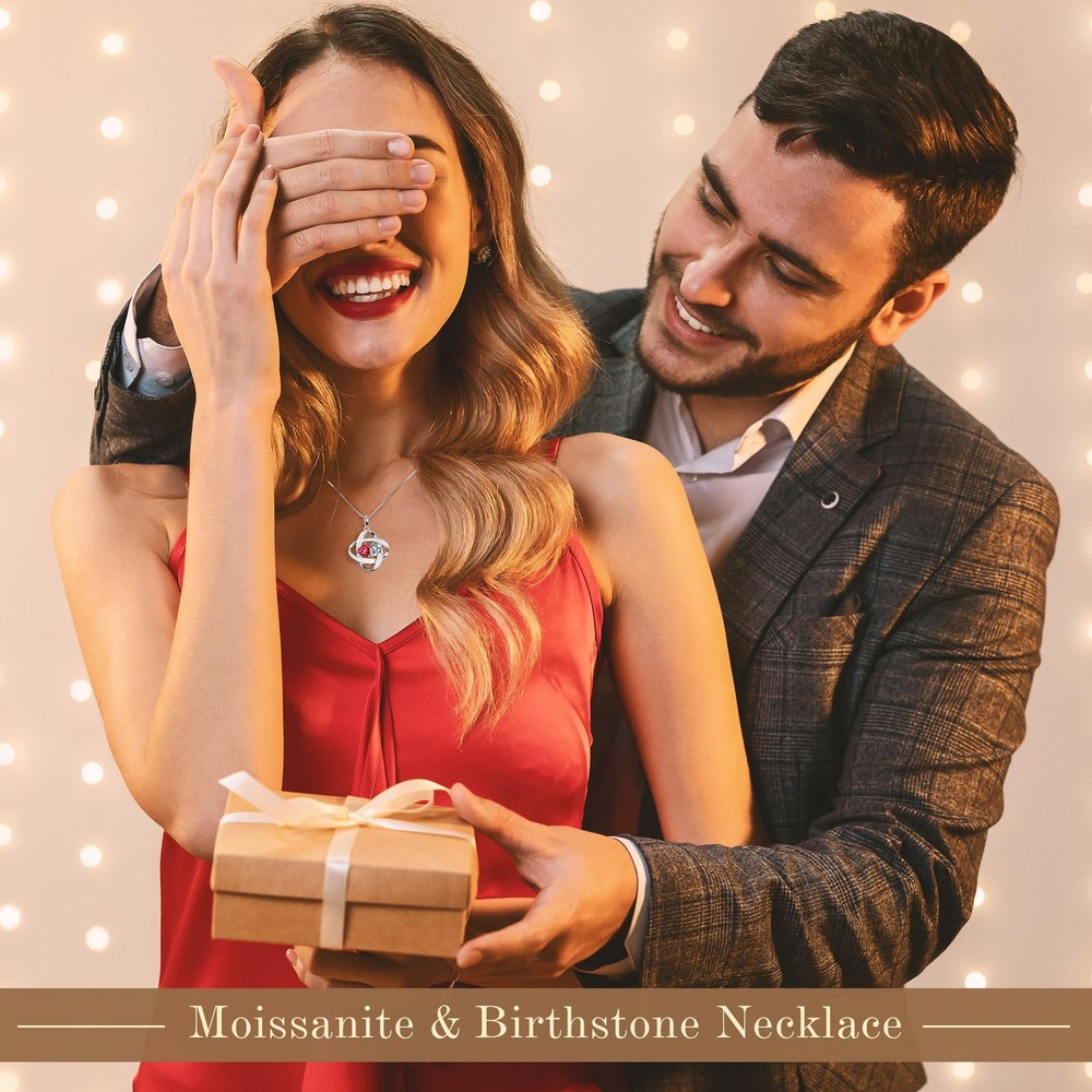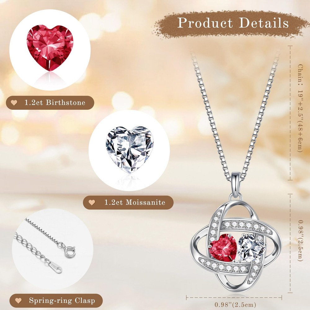 The love knot necklace, symbolizing boundless love and emotion, makes it a perfect choice for mother's day gifts, birthday gift, anniversary jewelry gift or any occasion you want to express affection. Features: Color: silver Size: 19"+2.5" extender Style: 12 color birthstones Material: made of 925 sterling silver with moissanite br> Package: 1* Birthstone Moissanite Necklace 1* Velvet Jewelry Box 1* Presentation Box 1* Gifts Box 1* Silver Polishing Cloth Perfect Gifts for Women ♥Birthday Gift ♥Thanksgiving Day Gift ♥Christmas Gift ♥New Year Gift ♥Wedding Gift ♥Mother's Day Gifts ♥Family Gift ♥Mother Necklace ♥Wife Necklace ♥Promise Necklace ♥Daily-wear Necklace Care Tips for your Moissanite Jewelry: 1. Keep your love knot moissanite Necklace away from harsh chemicals. 2. Keep birthstone moissanite necklace away from showering. 3. Keep sterling silver moissanite necklace clean and dry. 4. Regulary wipe the birthstone necklace with polishing cloth. MOISSANITE & BIRTHSTONE: Unique double heart design, one is a heart-shaped MOISSANITE and the other is a gem-grade heart-shaped BIRTHSTONE. Double heart necklace symbolize love for each other, this necklace will better express your unique love for her 925 STERLING SILVER & SIZE: The birthstone moissanite necklace is crafted with precious S925 sterling silver, lead and nickel free, hypoallergenic, will not make your skin green, red or itchy. 19" + 2.5" extension, the spring clasp is easy to wearing TOP GRADE MOISSANITE: This moissanite necklace with center stone 1.2ct. Each stone has been carefully selected, all of which are D color VVS1 clarity. The stones feature hand made setting instead of wax setting, to ensure our stones are stronger and safer on the setting PERFECT GIFT FOR YOUR LOVED SOMEONE: Birthstone moissanite necklace is beautifully wrapped, with velvet jewelry box, presentation box, gifts box, silver polishing cloth. Expressing your love for your wife, fiancee, mother or families GIFT CHOICE: Love knot necklaces are ideal for any occasion, such as Engagement, Anniversary day or Mother 's Day, Christmas Day, Thanksgiving Day etc. They symbolize the strength of your bond and the joy you bring to each other's lives