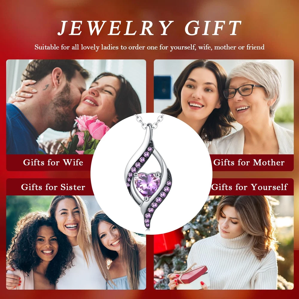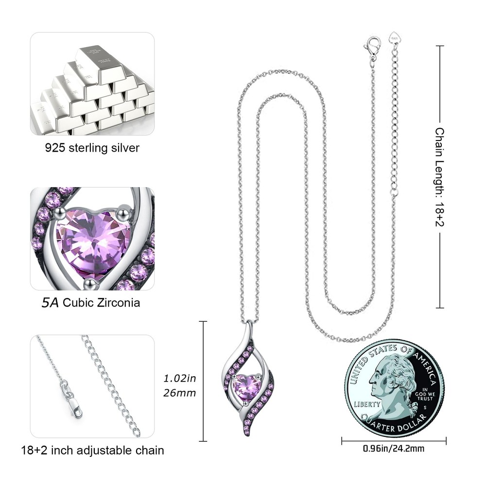 ABOUT US - We only produce genuine sterling silver jewelry, skin-friendly, rust-proof, nickel-free, lead-free - Hypoallergenic sterling silver material allows you to wear it with confidence - Each jewelry gets the S925 stamp - Exquisite workmanship in every detail part Package Included: 1x Birthstone Necklace 1x Jewelry Gift Box 1x Polishing Cloth Jewelry Maintenance for You: 1. Keep away from sweat, bleach, and any other chemicals. 2. Don't wear it while taking a shower or going to bed. 3. To keep your sterling silver jewelry from tarnishing when not being worn, store it wrapped in a soft cloth and placed in a zip-lock plastic bag. 4. Cleaning and wearing silver jewelry regularly will help maintain its shine. 💖Unique Design💖 Elegant lines wrap around the heart gemstone, matched with small gemstones of the same color, freezing every moment of love and romance. The simple design matches the shining birthstone, the collision of elegance and personality is eye-catching. This sterling silver birthstone necklace will bring you good luck 💖925 Sterling Silver💖 Our birthstone pendant necklace is made of platinum-plated 925 sterling silver, it is lead-free, nickel-free, and hypoallergenic, perfect for people with sensitive skin. Premium materials and exquisite craftsmanship make every detail of the necklace flawless, and it will not fade and keep its luster forever. Pendant size: 1.02 inch, chain length: 18+2 inches 💖12 Months Birthstones💖 Each month is represented by 12 different-colored birthstones, and you can choose the color according to your month of birth. The birthstone is made of carefully selected high-precision 5A cubic zirconia, after fine cutting technology, reflecting dazzling light like a diamond 💖Meaningful Jewelry Gifts for Her💖 This birthstone heart necklace is not just an accessory, but also a token of love and good wishes for her. It is a perfect gift for wife, mom, girlfriend, best friend, or yourself. Choose the birthstone corresponding to her birth month and send her a surprise on Mother's Day, birthday, Christmas, Valentine's Day, anniversary, or graduation 💖Excellent Service💖 The necklace comes with a beautiful gift box to ensure it becomes a surprise gift. If you are not satisfied with our women's necklace with birthstone, please feel free to contact us and we will provide you with a satisfactory solution in time
