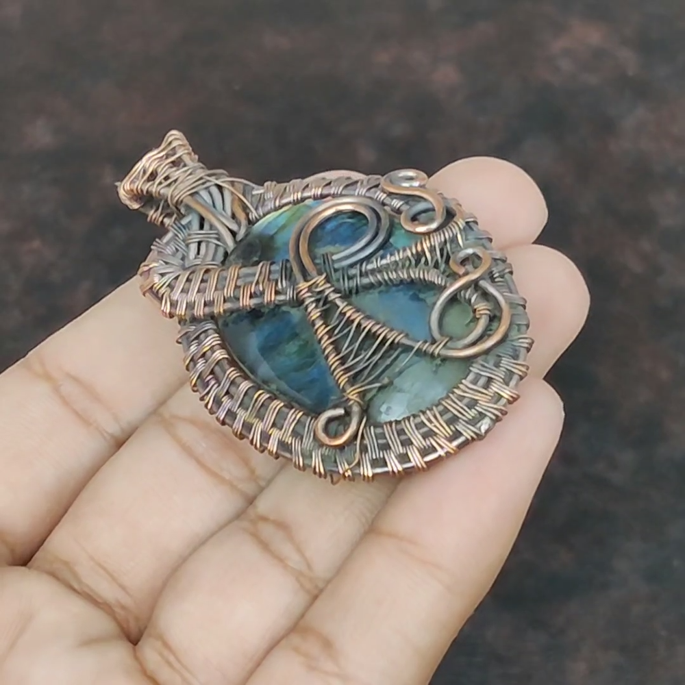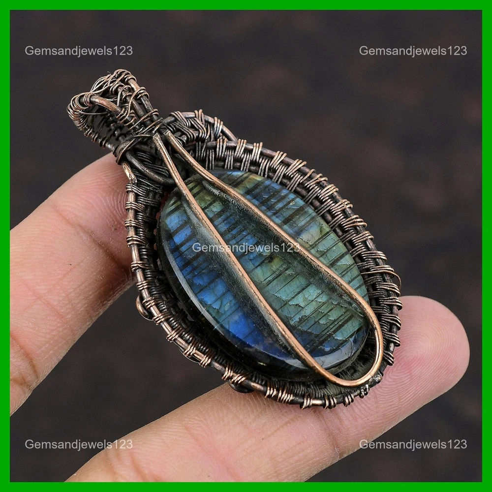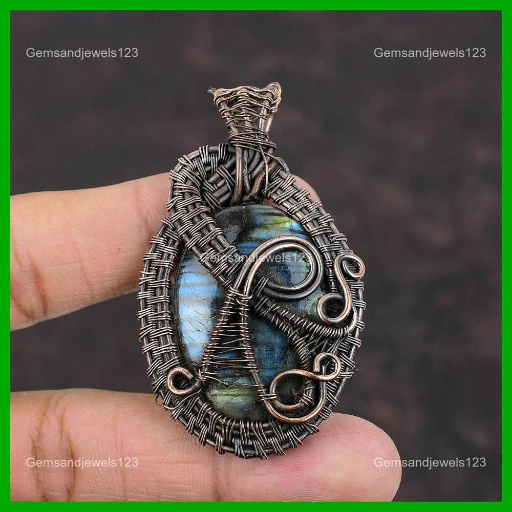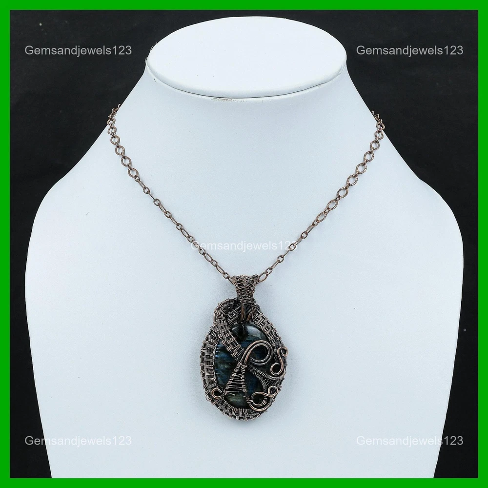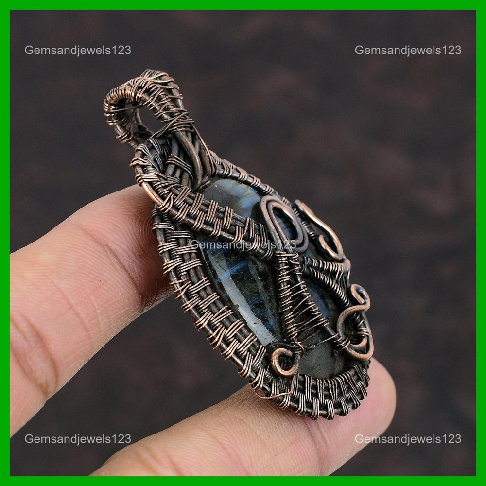 Note : Due to the natural formation of this gemstone. Slight Variation in design and color are to be expected. Welcome to gemsandjewels123 Mothers day Sale Labradorite Gemstone New Wire Wrapped Engagement Pendant Copper Handmade Pendant, Wire Wrapped Pendant, Wire Wrapped Jewelry, Copper Pendant, Copper Wire Pendant, Wrapped Jewelry, Wire Wrap Pendant, Wire Wrap Jewelry SKU : VFWP-352 Gemstone : Labradorite Stone Shape : Oval Metal Purity : Unknown Copper Length : 64 Millimeters Width : 40 Millimeters Copper has been used for jewelry making for thousands of years, dating back to ancient civilizations such as the Egyptians, Romans, and Aztecs. Copper was valued for its beauty, versatility, and durability, and was often used to make everything from jewelry and coins to cookware and tools. In addition to its historical significance, copper jewelry also offers several benefits. Copper is a natural conductor of heat and electricity, which makes it ideal for energy healing and therapeutic purposes. Wearing copper jewelry is believed to have various health benefits, such as improving circulation, reducing inflammation, and boosting the immune system. Some people also believe that copper jewelry has the ability to balance energy and improve mood. For Mother's Day Gift For Father's Day Gift For Promise For Valentine's Day For Halloween Party For Christmas Day Gift For New Year Party For Mom For Her If you can't find the information you need or need some advice for your design? Feel free to contact us. We are fast to reply :) All our work is made by hand with Love and Care in our workshop Thank you so much for visiting and hope you enjoy shopping with us gemsandjewels123 is committed to delivering the best quality sterling silver jewelry to customers. As a handmade jewelry manufacturer, we offer an extensive selection of copper gemstone jewelry that showcases the brilliance of our craftsmanship. We are an experienced handmade jewelry supplier with expertise in embellishing gemstones to suit every style. We offer you the liberty to create your jewelry ensemble with sparkling, earthy, and pure gemstones. Our Talented artisans masterfully handcraft each piece of jewelry you see here. Our pieces are made with genuine gemstones. The one-of-a-kind piece you see here is the same exact piece you will receive.