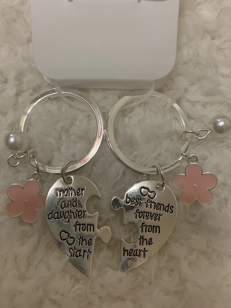 Mom And Daughter Love Heart Keychain With Pink Flowers ๐ธ . Condition is New with tags. Shipped with USPS Ground Advantage.