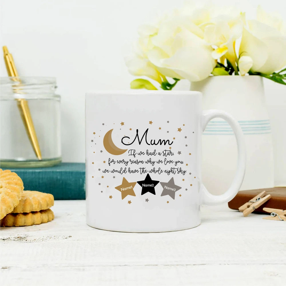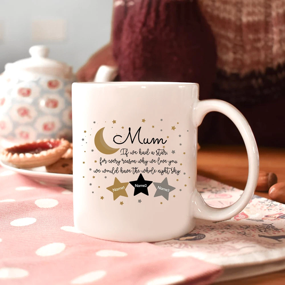 Mother's Day Mug Custom Mother's Day Mug If I Had A Star Personalized Mum Mug Product Details.. This high quality 11oz. ceramic white mug has a premium hard coat that provides crisp and vibrant color reproduction sure to last for years. Perfect for all hot & cold beverages. The highest quality printing possible is used. It will never fade no matter how many times you wash it. Material: 100% Ceramic. Print both sides. Dishwasher and Microwave Safe. High Gloss + Premium White Finish. Printed in the U.S.A. Personalized & Custom. We support personalized and custom mug to add custom, when placing an order, you can add notes to the "order note" in shipping address section. Also you can contact us directly via message. Shipping Info. Ready to ship in 1 to 2 business days, All products are made-to-order and proudly printed in the United States. Shipped by USPS and DHL, You will receive your order in 5-7 days. Replace & Refund. All products are defective during shipping broken, chipped will be replaced free of charge. You are not satisfied with the product, we will refund 100% money to you. If any other issues arise, please do not hesitate to message, we would be more than happy to assist you.