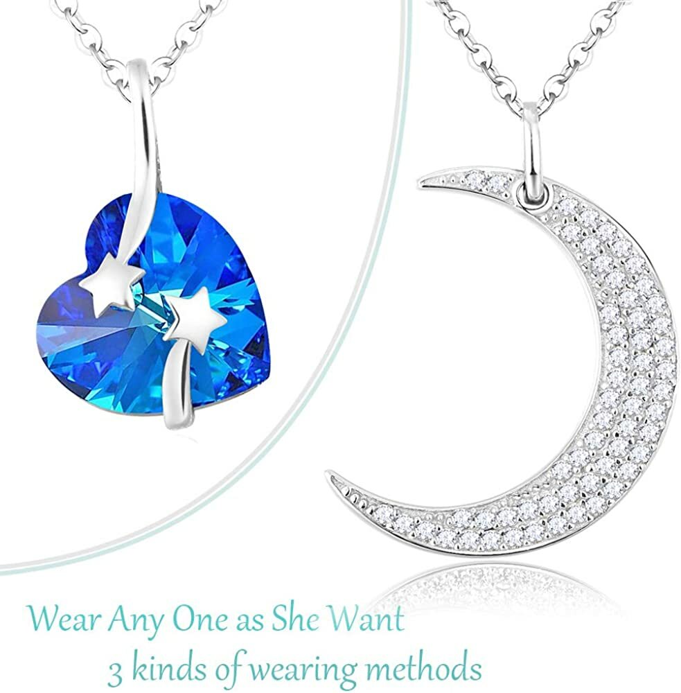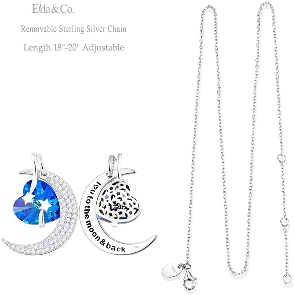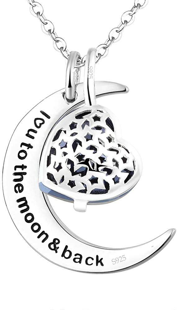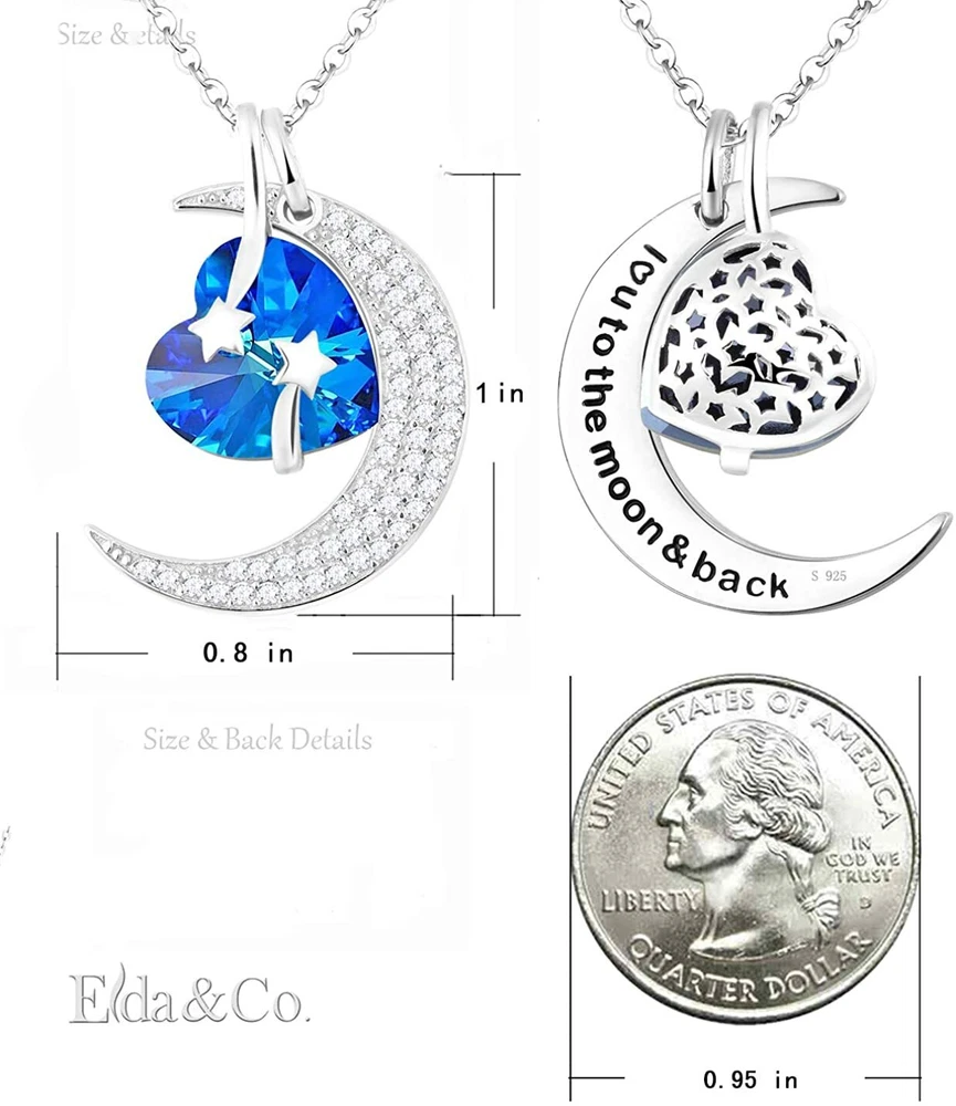 ebay template Mothers Day Necklace Gift for Mom May Birthstone Jewelry Emerald Garnet Aquamarine Amethyst Sterling Silver I Love You to the Moon and Back Necklace Birthday Gifts for Women Product Specifications: Mothers Day Gifts for Mom - Comes in nice jewelry box, perfect gifts for birthday, anniversary, graduation, christmas, or any special day or events. I Love You to The Moom and Back - Heart, moon and shooting stars all love symbol. The half moon engraved with "I Love You To the Moon and Back" on back of the pendant. Birthday Gifts for Women - Unique design necklace in 3 wearing options. 1. Only wear the moon. 2. Only wear the heart. 3. Wear both moon and heart. It is a perfect gifts for women, mom, wife, grandma, fiancée,or any grace lady. Aquamarine Necklace for Her - Heart shaped March Birthstone Aquamarine and romantic shooting starts surrounded by the half moon. Both pendant and chain made of sterling silver with Rhodium plated. The changeable chain length adjustable from 18" to 20". product description: We offer high quality Fine Jewelry all made of Solid Sterling Silver with high quality natural gemstone or created stones. Care Tips for your Jewelry: * Store your jewelry separately to avoid the scratch * Keep away from chemicals, sweat, bath, crash to avoid any damage * Rub your Jewelry with polishing cloth to bring back the shine Jewelry Information Brand, Seller, or Collection Name ELDA & CO. Metal stamp 925 Sterling Silver Metal Sterling silver Material stone, metal Gem Type Aquamarine Setting 2-Prong-setting Height 1 inches Width 0.82 inches Length 20 inches Chain Rolo Clasp lobster-claw-clasps Resizable No Number of stones 58 Model number P720-SWB Pearl Information Shape Heart Aquamarine Information Stone shape Heart Minimum color blue Cut Very good cut Stone Creation Method Synthetic We are always updating our catalog with new and exciting products. Keep visiting our store for new products and deep daily discounts.