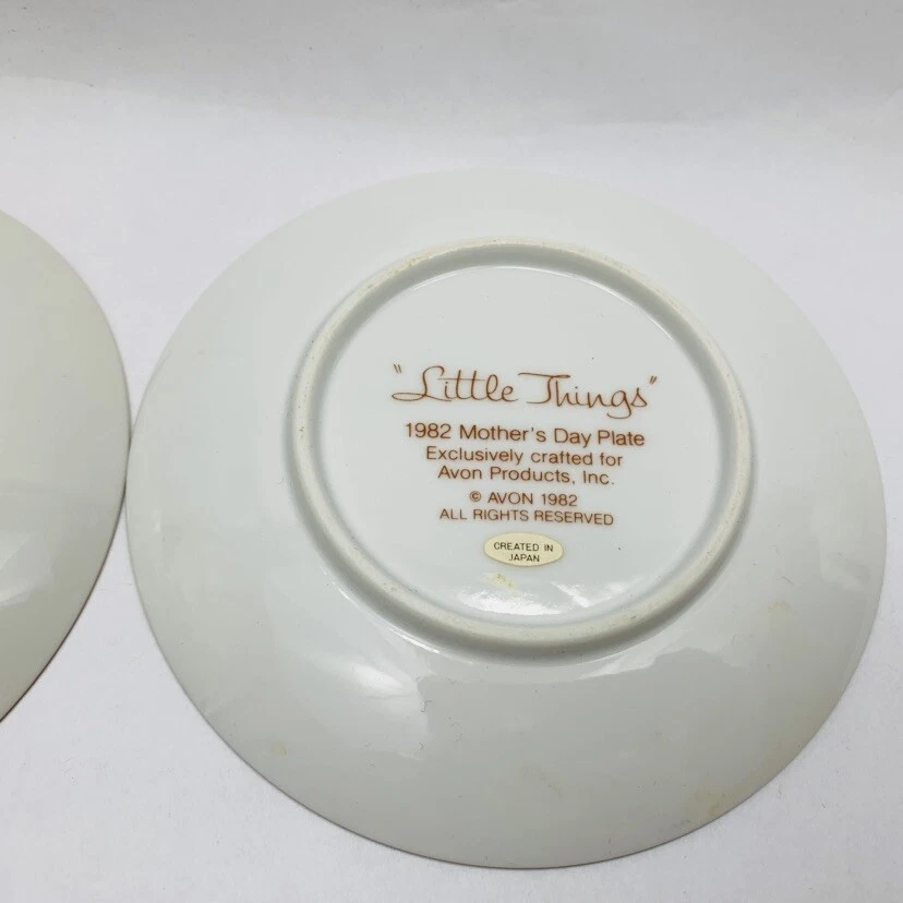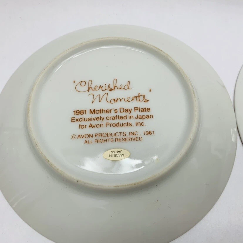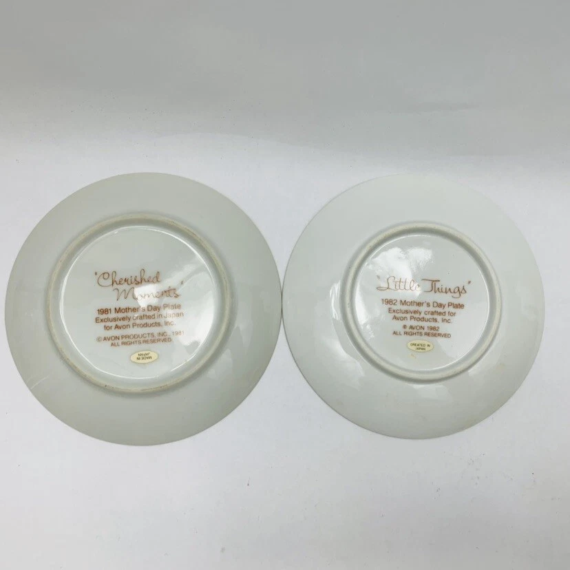 Mothers Day Plates Set of 2 Description Brand Avon Years 1981 and 1982 Condition Pre owned: No box for plates. Doesn't include easels Please, e-mail me with any questions.