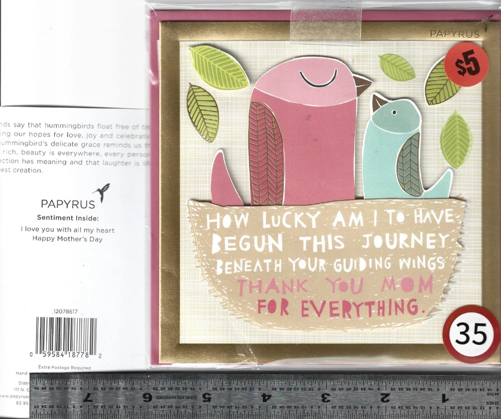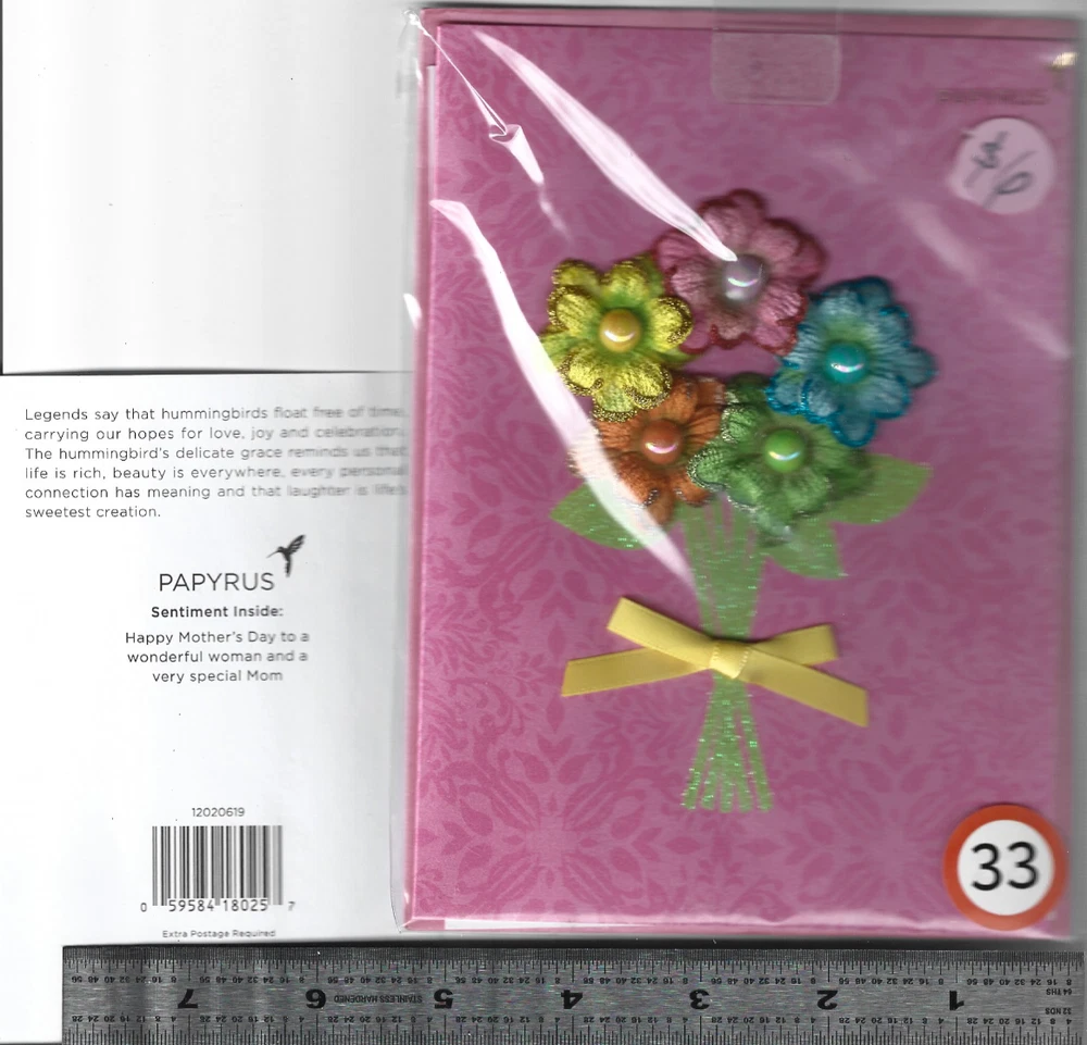 I not only bought 1 bought 3 cards from this seller!! Each card was more unique then the one before. If you are not familiar with cards by Papyrus these cards are hard to find and always 3D and better then what you can even find at a card store, let alone pharmacy or grocery store. This seller quick to respond to my inquiries and and even quicker to receive. Visit this seller's shop, you won't be disappointed. Thanks!