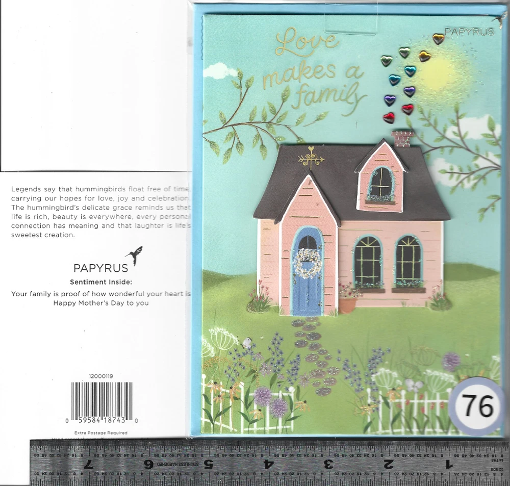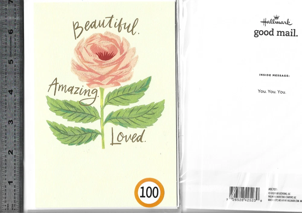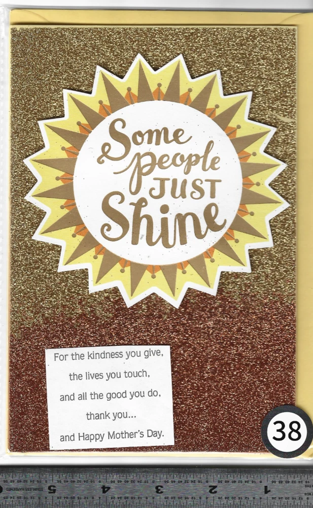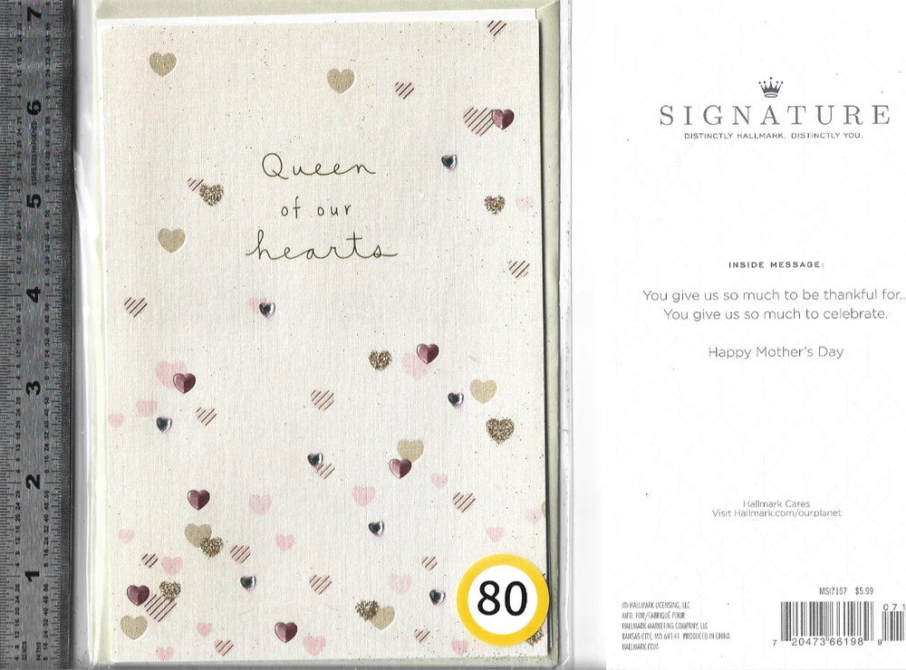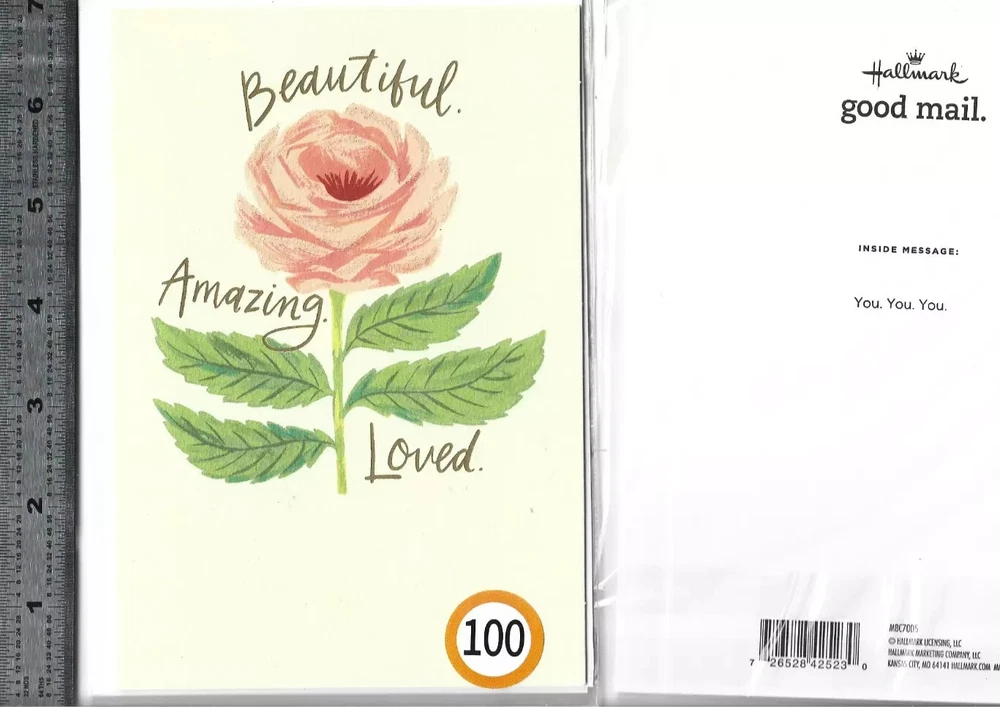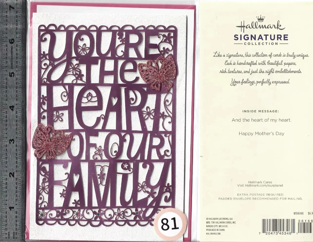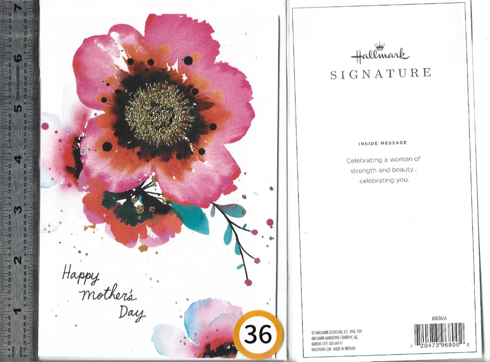 Very pretty well made new Hallmark birthday card with glitter accents on the sailboat and clouds. As described. Great quality and price. The card was nicely packaged in a clear protective cellophane envelope and shipped in a sturdy plastic outer bubble mailing envelope. The shipping was extremely fast and the card arrived one day ahead of schedule in perfect condition. The seller's communication was excellent. I highly recommend this seller! Thank You!!