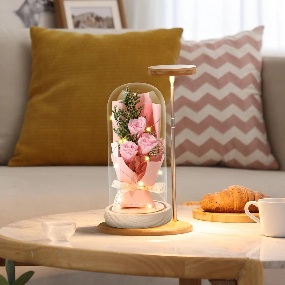 Preserved Flowers, Unique Rose Gift Forever Flower Bouquet in Glass Dome for Women and Mom, Home Decor Gifts for Birthday, Mother’s Day, Anniversary, Christmas, Wedding. 【One-of-a-kind Forever Rose Birthday Gifts for Mom】Mother' s Day Gifts Extend beauty and love, each preserved flower bouquet is made of unique roses, keep the original state for 3-5 years, same as the eternal love and beautiful her. Flowers bouquet for delivery prime 【Preserved Flower Bouquet Gifts For Mom】Mother' s Day Gifts Is not only the most popular gift in 2024 for her/wife/girlfriend/daughter/nana/mother-in-law/grandmother/godmother/sister/teacher/friend, but also a best decoration for room/home/bedroom/kitchen/aesthetic room/desk/office/table/indoor. It will be an unusual choice in your gift list on Mother's Day/Valentine's Day/graduation/anniversary/birthday/Christmas/Easter/wedding or other days when romantic is necessary. 【Special Valentine Gifts for Girlfriend Loved Ones】Mother' s Day Gifts No need daily maintenance, no cause pollen allergy, will not wither, just always beauty. Our preserved flower bouquet in glass dome are designed with warm and soft yellow LED lighting, as a decorative craft with natural elements, it can exert a positive effect on emotion and creative power, it's a gift to feel loved, choose the Forever flower for the special people, love and friendship. 【Express Your Love Mother Day Gifts for Women】Mother' s Day Gifts Roses are the symbol of love, friendship, courage, there is no better way to express your love than roses that last forever! It's an inspiring gift that will bring strength and good mood to the recipient. We offer 4 types of preserved flowers, red, purple, pink and yellow and orange mixed roses, choose gifts for your loved ones. 【Friendly Tips】1. The glass dome cannot be opened, cause that will damage the natural flowers. 2. Because it is purely handmade, the similarity of the actual objects is about 95%. 3. Avoid direct sunlight, keep dry, that will contribute to the extension of the shelf life of preserved flower.