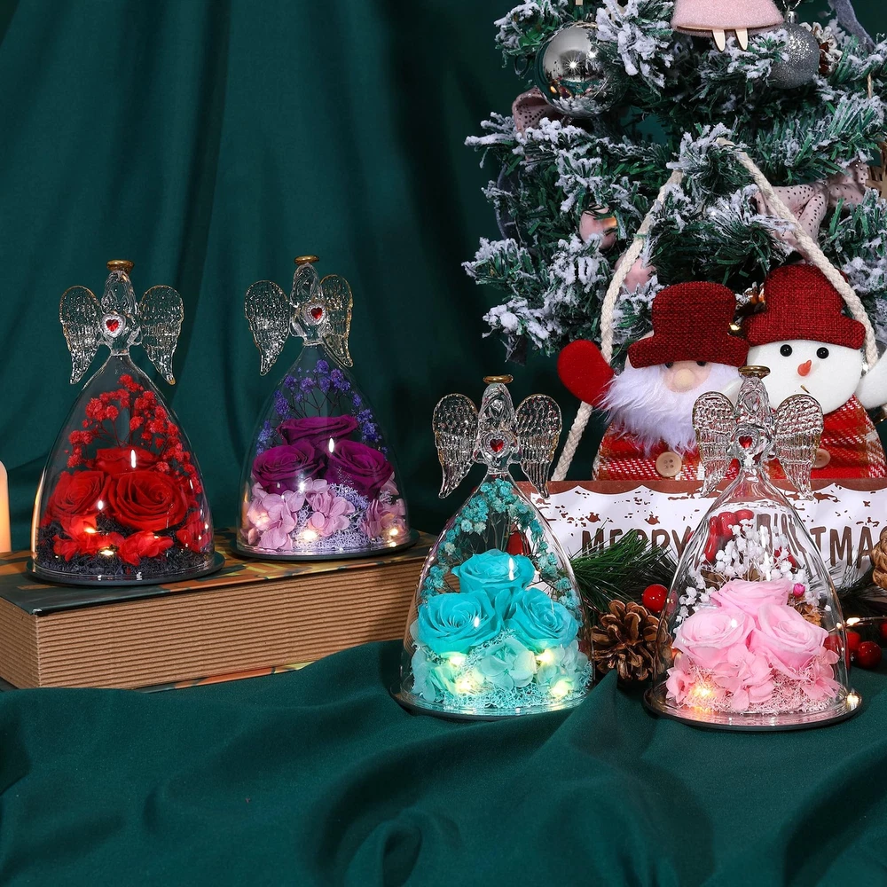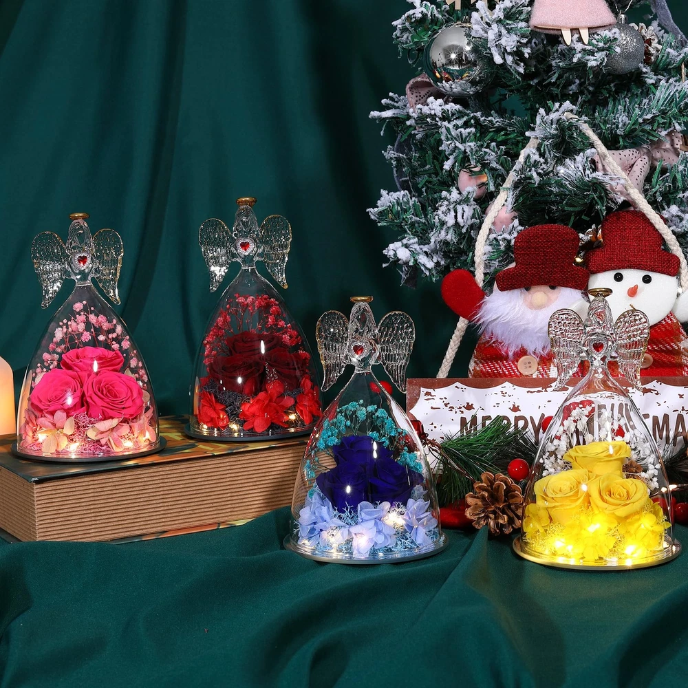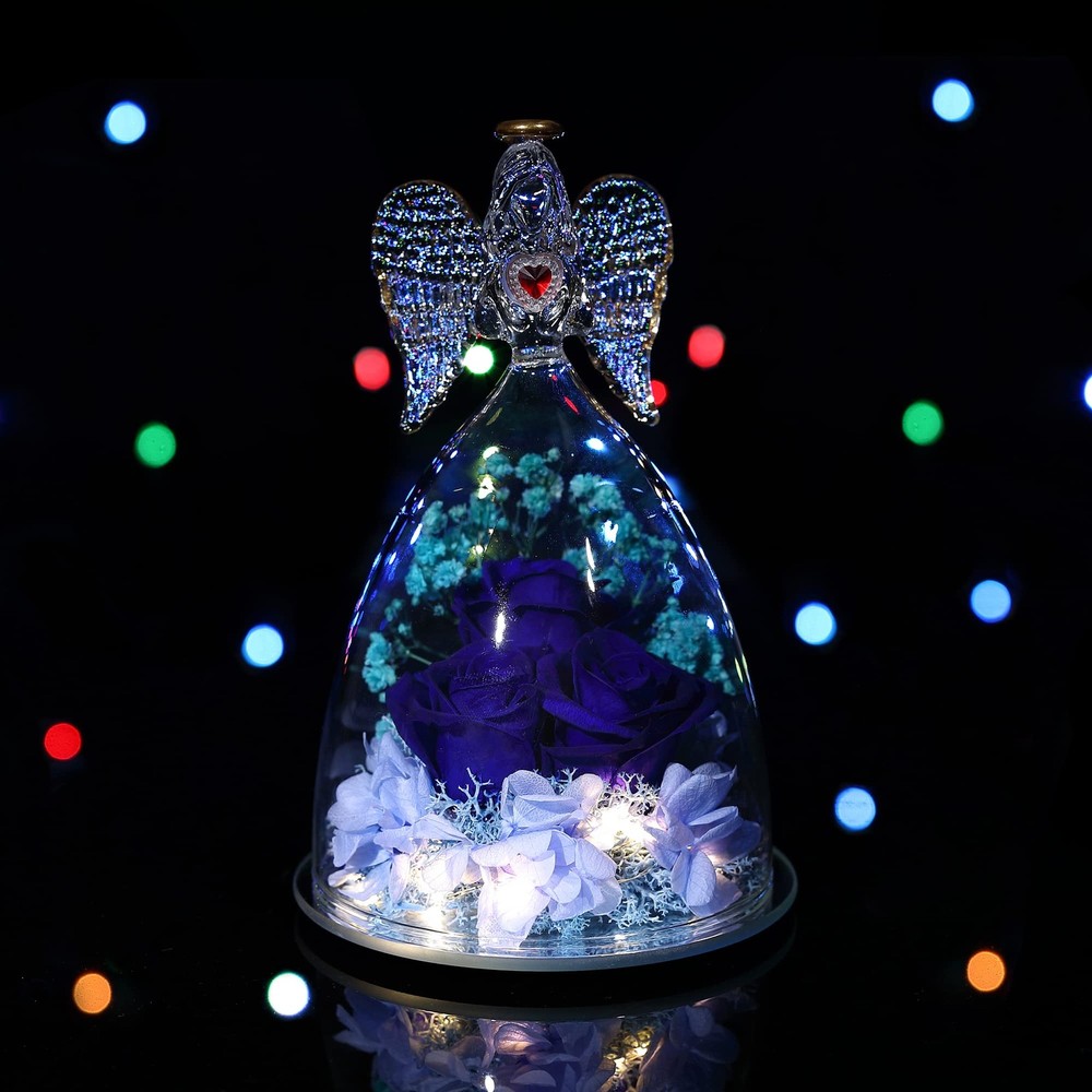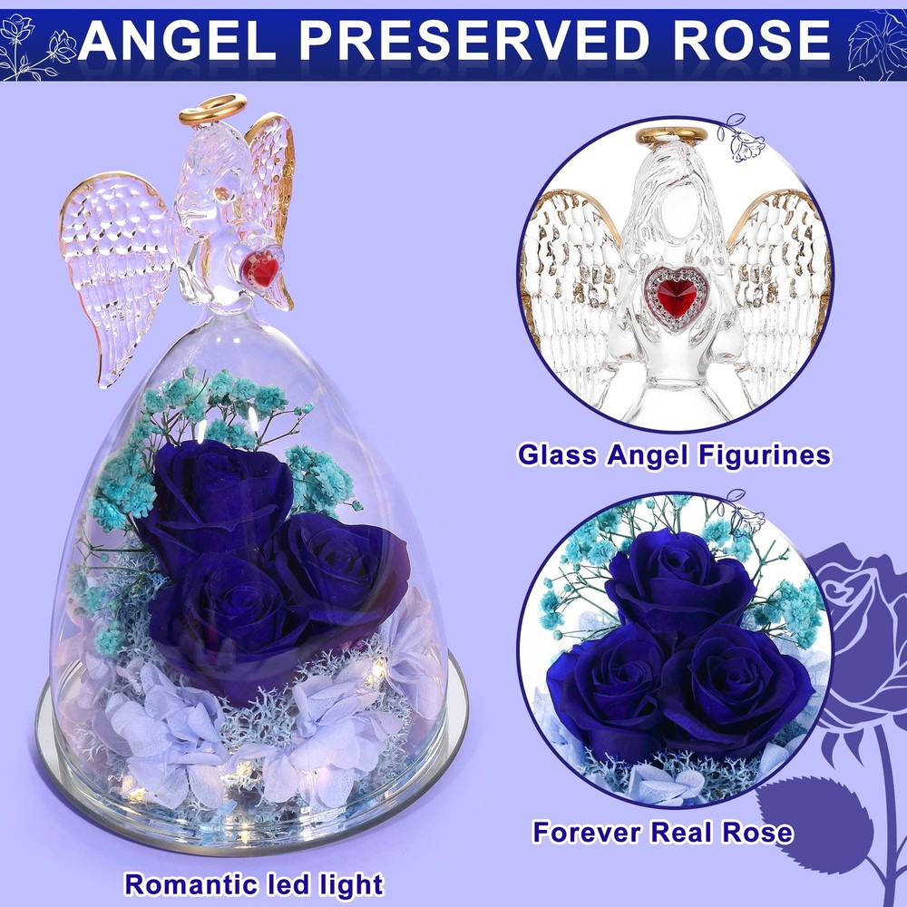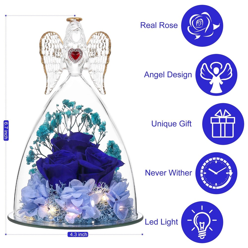 Large Angel with Real Rose Preserved Real Flowers Rose Gifts for Women Mom Girlfriend, Glass Angel Figurines Gifts with Rose for her Angel Size: 6.69"H x 4.13"W x 4.13"D Patented Angel Figurines and Inside Rose Flower Bouquet 【Large Rose with Real Rose Inside】Beauty Angel Height: 6.69inch (17cm) Bottom diameter 4.13inch(10.5cm),REAL Roses Gift that Lasts Forever| Fresh Flowers for Delivery Prime | Angel Roses for Her, Mom, Wife,Girlfriend, Anniversary,Christmas 【Preserved Real Flower Rose】Preserved flower is made of rose with unique preservation process. Also Known as“ never withered flower ” and “ eternal flower ”. Stand for your Endless Love,Handmade preserved flower roses lasting 3 - 5 years without watering and daily conservation, need to avoid sunlight to retain the color of the rose; 【High Quality, individually hand-crafted glass Beauty Angel figurine】 Angel decoration always represents best wishes and guardian, with forever real rose inside,it stands for eternal love and best wishes for girlfriend, wife, mom,Best Gift for loved ones; 【UNIQUE GIFT,Mothers Day Gift】 Angel with Rose is a symbol of love and best wishes, the angel with preserved real flower rose will be a lovely gift for Thanksgiving, Christmas, Valentine's Day, birthday, Mother's Day,anniversaries, or any other special occasions and festivals, which will show your eternal love for him or her. 【What you get】Elegant Angel Figurines with preserved Forever Real rose,Gift Card,Protection Gift Box