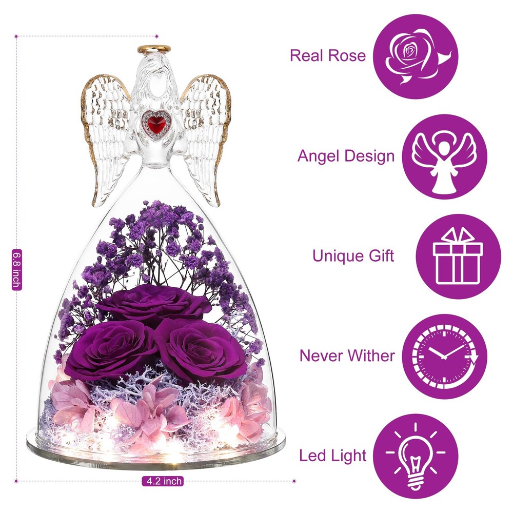 Absolutely stunning gift! The preserved roses look incredibly real and the angel figurine adds such a sweet touch of love and protection. It's so easy to care for and lasts for years, making it a perfect heartfelt present for any special woman in your life on any occasion.