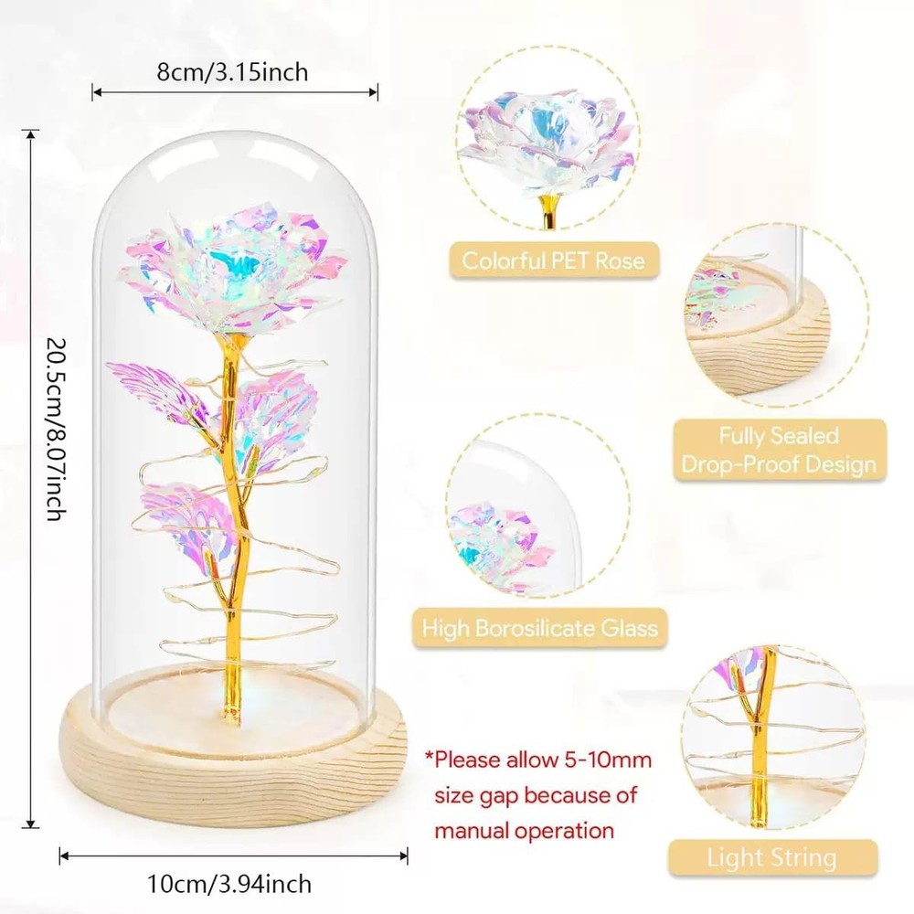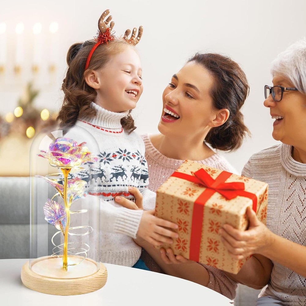 11 【Mothers Day Gifts For Mom Rose Flowers】-A timeless tribute to mothers, our artificial preserved flower collection features galaxy roses. They are the best Mothers Day rose flower gifts for Mom women her.They’re artificial preserved roses that never wither, embodying both infinite hope and beauty. 【Birthday Gifts For Women Mom】-This preserved rose makes an outstanding birthday gift for women. It’s also perfect for various special occasions—whether it’s Mother’s Day, Valentine’s Day, Christmas, or anniversaries. Ideal for moms, wives, girlfriends, daughters, sisters,new moms and grandmas, it’s a romantic present that suits weddings,marriage proposals, apologies, and New Year’s celebrations. 【Mothers Day Rose Flower Gifts for Her】-Mother’s Day gifts for wives, girlfriends, daughters, and presents for moms. Light up rose gifts for moms and other women. Powered by 3 AAA batteries (not included), the LED strip light wrapped around the rose emits a warm white glow. This LED rose light can be used both during the day and at night. It’s a great home decor gift, and it also sets a romantic mood for her. The LED glass dome rose symbolizes women’s Mother’s Day gifts of appreciation, best wishes, love, passion, and romance. 【Mothers Day Gifts For Grandma】-I Love You Gifts For Her. Mother’s Day gifts for grandmas are truly unique. The color of the crystal rose inside the glass dome changes with different angles and lighting. It gives her a romantic and warm Mother's Day gift for grandmas, moms, girlfriends, wives, and other women. 【Mothers Day Gifts From Daughter Son Husband】-Rose gifts from daughters, sons, or husbands are always a wonderful surprise. They create a bright and romantic atmosphere during family dinners, weddings, parties, and more. These are wonderful Mother’s Day gifts for moms, guaranteed to sweeten their day. 【Best Choice With Giftable Package】- Each gift set includes 1 preserved eternal rose, 1 pink gift box, and 1 greeting card. It’s ready to be gifted right out of the box, saving you time on packaging. 【Shop with Confidence】-Our Mother’s Day preserved rose gift set is a top choice for celebrating Mother’s Day. It’s also a fantastic birthday gift for girlfriends. Whether you’re a son, daughter, or husband, it’s the perfect way to express love. If you have any issues during the purchase or use of the product, don’t hesitate to contact us. We’re dedicated to resolving any problems you may have.