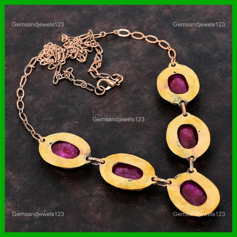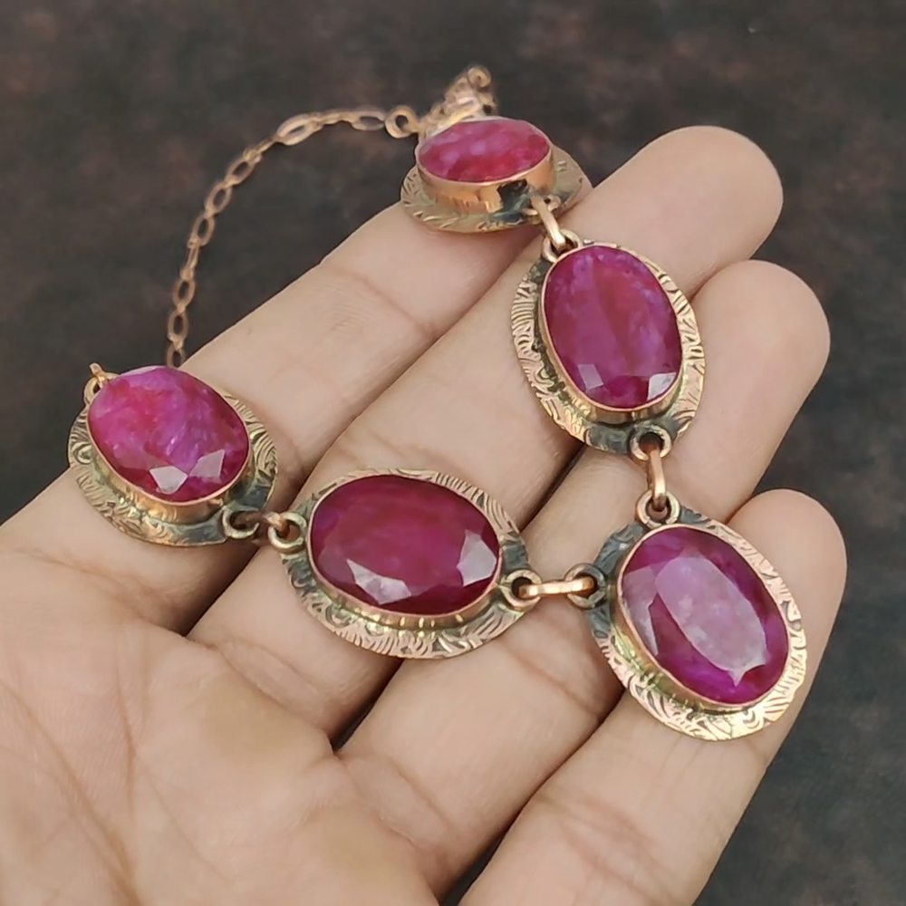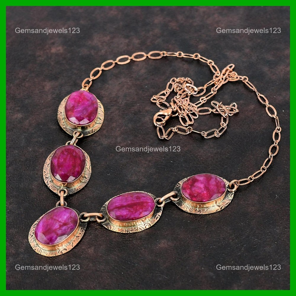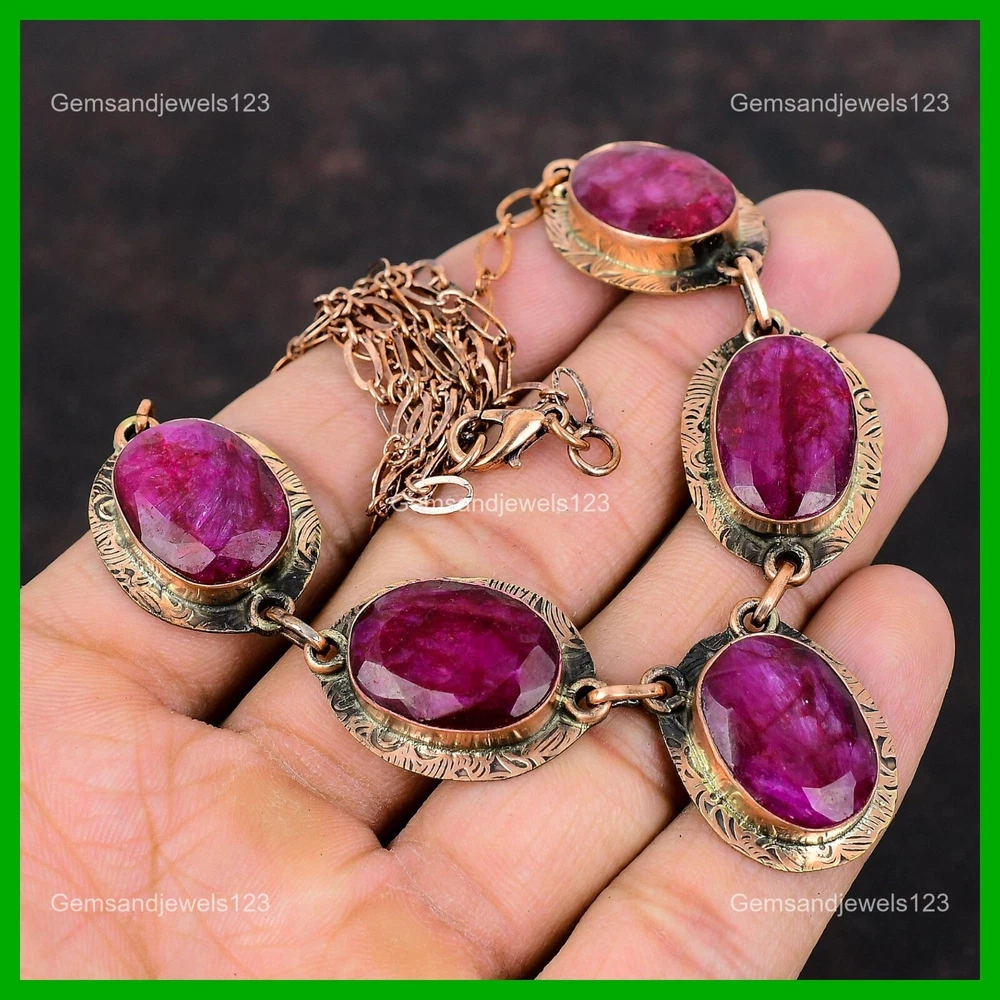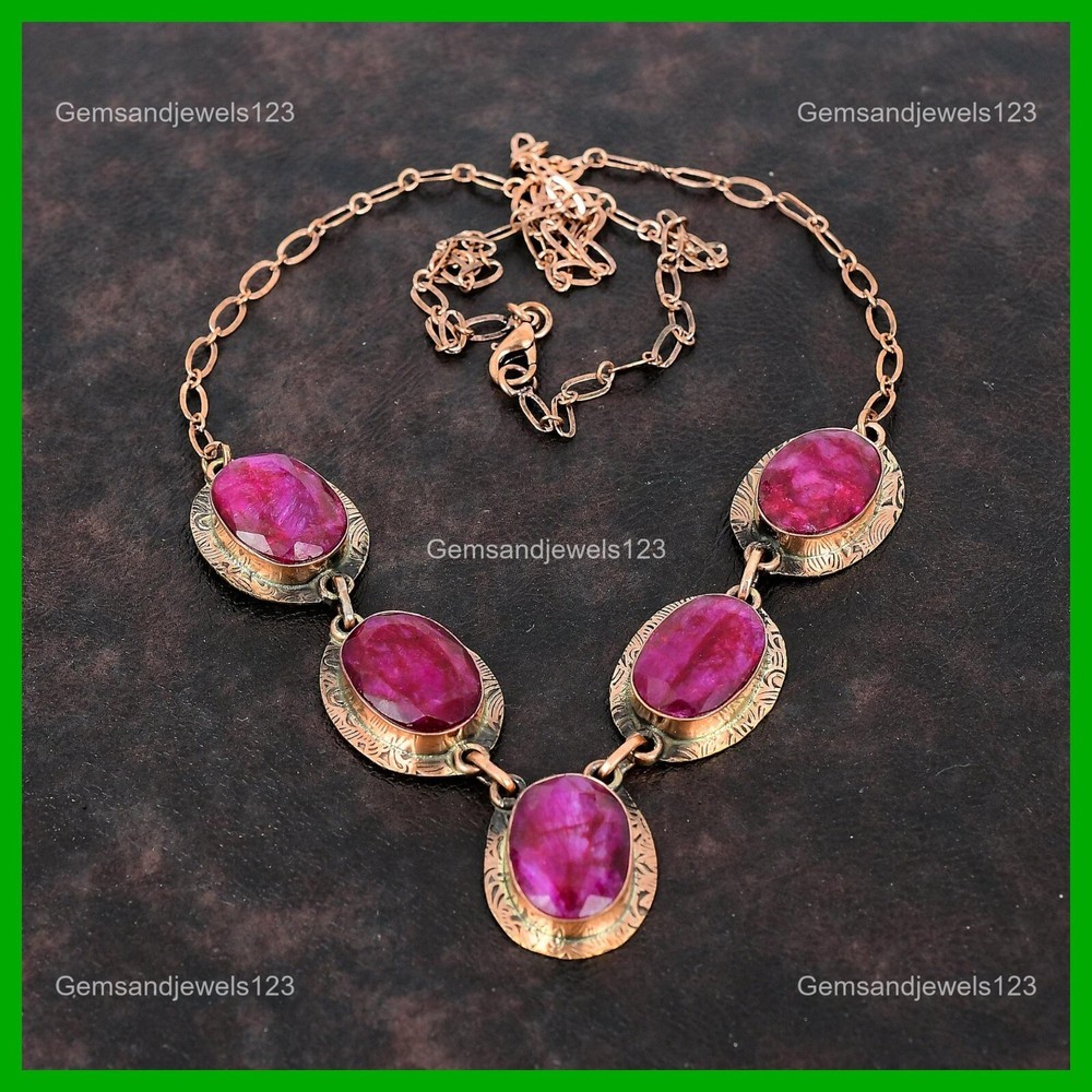 Note : Due to the natural formation of this gemstone. Slight Variation in design and color are to be expected. Welcome to gemsandjewels123 Mothers day Sale Copper Kashmir Rubi Gemstone Artisan Bezel New Necklace Jewelry Handmade Necklace, Wire Wrapped Necklace, Wire Wrapped Jewelry, Copper Pendant, Copper Wire Necklace, Wrapped Jewelry, Wire Wrap Necklace, Wire Wrap Jewelry SKU : FWN-2 Gemstone : Kashmir Rubi Stone Shape : Oval Metal Purity : Unknown Copper Length : 18 Inches Width : Inches Copper has been used for jewelry making for thousands of years, dating back to ancient civilizations such as the Egyptians, Romans, and Aztecs. Copper was valued for its beauty, versatility, and durability, and was often used to make everything from jewelry and coins to cookware and tools. In addition to its historical significance, copper jewelry also offers several benefits. Copper is a natural conductor of heat and electricity, which makes it ideal for energy healing and therapeutic purposes. Wearing copper jewelry is believed to have various health benefits, such as improving circulation, reducing inflammation, and boosting the immune system. Some people also believe that copper jewelry has the ability to balance energy and improve mood. For Mother's Day Gift For Father's Day Gift For Promise For Valentine's Day For Halloween Party For Christmas Day Gift For New Year Party For Mom For Her If you can't find the information you need or need some advice for your design? Feel free to contact us. We are fast to reply :) All our work is made by hand with Love and Care in our workshop Thank you so much for visiting and hope you enjoy shopping with us gemsandjewels123 is committed to delivering the best quality sterling silver jewelry to customers. As a handmade jewelry manufacturer, we offer an extensive selection of copper gemstone jewelry that showcases the brilliance of our craftsmanship. We are an experienced handmade jewelry supplier with expertise in embellishing gemstones to suit every style. We offer you the liberty to create your jewelry ensemble with sparkling, earthy, and pure gemstones. Our Talented artisans masterfully handcraft each piece of jewelry you see here. Our pieces are made with genuine gemstones. The one-of-a-kind piece you see here is the same exact piece you will receive.