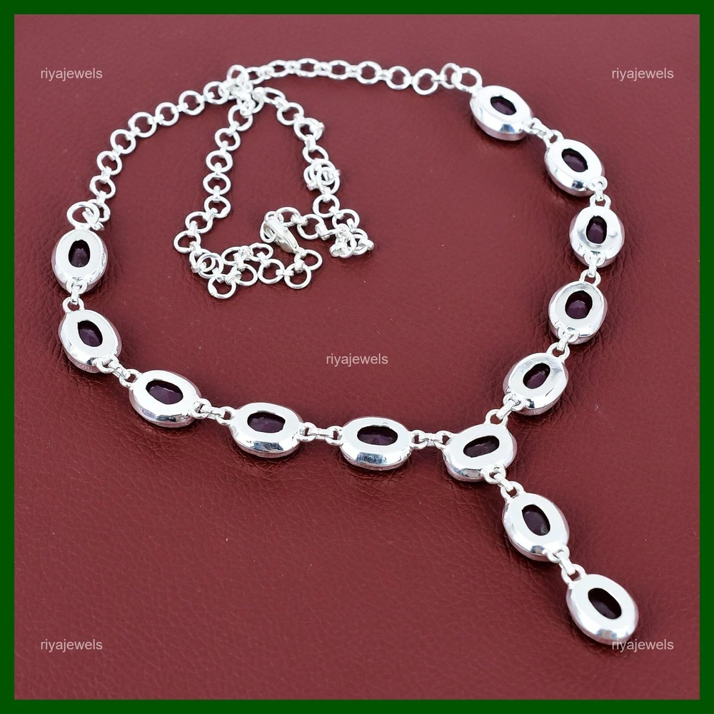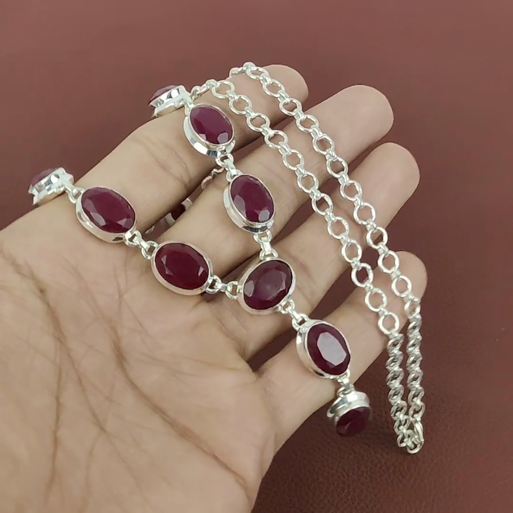 Note : Due to the natural formation of this gemstone. Slight variation in design and color are to be expected. Welcome to Riyajewels Mothers day Sale Natural Kashmir Rubi Artisan Chain Necklace 925 Sterling Silver Handmade Necklace, Sterling Silver Necklace, Kashmir Rubi Necklace, Handcrafted Necklace SKU : PN-1423 Gemstone : Kashmir Rubi Stone Shape : Oval Metal Purity : 925 Sterling Silver Necklace Length : 20 Inches Adjustable : Yes Silver Jewelry is a popular choice for many people due to its unique properties and numerous benefits. Here are some of the key properties and benefits of wearing silver jewelry: Properties: Durability: Silver is a durable metal that can withstand regular wear and tear. Malleability: Silver is highly malleable, which means it can be easily shaped and molded into various designs. Conductivity: Silver is an excellent conductor of heat and electricity. Anti-bacterial: Silver has natural anti-bacterial properties, which can help prevent the growth of harmful bacteria. Benefits: Aesthetic appeal: Silver jewelry is known for its beauty and versatility, and can be worn with a variety of outfits and styles. Hypoallergenic: Silver is generally hypoallergenic, which means it is unlikely to cause an allergic reaction in most people. Healing properties: Some people believe that wearing silver jewelry can help with various physical and emotional conditions, such as arthritis, anxiety, and depression. Spiritual significance: Silver has been used in various cultures for its spiritual and symbolic significance, and wearing silver jewelry can help to connect with these traditions. Investment value: Silver is a precious metal that retains its value over time, and investing in silver jewelry can be a smart financial decision. Overall, silver jewelry offers a unique combination of beauty, durability, and benefits, making it a popular choice for people around the world. For Mother's Day Gift For Father's Day Gift For Promise For Valentine' Day For Halloween Party For Christmas Day Gift For New Year Party For Mom For Her If you can't find the information you need or need some advice for your design? Feel free to contact us. We are fast to reply :) All our work is made by hand with Love and Care in our workshop Thank you so much for visiting and hope you enjoy shopping with us Riyajewels is dedicated to providing customers with high-quality sterling silver jewelry. As a manufacturer of handmade jewelry, we offer an extensive range of silver gemstone jewelry that demonstrates our exceptional craftsmanship. We are skilled in adorning gemstones to complement any style, and we give you the freedom to design your own jewelry collection with dazzling, natural, and genuine gemstones. Our talented craftsmen carefully handcraft each jewelry piece, ensuring that it is unique and made with authentic gemstones.