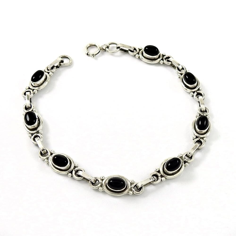 Welcome to Silvermantra2016 Christmas Sale Natural Black Onyx 925 Solid Silver Chain Root Chakra Bracelet This stunning bracelet is a perfect gift for any special occasion. With its beautiful oval-shaped black onyx stone and sterling silver chain, it is sure to impress. The bracelet is handcrafted and engraved, making it a truly unique piece of jewelry. The bezel setting style and slight inclusivity of the gemstone clarity grade do not detract from the overall beauty and authenticity of this piece. The bracelet is nickel-free and comes with a seller warranty and certification. It is also customizable and can be sized to fit any wrist size. This bracelet is a perfect representation of beauty, luck, love, bohemian, healing, love & hearts, special occasion, ethnic, and halo themes. Why silvermantra2016 ? Pure 925 Sterling Silver Jewelry. No alloy and brass nothing. We do not use any type of chemical in our plating process to enhance the shine & luster of the metal which are harmful to your skin. We use high quality stones which gives even better radiance than real gemstones. Customization We offer customization on each product at reasonable price. If you have a design in mind, we can manufacture customized products as well. Gemstone Elegance Choose from a dazzling array of gemstones, including Turquoise, Garnet, Tourmaline, Black Onyx, Tiger Eye, Onyx, Lapis Lazuli, Rainbow Moonstone, Labradorite, Amethyst, Citrine, Cubic Zirconia, Amber, Aquamarine, Rhodochrosite, Amazonite, Aventurine, Azurite, Malachite, Opal, Carnelian, Chalcedony, Chrysoprase, Jasper, Agate, Iolite, Topaz, Larimar, Peridot, Pearl, Prehnite, Ruby, Emerald, Smoky Quartz, Coral, Rutile Quartz and more. Each gemstone boasts unique beauty and energy to enhance your aura. Exquisite Designs Choose from an array of captivating designs, including intricate nature-inspired motifs, timeless classics, and modern interpretations. Our women's gemstone Bracelet cater to your unique style preferences. Diverse Gemstone Selection Explore a vast range of gemstones, each connected to specific birth months and symbolic meanings. Versatile Elegance Whether you're dressing up for a special event or elevating your daily attire, our gemstone Bracelet effortlessly transition from day to night, ensuring you shine in every moment. Value and Quality As proud manufacturers, we prioritize offering premium women's Sterling Silver Bracelet with gemstones at the most affordable prices. Our commitment to value means you can indulge in exceptional jewelry without breaking the bank. ShippingPolicy We do ship worldwide by Registered & Express mail with tracking number. Shipping time takes up to 10 - 14 business days depending on location. All additional payments such as duties & taxes are the buyer's responsibility. We ship only to the approved address that registered in Payoneer. Note: In some cases delay your parcel as per our eBay global shipping partner conveyed us, that shipments may take 25 to 30 days also to reach you due to cross border and customs, delaying clearance of shipments. Note: All Jewelry photos are taken by professional’s photographers. They use many photo equipments, like Flash, Day Light etc. Brightness and contrast are also used in photo editing. So gemstones color can be little dark or light. Handling Time : 2 Business Days Return Policy We Deals in Handmade 925 Sterling Silver Gemstone Jewelry. In any case, if you are not satisfied with the product first, please contact us and we will try to satisfy you by resolving your concern. We only accept returns if product is having any manufacturing defect. If buyer open return request with these reasons like: don't like the item or changed mood, then buyer will have to pay return shipping charges. We didn't accept return of broken piece and stone. If buyer want to return, then return shipping charges will be paid by buyer. Feedback We give immediate positive feedback to our buyers as soon as payment is received in Payoneer. In any case of any problem contact us right away before leaving any Negative or Neutral feedback. We will do our best to resolve any problem and to make you satisfied. Thank you for shopping!
