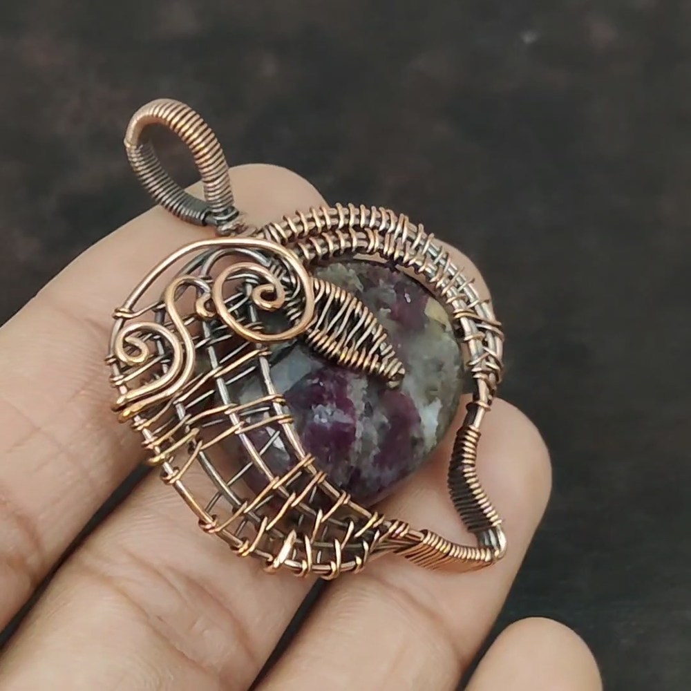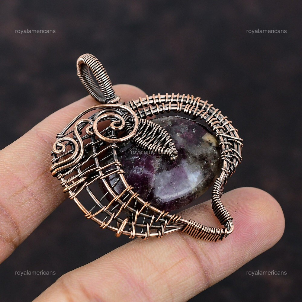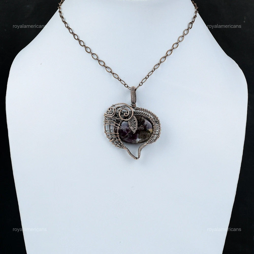 Note : Due to the natural formation of this gemstone. Slight variation in design and color are to be expected. Welcome to Royalamericans Mothers day Deal Copper Oval Pink tourmaline Stone Handcrafted Wire Wrap Pendant Handmade Pendant, Wire Wrapped Pendant, Wire Wrapped Jewelry, Copper Pendant, Copper Wire Pendant, Wrapped Jewelry, Wire Wrap Pendant, Wire Wrap Jewelry SKU : UFWP-1589 Gemstone : Pink tourmaline Stone Shape : Oval Metal Purity : Unknown Copper Length : 58 Millimeters Width : 45 Millimeters Copper has been used for jewelry making for thousands of years, dating back to ancient civilizations such as the Egyptians, Romans, and Aztecs. Copper was valued for its beauty, versatility, and durability, and was often used to make everything from jewelry and coins to cookware and tools. In addition to its historical significance, copper jewelry also offers several benefits. Copper is a natural conductor of heat and electricity, which makes it ideal for energy healing and therapeutic purposes. Wearing copper jewelry is believed to have various health benefits, such as improving circulation, reducing inflammation, and boosting the immune system. Some people also believe that copper jewelry has the ability to balance energy and improve mood. For Mother's Day Gift For Father's Day Gift For Promise For Valentine's Day For Halloween Party For Christmas Day Gift For New Year Party For Mom For Her If you can't find the information you need or need some advice for your design? Feel free to contact us. We are fast to reply :) All our work is made by hand with Love and Care in our workshop Thank you so much for visiting and hope you enjoy shopping with us Royalamericans is committed to delivering the best quality sterling silver jewelry to customers. As a handmade jewelry manufacturer, we offer an extensive selection of copper gemstone jewelry that showcases the brilliance of our craftsmanship. We are an experienced handmade jewelry supplier with expertise in embellishing gemstones to suit every style. We offer you the liberty to create your jewelry ensemble with sparkling, earthy, and pure gemstones. Our Talented artisans masterfully handcraft each piece of jewelry you see here. Our pieces are made with genuine gemstones.