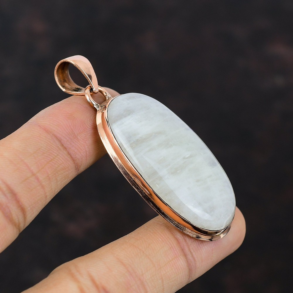 Note : Due to the natural formation of this gemstone. Slight variation in design and color are to be expected. Welcome to Kalka Stones Copper Oval Rainbow Moonstone Stone Crown Chakra Engagement Daughter New Pendant Handmade Pendant, Wire Wrapped Pendant, Wire Wrapped Jewelry, Copper Pendant, Copper Wire Pendant, Wrapped Jewelry, Wire Wrap Pendant, Wire Wrap Jewelry SKU : VWP-1 Gemstone : Rainbow Moonstone Stone Shape : Oval Metal Purity : Unknown Copper Length : 63 Millimeters Width : 29 Millimeters Copper has been used for jewelry making for thousands of years, dating back to ancient civilizations such as the Egyptians, Romans, and Aztecs. Copper was valued for its beauty, versatility, and durability, and was often used to make everything from jewelry and coins to cookware and tools. In addition to its historical significance, copper jewelry also offers several benefits. Copper is a natural conductor of heat and electricity, which makes it ideal for energy healing and therapeutic purposes. Wearing copper jewelry is believed to have various health benefits, such as improving circulation, reducing inflammation, and boosting the immune system. Some people also believe that copper jewelry has the ability to balance energy and improve mood. For Mother's Day Gift For Father's Day Gift For Promise For Valentine's Day For Halloween Party For Christmas Day Gift For New Year Party For Mom For Her If you can't find the information you need or need some advice for your design? Feel free to contact us. We are fast to reply :) All our work is made by hand with Love and Care in our workshop Thank you so much for visiting and hope you enjoy shopping with us Kalka Stones is committed to delivering the best quality jewelry to customers. As a handmade jewelry manufacturer, we offer an extensive selection of copper gemstone jewelry that showcases the brilliance of our craftsmanship. We are an experienced handmade jewelry supplier with expertise in embellishing gemstones to suit every style. We offer you the liberty to create your jewelry ensemble with sparkling, earthy, and pure gemstones. Our Talented artisans masterfully handcraft each piece of jewelry you see here. Our pieces are made with genuine gemstones.