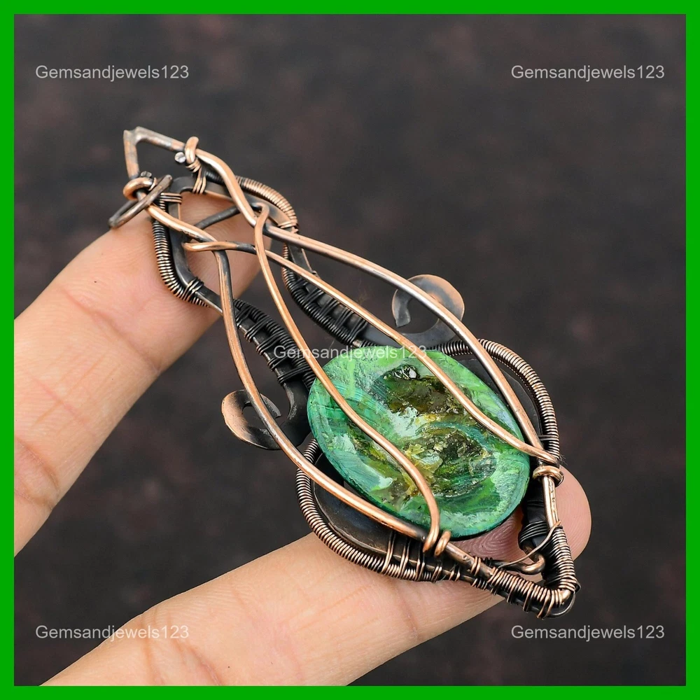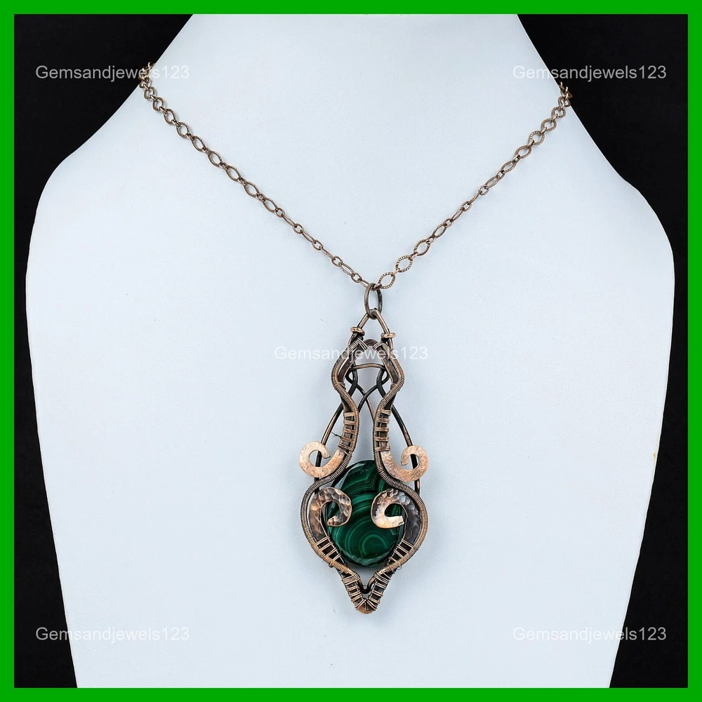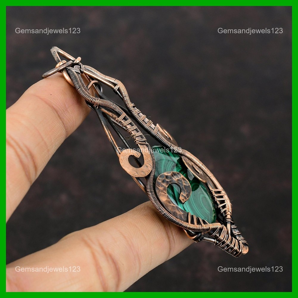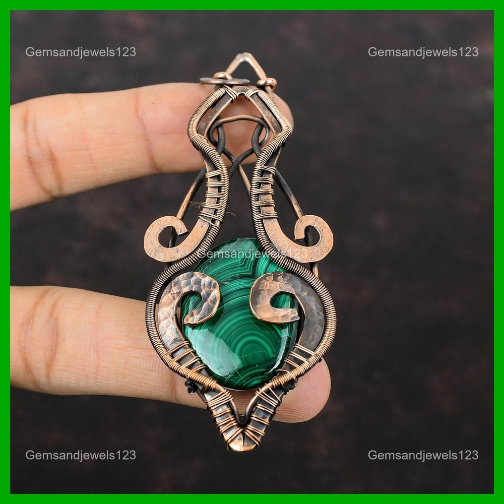 Note : Due to the natural formation of this gemstone. Slight Variation in design and color are to be expected. Welcome to gemsandjewels123 Mothers day Deal Oval Natural Malachite Copper Wire Wrapped Sister Boho Pendant Handmade Pendant, Wire Wrapped Pendant, Wire Wrapped Jewelry, Copper Pendant, Copper Wire Pendant, Wrapped Jewelry, Wire Wrap Pendant, Wire Wrap Jewelry SKU : VFWP-3506 Gemstone : Malachite Stone Shape : Oval Metal Purity : Unknown Copper Length : 98 Millimeters Width : 36 Millimeters Copper has been used for jewelry making for thousands of years, dating back to ancient civilizations such as the Egyptians, Romans, and Aztecs. Copper was valued for its beauty, versatility, and durability, and was often used to make everything from jewelry and coins to cookware and tools. In addition to its historical significance, copper jewelry also offers several benefits. Copper is a natural conductor of heat and electricity, which makes it ideal for energy healing and therapeutic purposes. Wearing copper jewelry is believed to have various health benefits, such as improving circulation, reducing inflammation, and boosting the immune system. Some people also believe that copper jewelry has the ability to balance energy and improve mood. For Mother's Day Gift For Father's Day Gift For Promise For Valentine's Day For Halloween Party For Christmas Day Gift For New Year Party For Mom For Her If you can't find the information you need or need some advice for your design? Feel free to contact us. We are fast to reply :) All our work is made by hand with Love and Care in our workshop Thank you so much for visiting and hope you enjoy shopping with us gemsandjewels123 is committed to delivering the best quality sterling silver jewelry to customers. As a handmade jewelry manufacturer, we offer an extensive selection of copper gemstone jewelry that showcases the brilliance of our craftsmanship. We are an experienced handmade jewelry supplier with expertise in embellishing gemstones to suit every style. We offer you the liberty to create your jewelry ensemble with sparkling, earthy, and pure gemstones. Our Talented artisans masterfully handcraft each piece of jewelry you see here. Our pieces are made with genuine gemstones. The one-of-a-kind piece you see here is the same exact piece you will receive.