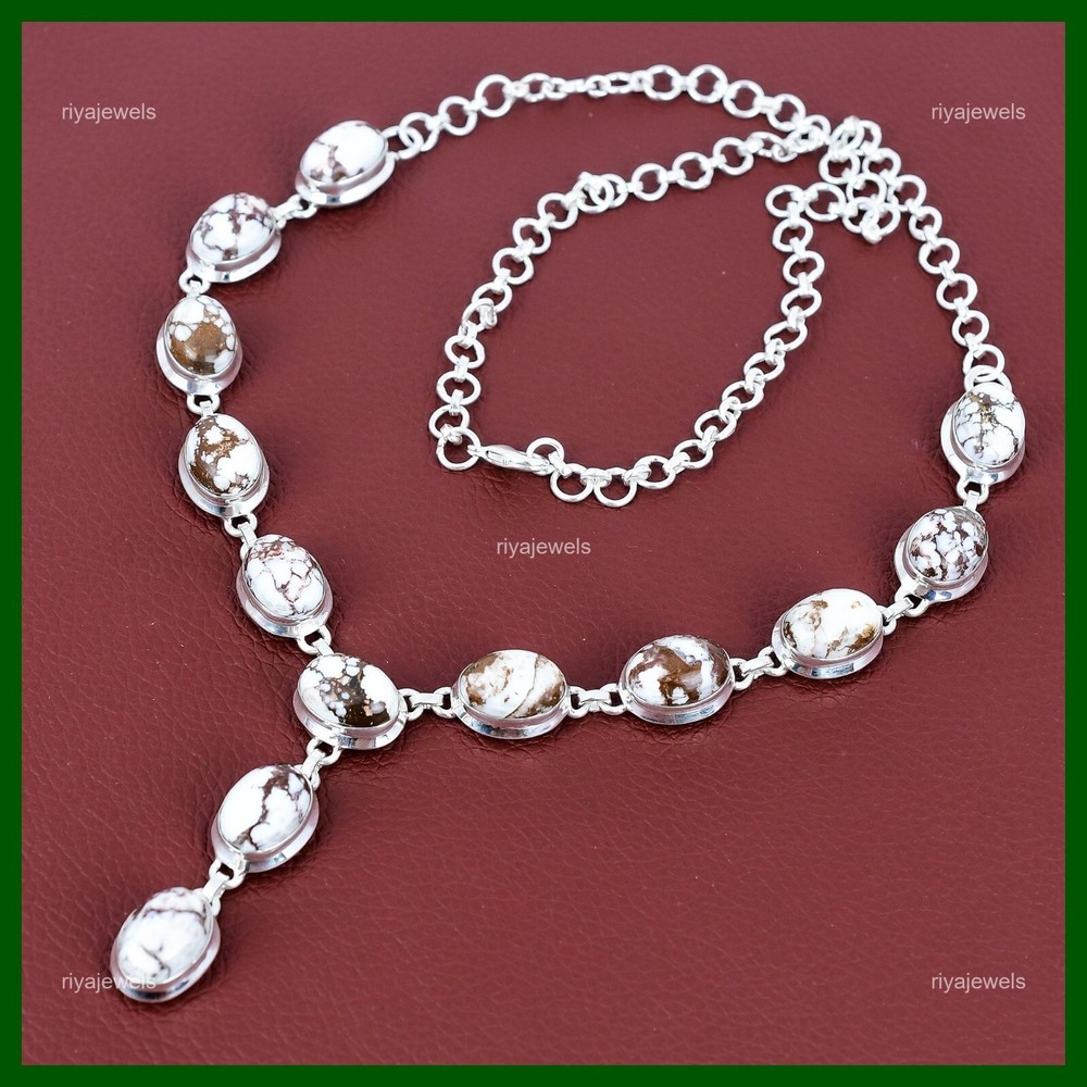 Mothers day Sale Wild Horse Magnesite Gemstone Chain Necklace Sterling Silver