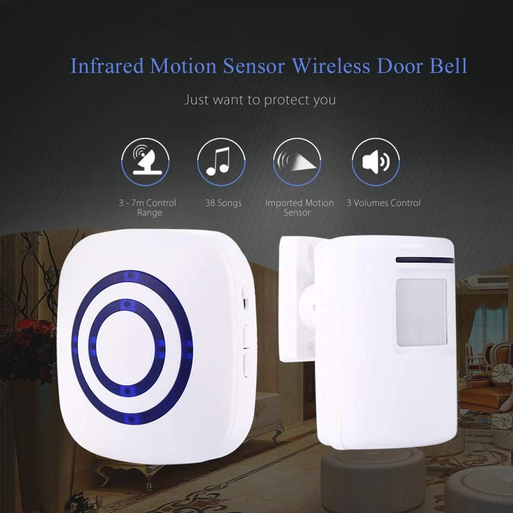 Never worry about surprise visitors again with our Wireless Driveway Alert. This easy to use and set up, wireless Infrared Motion Sensor Door Bell Alarm includes 1 Receiver and 1 Sensor. Bright LED Indicators and a choice of 38 Chimes allow you to customize your alerts. Features: Includes wireless battery operated sensor and plug in receiver Just place the sensor at the entrance to your driveway and the receiver inside your home. It detects movements and sends a signal to the receiver from up to 328 feet (100m) away. Alerts you when someone enters your driveway, walking path, doorway or business, such as visitors, vehicles, intruders, animals or kids coming or going. Advanced notice when someone or something enters before they surprise you. Use it to monitor any area inside or outside, its wireless so you can place it anywhere in the house or even take it from room to room. Specifications: Working Voltage of the Receiver£º110V-240V Working Voltage of the PIR Sensor£º4.5V£¨3 AAA batteries£ Working Range: Up to 328 feet (100 meters) Infrared Sensing Range: Up to 23 feet (7 meters) Receiver Size: 3.14¡± L x 2.99¡± W x 1.29¡± H (80 x 76 x 33mm) Sensor Size: 3.14¡± L x 2.32¡± W x 1.77¡± H (80 x 59 x 45mm) Packaging Weight: 7.76 ounces (.22kgs) Receiver Switch Settings: Music source: 38 different songs Volume Adjustment: high, middle, low Package Includes: 1 x PIR Sensor (Uses 3 AAA, not included) 1 x Receiver 1 x Instruction Manual Easy, Fast, Wire Free Installation: Infrared sensor detects motion and sends a signal to the receiver. Chose from 38 Ringtones with Bright LED Light. Sensor is wall mountable. Wireless Plug-in Receiver: The portable wireless plug-in receiver plugs into any standard outlet. The sensor uses 3 AAA batteries (Not Included). Detection time delay in between motion sensor alerts is configurable from 15 seconds to 30 seconds, just place the sensor at the entrance to your driveway and the receiver inside your home. Working Range up to 328 feet (100 meters) between receiver and transmitter allowing you to place it a good distance from the receiver to warn you of arrival and departure of family members, unwanted guests or solicitors, or anyone who visits your home or business Ideal for front doors, window frames, driveways, walking paths, and anywhere in your home you want to be alerted to motion. Also great to alert business owners that are working in the back, or out of sight, to customers entering their store. Note: Includes 1 plug-in receiver unit and 1 motion sensors requiring 3x AAA batteries (Not Included). Receiver size: 3.14” L x 2.99” W x 1.29” H (80 x 76 x 33mm) Sensor Size: 3.14” L x 2.32” W x 1.77” H (80 x 59 x 45mm)