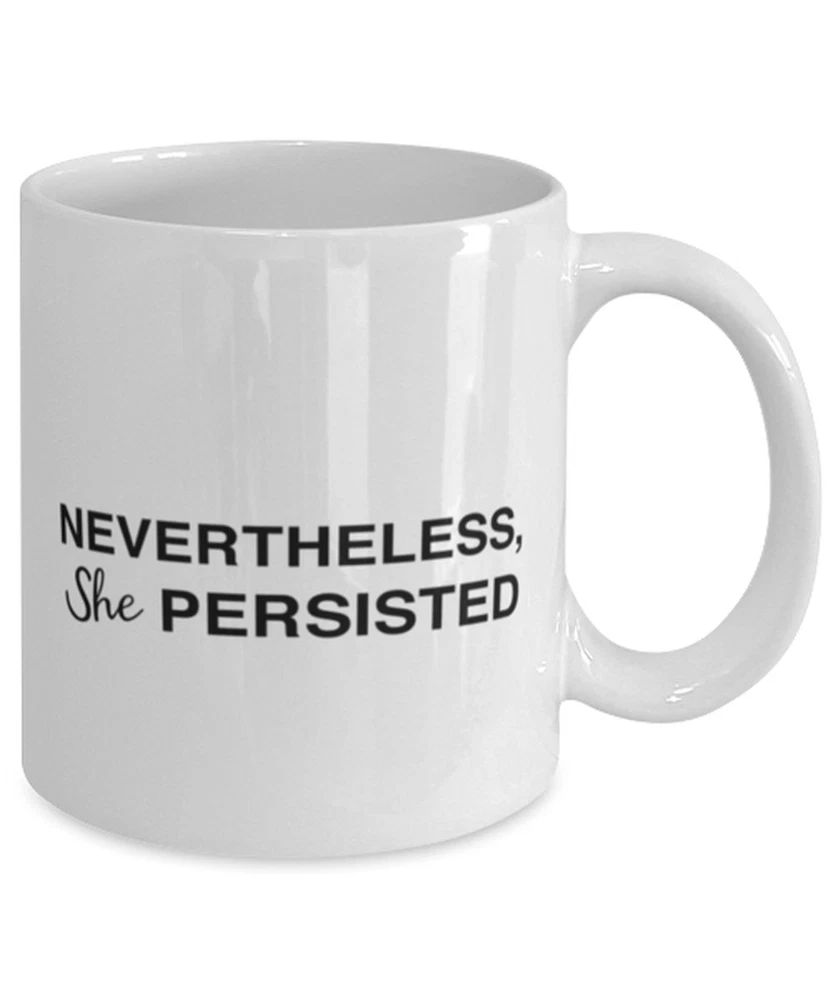 Motivational Graduation Funny Coffee Mug Nevertheless She Persisted Girl Power Product Details.. This high quality 11oz. ceramic white mug has a premium hard coat that provides crisp and vibrant color reproduction sure to last for years. Perfect for all hot & cold beverages. The highest quality printing possible is used. It will never fade no matter how many times you wash it. Material: 100% Ceramic. Print both sides. Dishwasher and Microwave Safe. High Gloss + Premium White Finish. Printed in the U.S.A. Personalized & Custom. We support personalized and custom mug to add custom, when placing an order, you can add notes to the "order note" in shipping address section. Also you can contact us directly via message. Shipping Info. Ready to ship in 1 to 2 business days, All products are made-to-order and proudly printed in the United States. Shipped by USPS and DHL, You will receive your order in 5-7 days. Replace & Refund. All products are defective during shipping broken, chipped will be replaced free of charge. You are not satisfied with the product, we will refund 100% money to you. If any other issues arise, please do not hesitate to message, we would be more than happy to assist you.