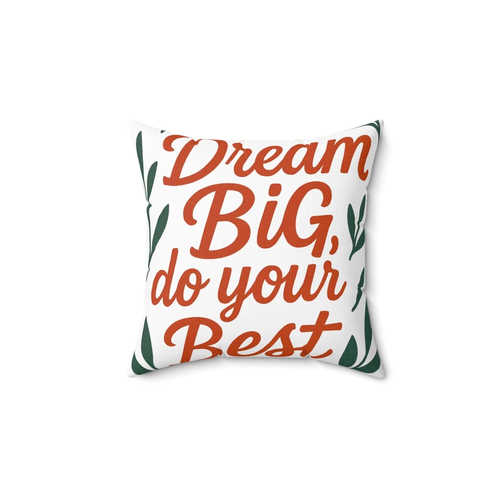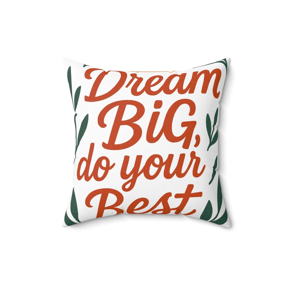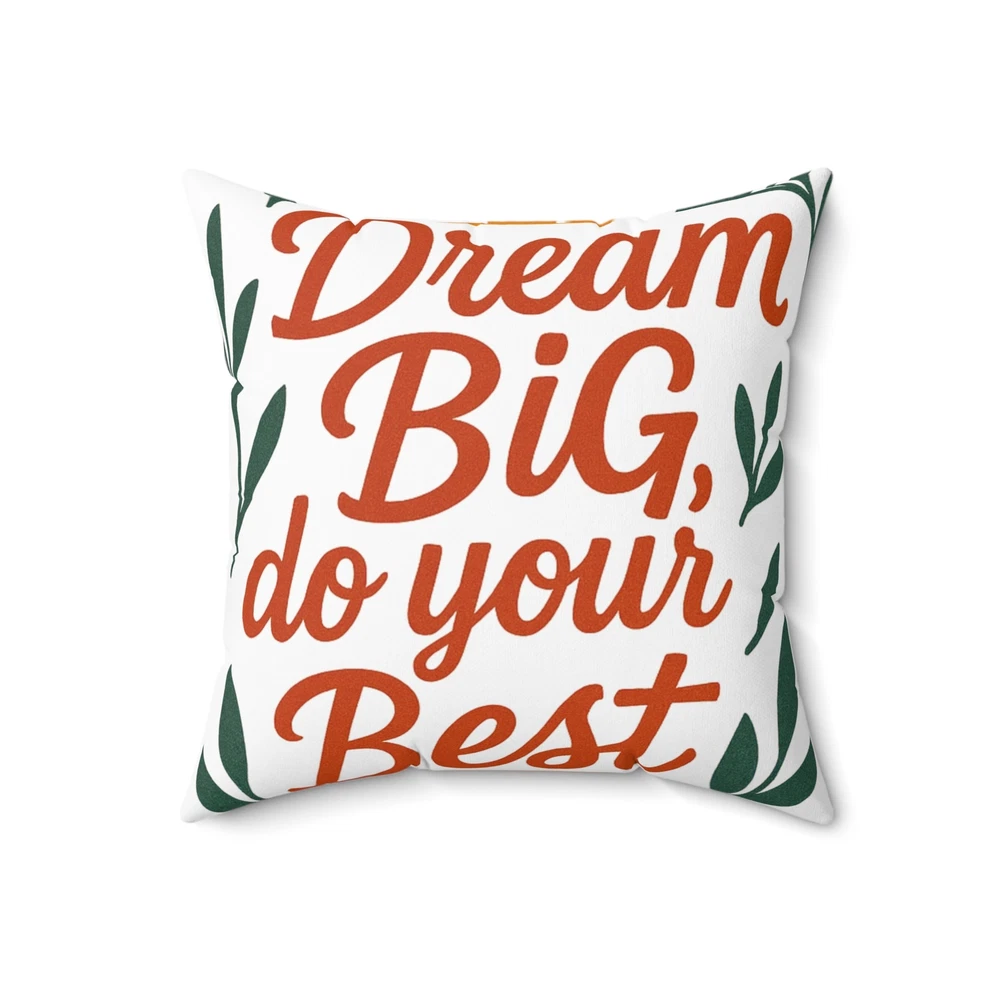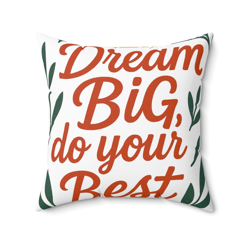 Add a touch of inspiration to your home with our motivational pillow. This cozy item radiates positivity and warmth, perfect for creating a welcoming atmosphere. Whether placed on your couch, bed, or chair, it brings a cheerful vibe that encourages you to embrace your dreams. Ideal for anyone looking to uplift their space, this pillow fits seamlessly into any décor style. It makes a thoughtful gift for friends and family during holidays, housewarming parties, or even as a simple treat for yourself. Celebrate achievements and inspire moments with this charming decor piece! Product features - 100% spun polyester for durability and shape retention - Beige plastic zipper with a stylish metal head - Comes unassembled for minimal shipping creases - Includes a plush, recycled polyester insert - Double-sided print for versatile decor options Care instructions - Remove the pillow cover. Pre-treat the stains with soft cloth or bristle brush that had been soaked in warm soapy water. Machine wash, max 40°C (104°F), normal cycle. Do not bleach, tumble dry on low, do not dry-clean. Iron, steam, or dry low heat only. Fluff to reshape when assembling it back together. EU representative : HONSON VENTURES LIMITED, 3, Gnaftis House flat 102, Limassol, Mesa Geitonia, 4003, CY Product information : Generic brand, 2 year warranty in EU and Northern Ireland as per Directive 1999/44/EC Care instructions : Remove the pillow cover. Pre-treat the stains with soft cloth or bristle brush that had been soaked in warm soapy water. Machine wash, max 40°C (104°F), normal cycle. Do not bleach, tumble dry on low, do not dry-clean. Iron, steam, or dry low heat only. Fluff to reshape when assembling it back together.