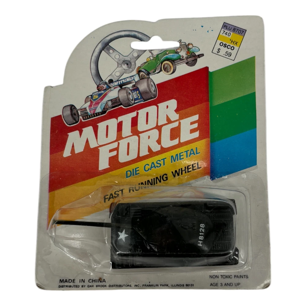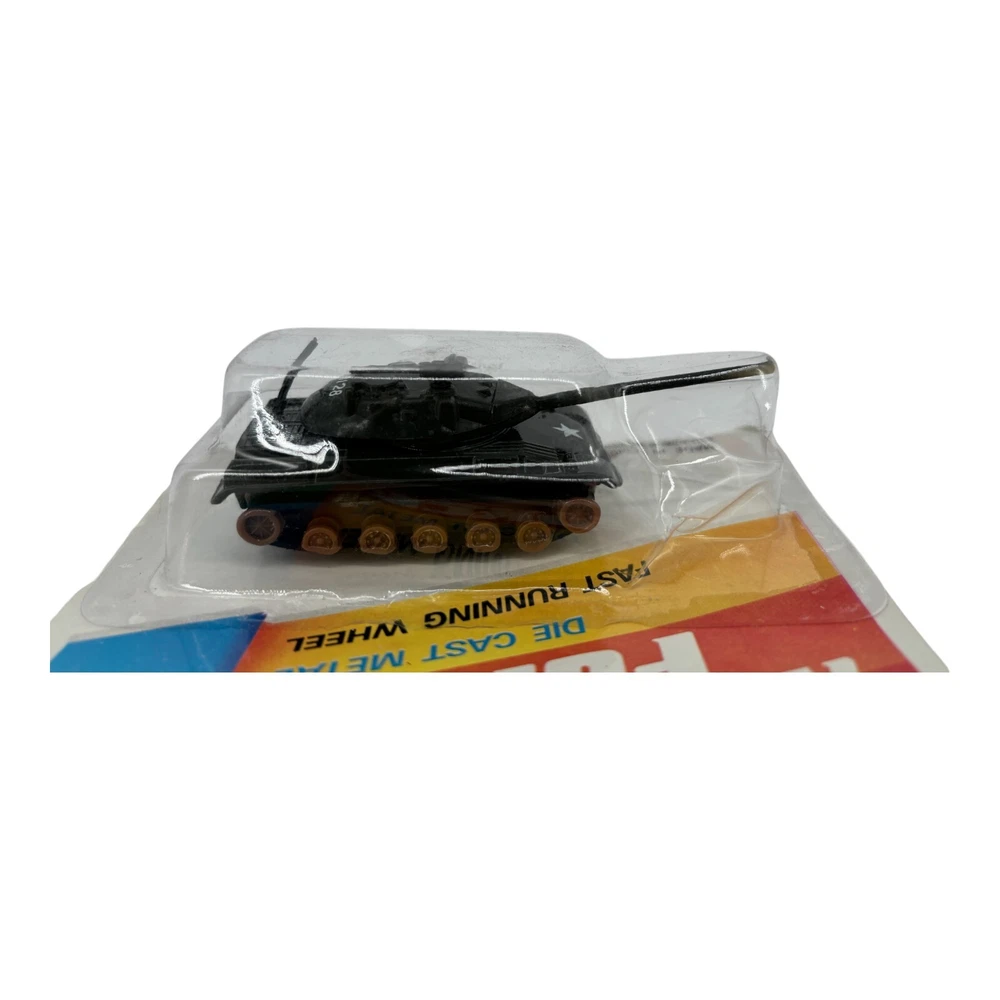 This vintage Military Tank by Motor Force is a must-have for any collector or enthusiast. The dark green color and metal material make it a durable and realistic addition to your collection. The tank's intricate details and accurate design make it a great conversation starter. Whether you're a fan of military history or just appreciate the artistry of vintage toys, this tank is sure to impress. Add it to your collection today and enjoy the satisfaction of owning a piece of history. Packaging has some minor wear. See photos.