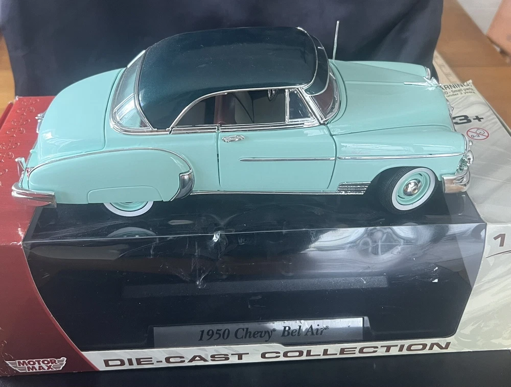 Motor Max 1950 Chevy Bel Air Deluxe Hardtop 1:18 Scale Diecast Model Car - TEAL. Condition is Used. Shipped with USPS Ground Advantage.