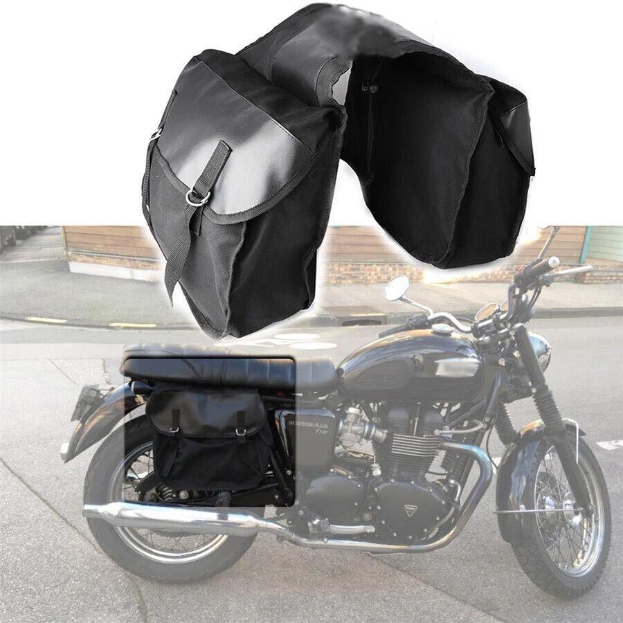 Product Description Motorcycle Bike Rear Tail Storage Bag Saddle Bags Black For Honda Suzuki Features: Heavy duty duck cotton reinforced with vinyl backing Two large pockets with double-strapped flap covers Reinforced at all stress points Large capacity storage space Strong stitching, durable Leather surface decoration, cool Two large pockets with double-strapped flap covers and total storage capacity of 1,056 cubic inches. Reinforced at all stress points for durability. Warning: Keep bag a safe distance from hot objects to avoid risk. Always be sure to secure all laces and straps to avoid entanglement. Look very old school throw overs but if you wanted them to have more shape you could easily make inserts to stiffen the sdes. The do look very cool. FITMENT: Universal motorcycle bike such as: 2013 For Bonneville/For for honda shadow 750 For Royal Enfield /For bonneville/For for honda ctx For taotao thunder/91' Vulcan 500/ iron 833 For Suzuki dr 650/ For Sportster/150cc scooter 1977 For kawasaki 1000 / 1983 XL600r Specifications: Color: Black Material: Canvas + leather Dimension (length, width, depth): 40X15X30CM Package Included: 1 X Back Pack 2 X Rope Payment Shipping Returns Customer Services We accept payment by PayPal only ! Payment should be completed within 7 days after buyer places the order,or else an unpaid case will be opened in order to cancel the transaction. If you can not pay in time, please contact us. eCHECK from PayPal will only be processed once the payment clears. All of the items will be shipped to buyer's EBAY address,please confirm your address on Ebay before you buy. Your order will be usually shipped out the same or next business days once the payment is made and cleared. All items will be checked before packing. All items are new and of high quality. Item will be shipped within 1 business days upon receipt of payment, excluding weekends and public holidays. If to USA,we will ship your order by USPS,it will take about 7-10 working days to you,and you can track it on line. If to other country,we will ship your order by China Post or Singapore Registered Air Mail,it will take about 14-21 working days to you,you aslo can track it on line. Delivery time is about 14-28 business days and it may take up to 8 weeks to some European countries and South American countries due to strict custom inspection. We ship worldwide. Shipping fee include packing, warehouse, distribution, order handling and processing costs. We offer combined shipping discount on Shipping & Handling. Please note that some countries will have custom duty or tax for certain items. It is the buyer's responsibility to pay all endued custom duty or tax. We are not responsible for any custom duty or tax since our price do not include this charge. 30-day Warranty with Exchange for defective, malfunctioned, incorrect or partsmissing items. Please notify us and return the item with all parts and accessories packed and marked "FOR EXCHANGE" within 14 days of receipt. If defective, malfunctioned or parts-missing items are no longer available, a refund may be issued. All returning postage costs will be the responsibility of the buyers under all circumstances. If you encounter any problems about anything, please feel free to contact us and we will do our best to assist you solve the issue. If you are not satisfied in anyway, please feel free to let us know and give us a second chance to correct it before you decide to leave any neutral or negative feedback. Please contact us through eBay link if you have any questions. We will reply you within 24- 48 hours. Please check you spam mail if no response for 48 hours. Payment We accept payment by PayPal only ! Payment should be completed within 7 days after buyer places the order,or else an unpaid case will be opened in order to cancel the transaction. If you can not pay in time, please contact us. eCHECK from PayPal will only be processed once the payment clears. All of the items will be shipped to buyer's EBAY address,please confirm your address on Ebay before you buy. Your order will be usually shipped out the same or next business days once the payment is made and cleared. Shipping All items will be checked before packing. All items are new and of high quality. Item will be shipped within 1 business days upon receipt of payment, excluding weekends and public holidays. If to USA,we will ship your order by USPS,it will take about 7-10 working days to you,and you can track it on line. If to other country,we will ship your order by China Post or Singapore Registered Air Mail,it will take about 14-21 working days to you,you aslo can track it on line. Delivery time is about 14-28 business days and it may take up to 8 weeks to some European countries and South American countries due to strict custom inspection. We ship worldwide. Shipping fee include packing, warehouse, distribution, order handling and processing costs. We offer combined shipping discount on Shipping & Handling. Please note that some countries will have custom duty or tax for certain items. It is the buyer's responsibility to pay all endued custom duty or tax. We are not responsible for any custom duty or tax since our price do not include this charge. Returns 30-day Warranty with Exchange for defective, malfunctioned, incorrect or partsmissing items. Please notify us and return the item with all parts and accessories packed and marked "FOR EXCHANGE" within 14 days of receipt. If defective, malfunctioned or parts-missing items are no longer available, a refund may be issued. All returning postage costs will be the responsibility of the buyers under all circumstances. Customer Services If you encounter any problems about anything, please feel free to contact us and we will do our best to assist you solve the issue. If you are not satisfied in anyway, please feel free to let us know and give us a second chance to correct it before you decide to leave any neutral or negative feedback. Please contact us through
