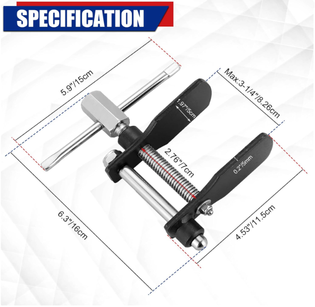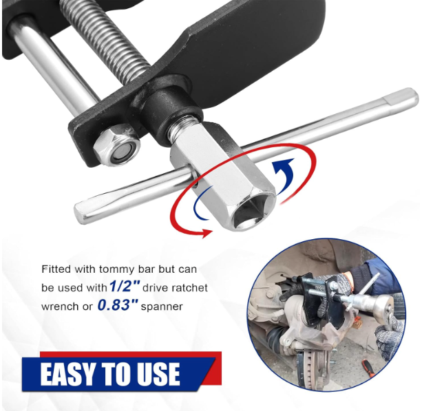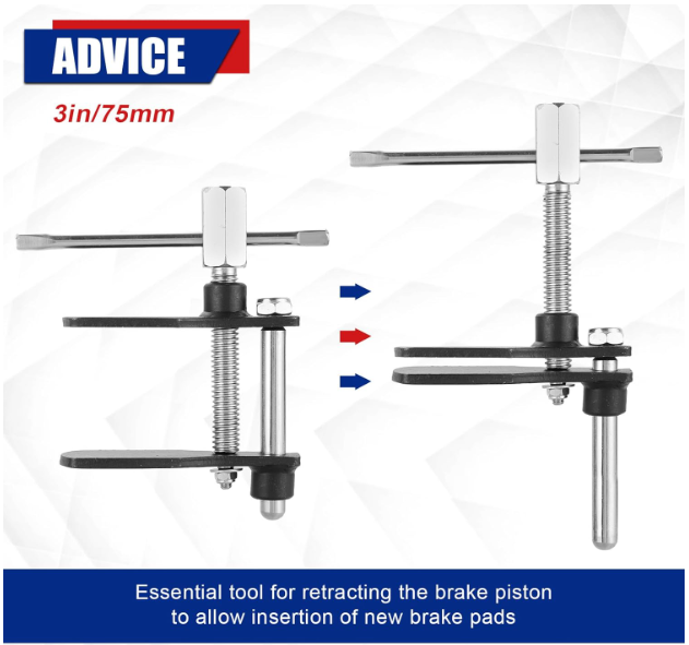 Store View Feedback Contact Disc Brake Caliper Piston Compressor Tool – Essential Brake Pad Installation Tool Make your brake maintenance quick, easy, and professional! Effortless Functionality: Easily pushes caliper pistons without surface damage. Durable Construction: Made from high-grade metal with corrosion resistance. Precision Engineering: Smooth thread movement ensures efficiency and ease. Wide Compatibility: Includes tommy bar, works with 1/2" ratchets & 0.83" spanners. Universal Fit: Ideal for Nissan, VW, Audi, Peugeot, Ford, GM, Porsche & more. Whether you're a professional mechanic or a DIY enthusiast, this disc brake pad spreader tool is an essential addition to your garage. With a max spread of 3-1/4", you’ll handle nearly any caliper with confidence. Designed to eliminate guesswork and manual strain, it helps save time while ensuring precise and safe installation. Product Weight: 1.94 lbs Package Dimensions: 7.4 x 6.18 x 2.48 inches
