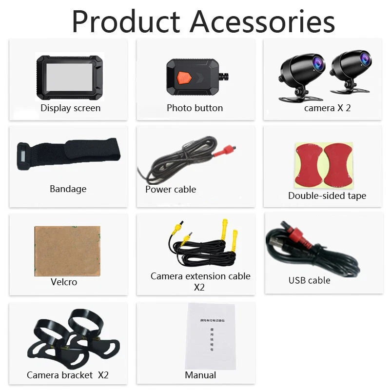 Product Description WiFi Motorcycle DVR Dash Cam Full HD 1080P Front Rear Dual Lens Waterproof Camera GPS Logger Recorder G-Sensor Specification: Product name: Front and rear dual recording 1080P high-definition motorcycle driving recorder Product color: black Lens wide angle: 150° wide angle Resolution: 1920x1080P Front camera: AHD1080P, 2G4P, 2 million, 1/2.9"", F=1.8, D=155° Rear camera: AHD 1080P, 2G4P, 2 million, 1/2.9"", F=1.8, D=155° Photo resolution: up to 12M Working frame rate: 30fps Video codec: H.264 Video format: MP4 (storage in TS format) Photo format: MJPEG Screen size: 3 inch IPS GPS: Support WIFI: Support Loop recording: support G sensor: 3-axis G sensor (low/middle/high) TF card: up to 128GB (C10) ,not included TF card Working voltage: DC5-24V Working current: 0.7A (typical value) Working temperature (℃): -20℃~80℃ Power supply mode: power supply from motorcycle battery, USB power supply Menu language: Chinese, English, Russian, Spanish, German, French, Italian etc. Hint: The display is not waterproof, it is recommended to put it in the trunk after installation for easy hiding and protection Packing list: host*1, camera*2, Velcro*2, fuse box power cord*1, camera button*1, strap*1, double-sided tape*2, camera extension cable*2, camera bracket*2 , GPS *1, user manual *1 Payment Returns Contact Us Shipping We accept payment by PayPal only ! Payment should be completed within 5 days after buyer places the order,or else an unpaid case will be opened in order to cancel the transaction. If you can not pay in time, please contact us. e-check from PayPal will only be processed once the payment clears. All of the items will be shipped to buyer's EBAY address,please confirm your address on Ebay before you buy.Your order will be usually shipped out the same or next business days once the payment is made and cleared. 30-day Warranty with Exchange for defective, malfunctioned, incorrect or parts-missing items. Please notify us and return the item with all parts and accessories packed and marked "FOR EXCHANGE" within 14 days of receipt. If defective, malfunctioned or parts-missing items are no longer available, a refund may be issued. All returning postage costs will be the responsibility of the buyers under all circumstances. If you encounter any problems about anything, please feel free to contact us and we will do our best to assist you solve the issue. If you are not satisfied in anyway, please feel free to let us know and give us a second chance to correct it before you decide to leave any neutral or negative feedback. Please contact us through eBay link if you have any questions. We will reply you within 24- 48 hours. Please check you spam mail if no response for 48 hours. All items will be checked before packing. All items are new and of high quality. Item will be shipped within 1 business days upon receipt of payment, excluding weekends and public holidays. If to USA,we will ship your order by USPS,it will take about 8-12 working days to you,and you can track it on line. If to other country,we will ship your order by China Post or Singapore Registered Air Mail,it will take about 14-21 working days to you,you aslo can track it on line. Delivery time is about 14-28 business days and it may take up to 8 weeks . Payment We accept payment by PayPal only ! Payment should be completed within 7 days after buyer places the order,or else an unpaid case will be opened in order to cancel the transaction. If you can not pay in time, please contact us. eCHECK from PayPal will only be processed once the payment clears. All of the items will be shipped to buyer's EBAY address,please confirm your address on Ebay before you buy.Your order will be usually shipped out the same or next business days once the payment is made and cleared. Returns 30-day Warranty with Exchange for defective, malfunctioned, incorrect or parts-missing items. Please notify us and return the item with all parts and accessories packed and marked "FOR EXCHANGE" within 14 days of receipt. If defective, malfunctioned or parts-missing items are no longer available, a refund may be issued. All returning postage costs will be the responsibility of the buyers under all circumstances. Contact Us If you encounter any problems about anything, please feel free to contact us and we will do our best to assist you solve the issue. If you are not satisfied in anyway, please feel free to let us know and give us a second chance to correct it before you decide to leave any neutral or negative feedback. Please contact us through eBay link if you have any questions. We will reply you within 24- 48 hours. Please check you spam mail if no response for 48 hours. Shipping All items will be checked before packing. All items are new and of high quality. Item will be shipped within 1 business days upon receipt of payment, excluding weekends and public holidays. If to USA,we will ship your order by USPS,it will take about 7-10 working days to you,and you can track it on line. If to other country,we will ship your order by China Post or Singapore Registered Air Mail,it will take about 14-21 working days to you,you aslo can track it on line. Delivery time is about 14-28 business days and it may take up to 8 weeks . Welcome to our Store ~