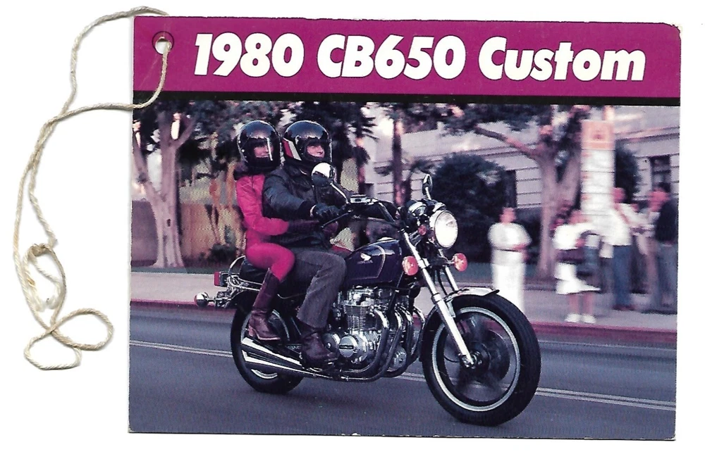 Motorcycle Data Sheet / Marketing Style Photo - Honda - CB650C - CB650 Custom - 1980 - Photo / Specification Summary - English language - Colour - Double-sided page (2 pages) - approx. 10 x 8 inch sized pages - Code: None; ex Dealer Sales Manual content - Light wear, good condition, 3-hole punched (No impairment of text). 2) Bike Price Tag (as used in retail store) - English language - Colour - Double-sided tag - approx. 4.25 x 5.5 inch sized pages - Code: None - Light wear, good condition, Dealer Stamp. NOTE: This listing is for a DATA SHEET and not the equipment illustrated. We will combine multiple wins and help reduce shipping charges for combination shipments where possible. Not responsible for shipments lost in mail. Please ask any questions prior to purchase. No returns or refunds. Items are sent via regular letter mail (No tracking) unless purchaser has requested tracking PRIOR to purchase and then paid for higher class shipping with tracking AFTER the costs have been entered into the listing to use. Please look through our Store Listings. Thanks for looking and for purchasing!