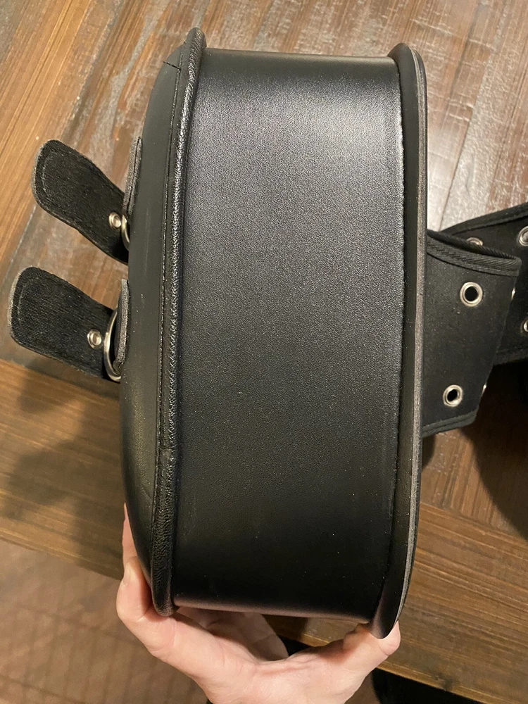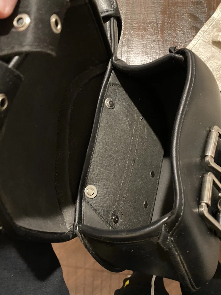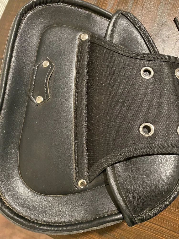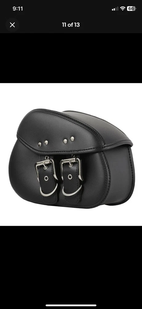 Add some extra storage to your motorcycle with these stylish and functional saddlebags. Designed for Harley, Honda, Yamaha, and Suzuki, these bags are made from high-quality leather and are water-resistant for protection against the elements. The expandable feature allows you to carry more items when needed, and the approximate size of 280mm x 215mm x 115mm makes them the perfect fit for your rear placement on your vehicle. These black saddlebags have been opened out of original plastic packaging but never used.