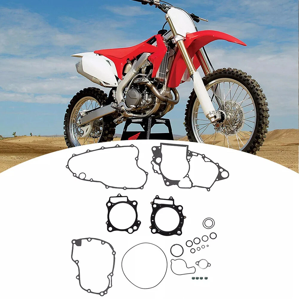 For CRF450R 2002-2008 Engine Set Top Bottom End Motorcycle Complete Gasket Kit Features: 1.Made of premium metal and rubber material, and wear-resistant. 2.The complete gasket kit is made of top-grade material gaskets and O-ring. 3.Gasket has sealing function, which can improve the safety performance to a certain extent. 4.It is an indispensable engine accessory and plays an important role in the driving process. 5.Especially designed fit for CRF450R 2002-2008. Specification: Condition: Brand New Color: Shown as Picture Material: Metal + Rubber Fitment: Fit for CRF450R 2008 Fit for CRF450R 2007 Fit for CRF450R 2006 Fit for CRF450R 2005 Fit for CRF450R 2004 Fit for CRF450R 2003 Fit for CRF450R 2002 Package List: 1 x Seal Gasket Kit Note: Please note that the new type and old type of this product will be sent randomly, and make sure you will not mind before ordering.