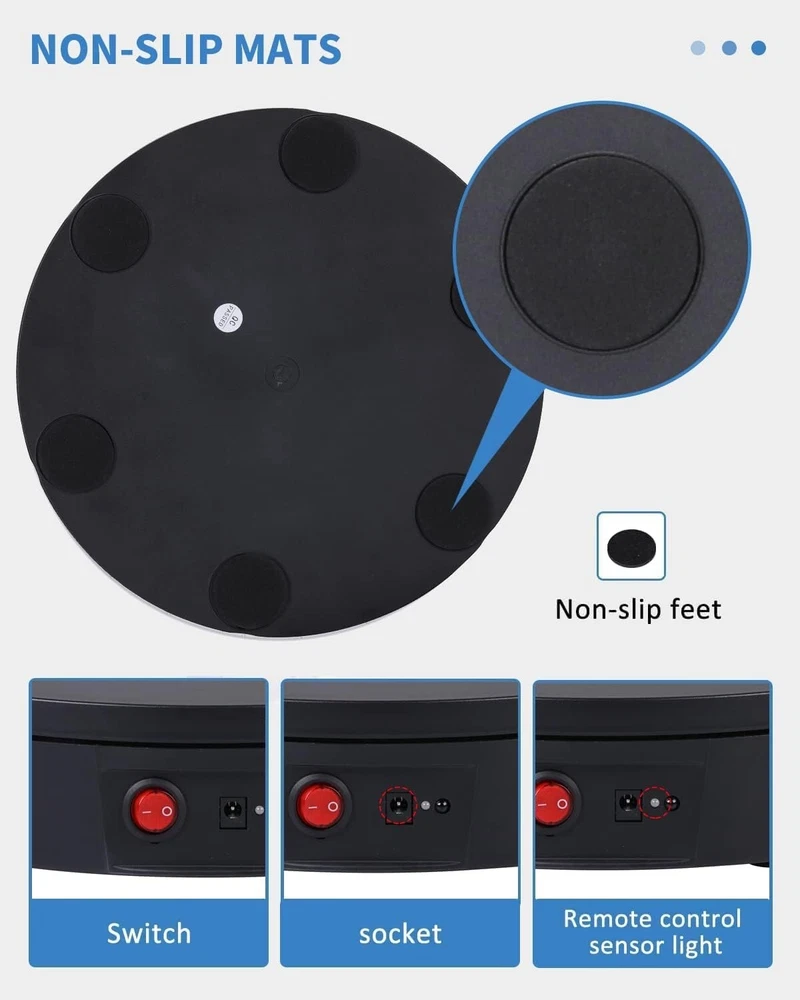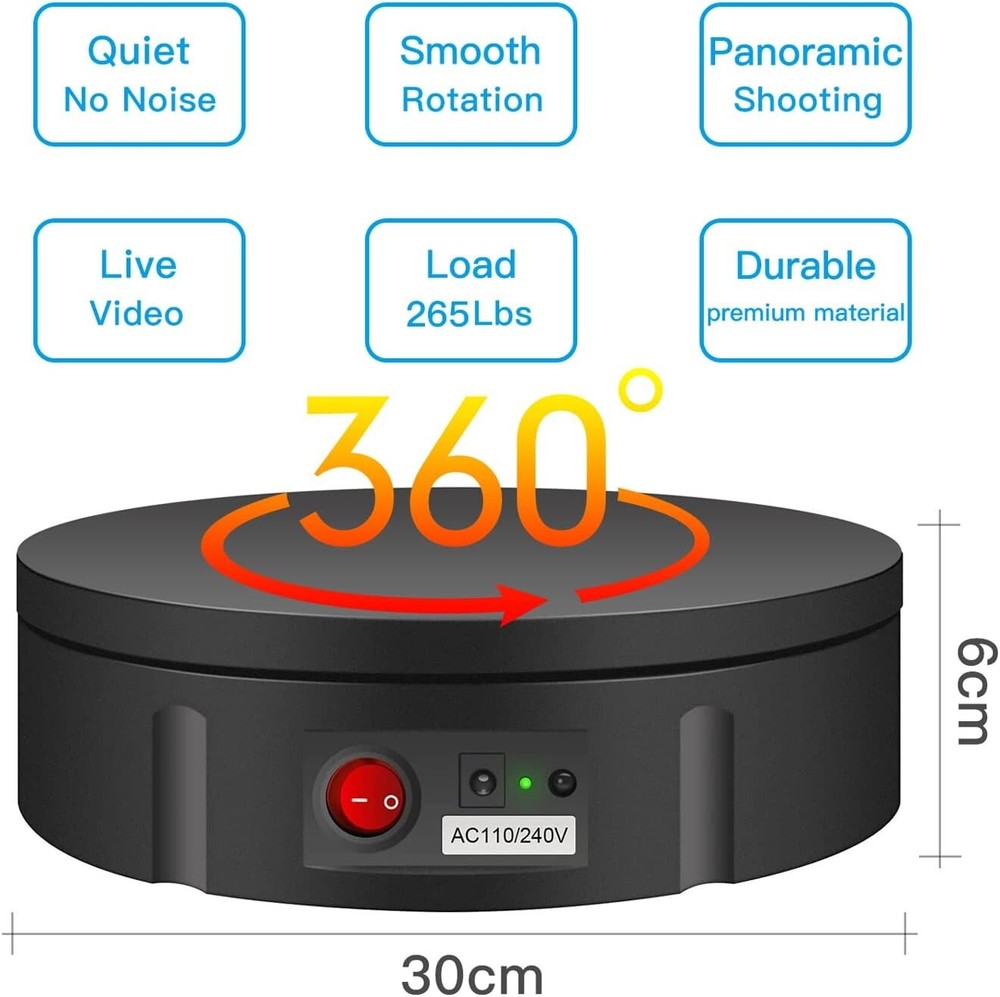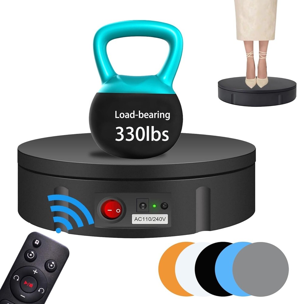 Motorized Photography Turntable - 330 lbs Capacity with 5 Color Backgrounds ‹ › ‹ › ‹ › ‹ › ‹ › ‹ › ‹ › ‹ › ‹ › Motorized Photography Turntable Perfect for the Professional Photographer & Enthusiast Product Highlights: Impressive Capacity: Hold up to 330 lbs, accommodating a wide array of products and displays. All-Angle Visibility: Full 360-degree rotation enables customers to view your products from every angle. Complete Package: Includes turntable, power supply, remote control, and simple instructions for easy setup. Innovative Remote Control Features: Customizable Modes: Adjust angle, speed, and direction with ease. Versatility: Enjoy both clockwise and counter-clockwise turning options, along with continuous and intermittent rotation modes. Position Memory: Save your settings for quick access, allowing you to take photos from every angle with consistent views. Precise Speed Adjustments: Control rotation speed ranging from 22 to 60 seconds per revolution, with 10 gears of speed adjustability. Versatile Applications: Ideal for product photography, still life, live product displays, and video production. Perfect for exhibitions, events, parties, weddings, and 3D scanning. Large size allows for significant product displays in-store or online. Portability and Convenience: Compact Design: Measures 11.8 inches in diameter, making it easy to transport and store. Lightweight: Weighs only 3 pounds for convenient carrying. Universal Power Supply: Compatible with AC110-240 V, ensuring usability in various locations. Why Choose Our Motorized Photography Turntable? Elevate your photography and video presentations with our Motorized Photography Turntable that combines functionality, elegance, and ease of use. Unmatched in quality, this turntable provides the perfect platform for showcasing your products like never before. Step into the future of product display and photography - order your Motorized Photography Turntable today! Shipping Free & Fast Shipping - We offer free shipping to most of the USA with a normal delivery time of 3-10 businessdays. However, due to various situations, additional delivery time (up to 3 weeks) may be required for some items. Alternative Carriers - We may use alternative carriers (e.g. USPS, FedEx, UPS, etc.) to ensure your package arrives safely and on time. Due to the use of multiple carriers, we are unable to provide a tracking number automatically. Handling Time - Orders are processed and shipped within 1-5 business days of receiving cleared payment. Shipping Restrictions - Shipping to Alaska, Hawaii, Puerto Rico, Guam, and other US territories may incur shipping charges or delivery restrictions. Please contact us before ordering, or your order can be refunded/cancelled. State Restrictions - There may be restrictions based on your state of purchase. For example, certain items may not be shipped to California due to state regulations. Contact for Tracking Updates - If you require tracking updates or have any concerns about the delivery of your order, please feel free to contact us, and we will be happy to assist you. Return Please see our ebay return policy. We do not accept return on most products. This is to avoid customers mis-using ebay returns. All sales are final. Please be sure to check the return policy listed at the top of the listing. In rare cases, we may accept returns, if the buyer pays both ways shipping and 20% restocking fee. If you are un-sure of return policy of a particular item, please ask before buying. Payment We accept all major credit cards, PayPal, and Apple Pay for your convenience. Your payment information is secure and encrypted to ensure a safe and seamless transaction. Please complete your payment within 3 days of purchase to avoid any delays in shipping. Feedback Your feedback is extremely important to us. We strive to provide the best products and customer service possible. If you are satisfied with your purchase, please take a moment to leave us a positive review. If you have any concerns or issues with your order, please contact us before leaving negative feedback. We are committed to resolving any problems and ensuring your satisfaction. Contact Us If you have any questions or concerns, please feel free to reach out to our customer support team. You can contact us through the eBay messaging system. We are available Monday to Friday, 9:00 am to 5:00 pm EST, and we will do our best to respond to your inquiry within 24 hours. Buy it now and enjoy a pleasant shopping experience! UPC: Not Set Unit Quantity: 3.52 lb Items Included: Turntable,Power Supply,Remote Control,Instruction Suitable For: Product Photography,Live Product Display,Live Video,3D Scanning Material: Not Set Theme: Not Set Features: Electric Remote Control,360 Degree Rotation,Adjustable Speed,Position Memory,Multiple Angle Circulation Modes Brand: Unbranded Type: Display Stand Color: Black Lining Material: Unlined Shape: Round Department: Unisex Adults Country/Region of Manufacture: Not Set Capacity: 330 Lbs Item Depth: 2.36 in Item Length: Not Set Item Width: Not Set MPN: Not Set Unit Type: lb Vintage: Not Set Handmade: Not Set Personalize: Not Set Customized: Not Set