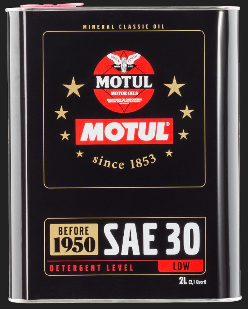 Mineral engine lubricant perfectly suitable for original engines as well as gearboxes built between 1900 and 1950. This product is formulated with very low detergent level for a complete compatibility with paper / felt / fabric gaskets. It has small detergent level to avoid excessive soot and deposits removing in the lubricating circuit. It can be used as break-in oil if drain intervals are shorten and offers complete compatibility with nonferrous metals as brass, bronze, copper. Reinforced adherence for easier startup even after a long period of immobilization. Mineral Monograde; 4 Stroke Engine Oil For Classic Cars and vehicles Drain interval: drain at least once a year.