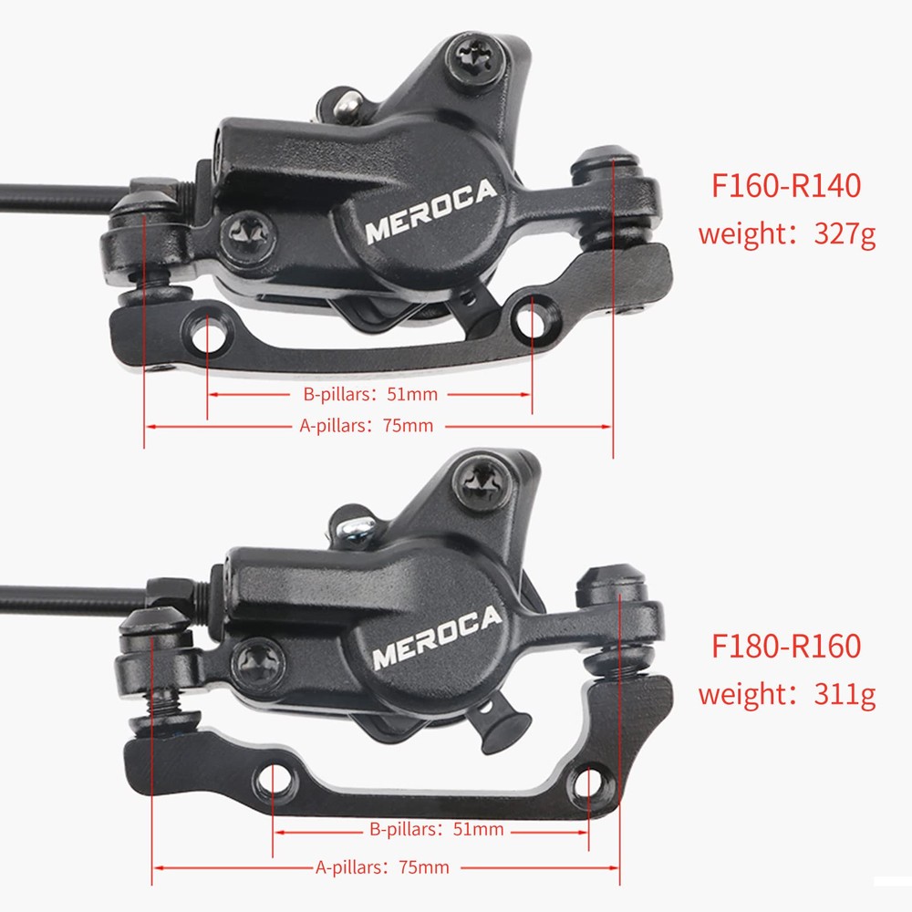 GOOD BRAKING PERFORMANCE: Mountain Bike Hydraulic Brake Bi-Directional Braking, Both Sides Drive The Friction Disc At The Same Time, The Braking Is Smooth, And The Brake Pads Return Automatically. Mineral Brake Fluid Can Maintain Good Braking Performance Under High Temperature Conditions. SAFE AND DURABLE: The Mountain Bike Hydraulic Brake Set Adopts Exquisite Piano Paint Technology, Fine Texture, Anti-Corrosion And Corrosion Resistance, Fully Enclosed Corners, Waterproof And Dustproof, Fully Sealed, Safe And Maintenance-Free. SENSITIVE BRAKING: Aluminum Alloy Material, Hydraulic Disc Brake Set Is Durable, Fast Braking And Timely Reset. Three-Finger Brake Handle, Easy To Operate The Brake Handle, The Aluminum Alloy Material Is Durable. EASY TO INSTALL: Mountain Bike Hydraulic Disc Brakes Are Basically Suitable For Installing Models On The Market. Front Left, Right Rear, Two-Way Braking. Adjust The Levers By Adjusting The Screws To Find The Right Feel. Compatible With 160mm Rotors. NO OIL LEAKAGE: The Hydraulic Brake Group Adopts A Single-Cylinder Design, And The Brake Handle And Cylinder Body Are Designed In One Piece. The Bicycle Brake Has Better Sealing And No Oil Leakage.
