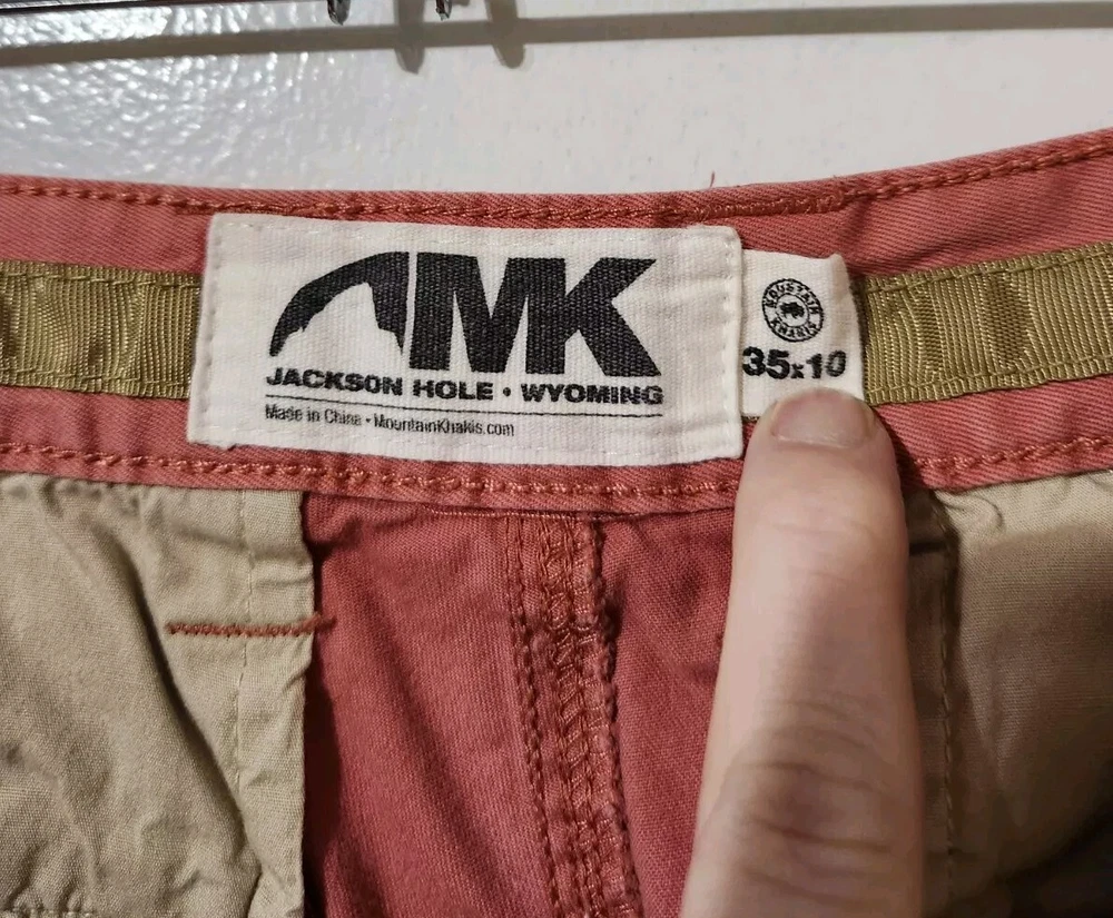Size: 35 Season: Fall, Spring, Summer Character: Fisherman Department: Men Fit: Classic Material: Cotton, Cotton Blend, Spandex Occasion: Business, Casual, Formal, Travel, Workwear Closure: Button Accents: Button, Embroidered, Logo, Zipper Color: Pink Inseam: 10 in Fabric Type: Canvas Rise: Mid (10-12 in) Features: Breathable, Easy Care, Pockets, Stretch, UV Protection, Water Resistant Theme: Nature, Outdoor, classic, mountains, active, camping, trail, hiking, fishing, trailrunning, backpacking, climbing, travel, adventure, gorpcore, arcteryx, patagonia, ll bean, rock climbing, crag hopping Pattern: Solid Size Type: Regular Personalize: No Fabric Wash: Medium Country/Region of Manufacture: China Handmade: No Style: Chino Brand: Mountain Khakis Front Type: Flat Front Garment Care: Machine Washable Pocket Type: 5-Pocket Design Waist Size: 35 in Vintage: No