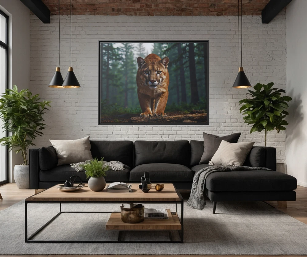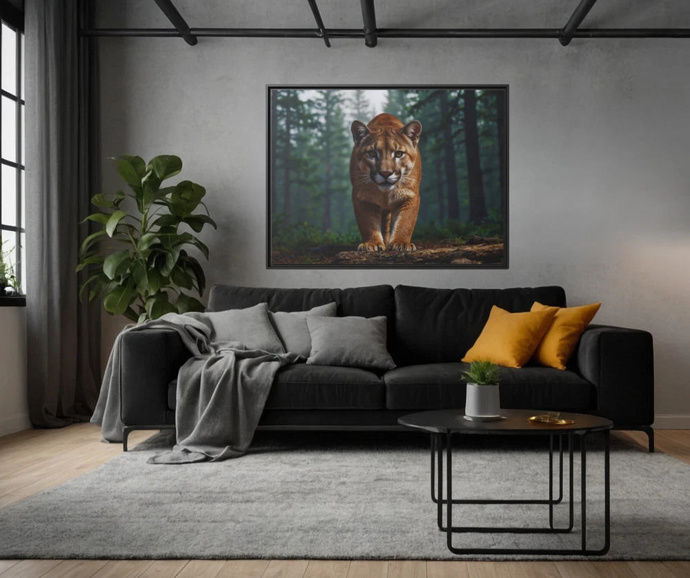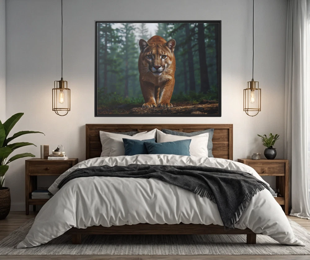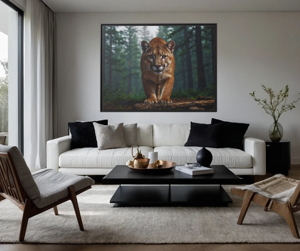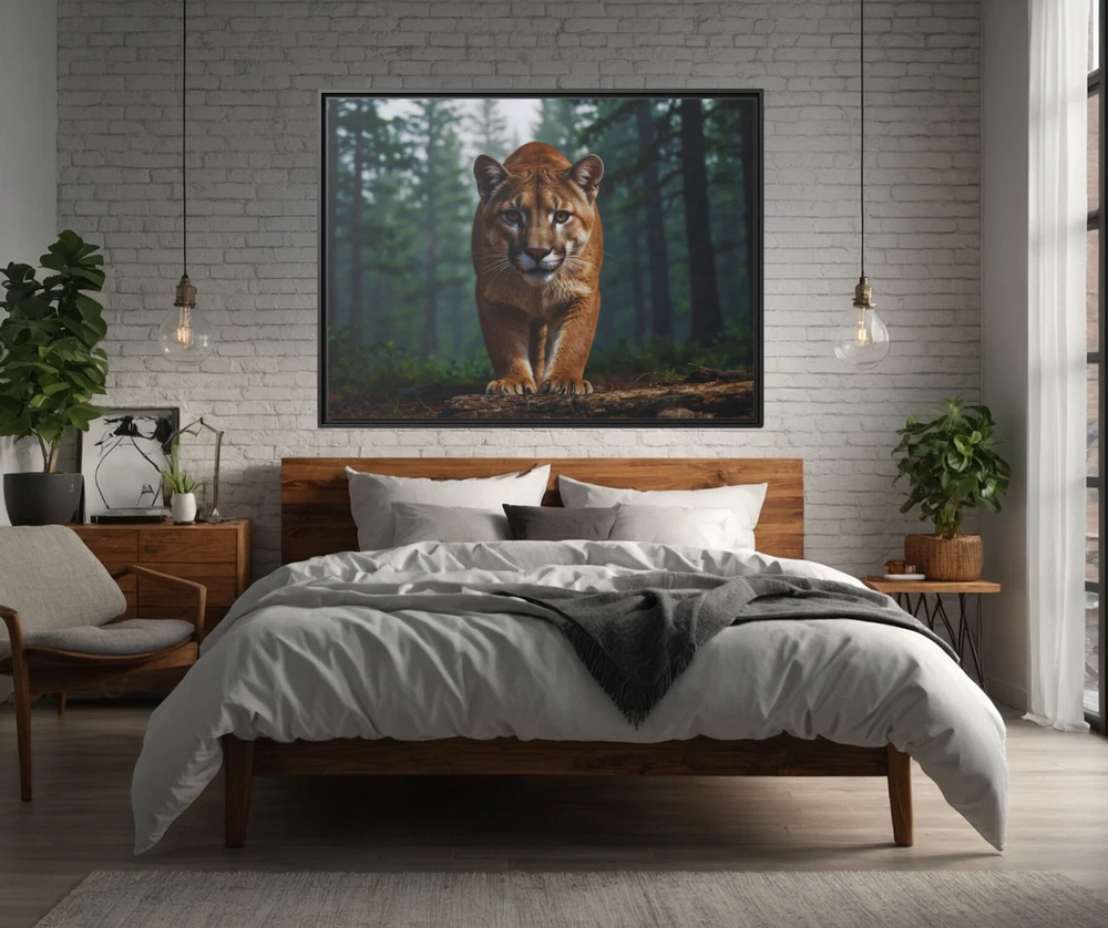 North American Mountain Lion 3D Wildlife Art | Framed Gallery Wrapped Canvas Experience the untamed beauty of nature in breathtaking detail with this Illustrative Wildlife 3D Effect Print featuring a North American mountain lion in its natural habitat. The captivating 3D effect enhances the depth and realism of the scene, bringing the majestic mountain lion to life as it prowls through its serene wilderness setting. This piece is a striking tribute to the raw beauty and grace of one of nature’s most elusive predators. Expertly printed on a cotton-polyester gallery-wrapped canvas, this artwork features stunning clarity and vibrant tones that draw the viewer into the scene. Framed in sleek black museum-quality pine wood, it combines durability with a polished aesthetic. Eco-friendly and ready to hang, this piece seamlessly blends artistry with sustainability, making it a perfect addition to any space. Key Features: 3D Effect Design: An illustrative print enhanced with a 3D effect, adding depth and realism to the mountain lion and its natural surroundings. Premium Canvas: Cotton-polyester blend canvas ensures vivid, lifelike colors and fine detail. Eco-Friendly Frame: Crafted from sustainably sourced black pine wood, offering an elegant and durable finish. Gallery Wrapped: Canvas edges are wrapped neatly for a sleek, professional appearance. Ready to Hang: Equipped with pre-installed hardware for hassle-free display. Fade-Resistant: Advanced printing techniques preserve vibrancy and detail for years. Versatile Decor: Ideal for wildlife enthusiasts, nature-inspired interiors, or creating a focal point in any room. Size Options: 24x18, 32x24, 40x30 This Mountain Lion 3D Wildlife Art is not just a piece of decor—it’s an immersive window into the wilderness. Whether displayed in a living room, office, or study, it evokes a sense of awe and appreciation for the beauty of the natural world. A perfect gift for nature lovers or those who appreciate striking and unique artwork. Unframed Semi-Gloss Photo Paper Print (180gsm) This unframed semi-gloss photo paper print is crafted from bright white satin-finished paper, delivering vibrant and sharp color fidelity. The Giclée printing process ensures bright, intense colors that resist fading, even with regular sunlight exposure. Durable and easy to maintain, simply wipe off dust gently with a clean, dry cloth to keep it looking pristine. Perfect for showcasing your favorite designs with lasting brilliance. * Shipping to Alaska, Hawaii, and unincorporated territories of the United States can take additional 7 ? 12 business days, weather permitting.
