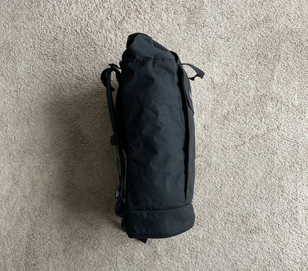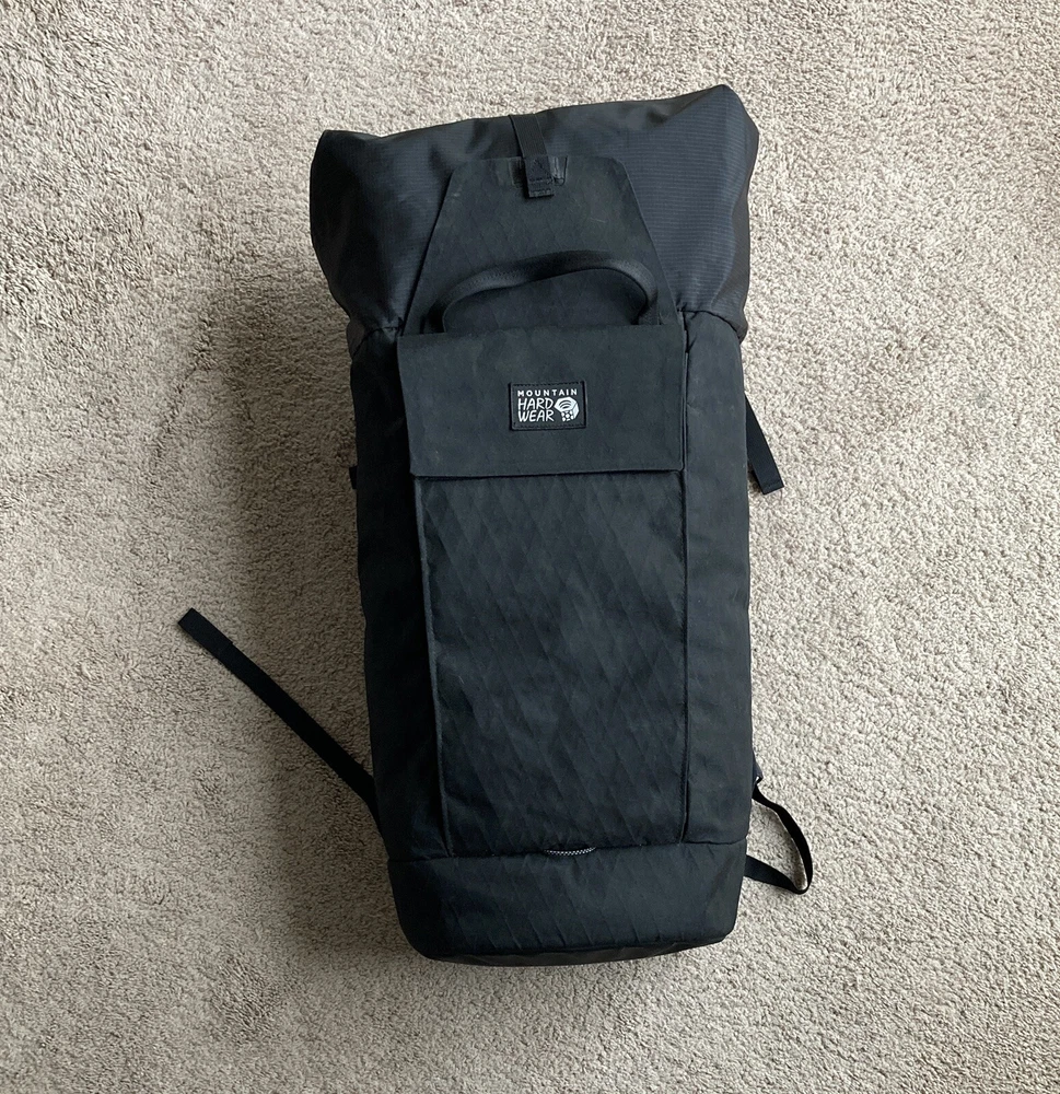 I used it for a couple months commuting to work, but I no longer have a need to carry as much stuff around. It has a massive main pocket with a small zippered pocket inside and a decent sized outside pocket with a little bit of organizing elastic pockets. This Mountain Hardwear Grotto backpack is a top-of-the-line choice for backpacking and hiking enthusiasts. With a spacious 35 L capacity, it has enough room for all your essentials and then some. The backpack features a hook and loop closure for easy access, as well as external pockets for storing your belongings. The roll top design provides added protection for your belongings, while the laptop compartment allows you to carry your work or school laptop with ease. The backpack is available in sleek black color, making it a stylish choice for any adventure.