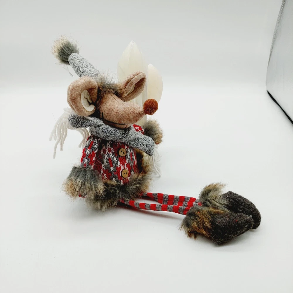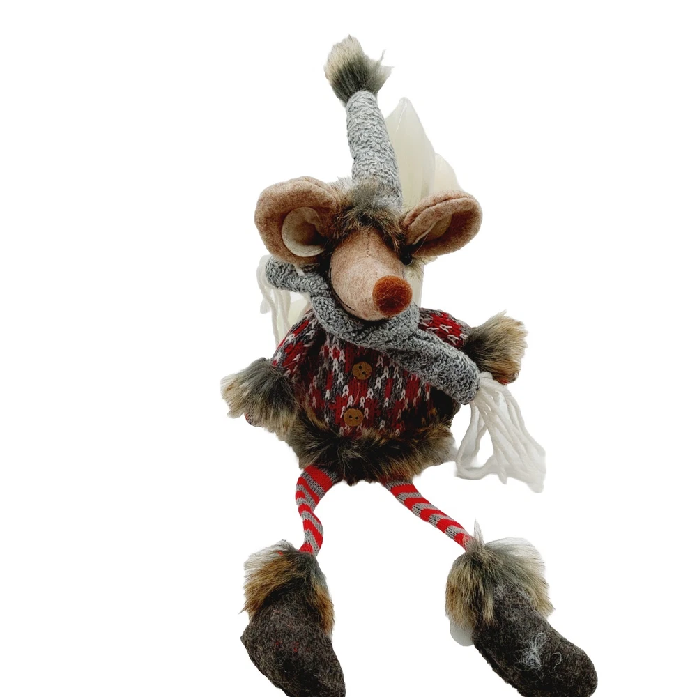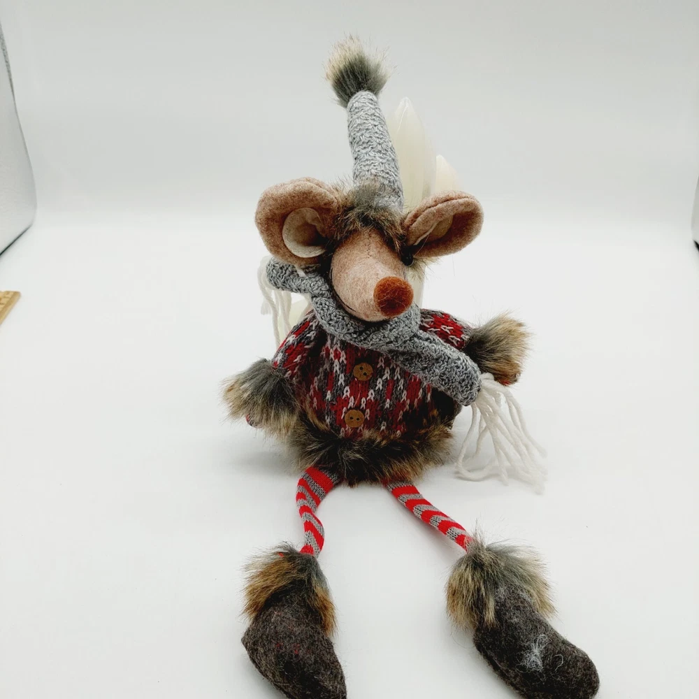 Mouse Plush Brown Shelf Sitter Felted Long Legs Gray Hat Scarf Stuffed