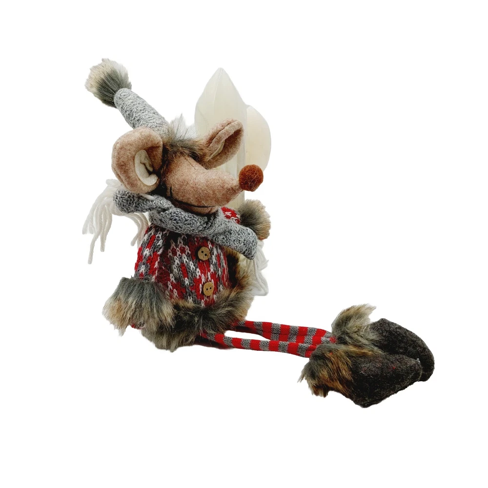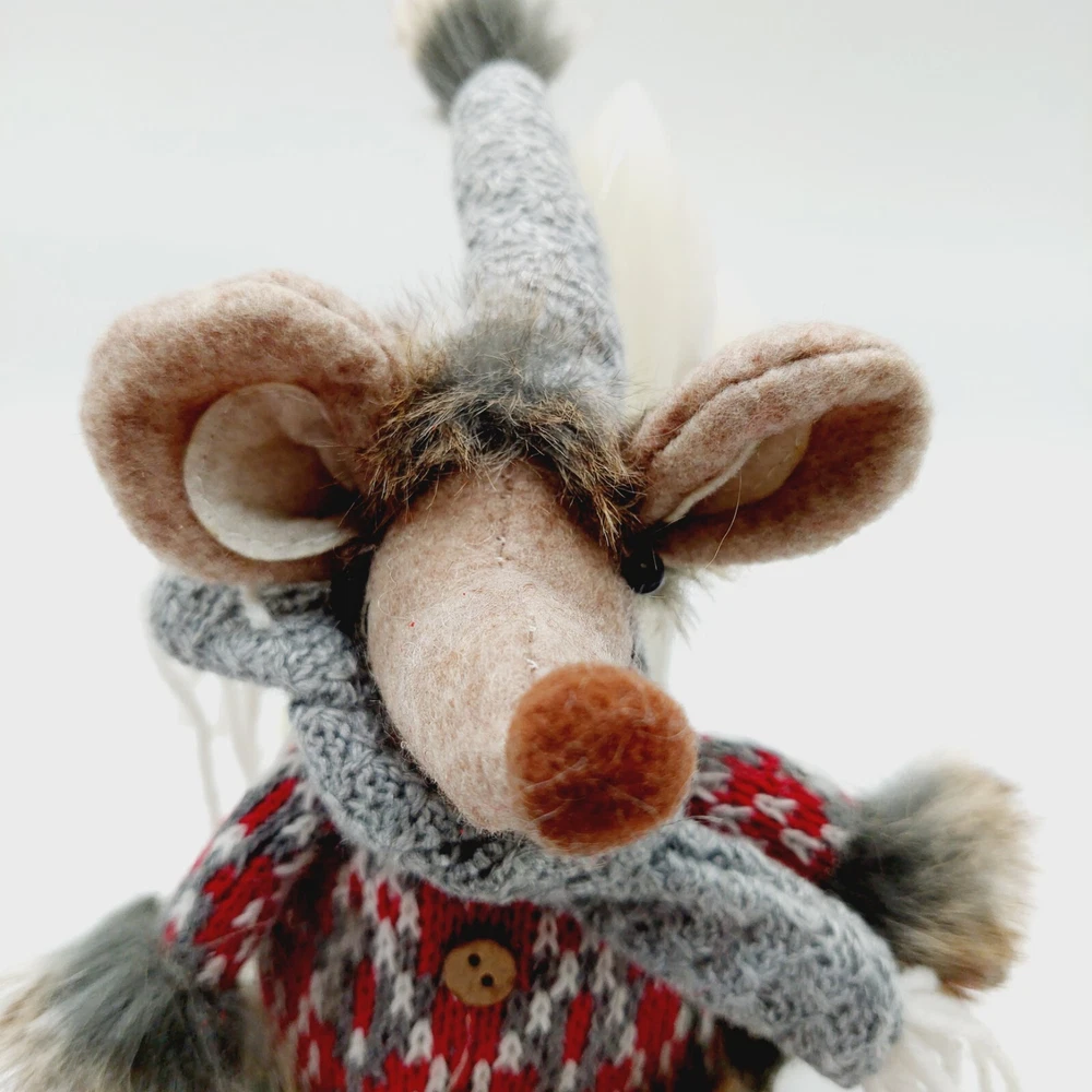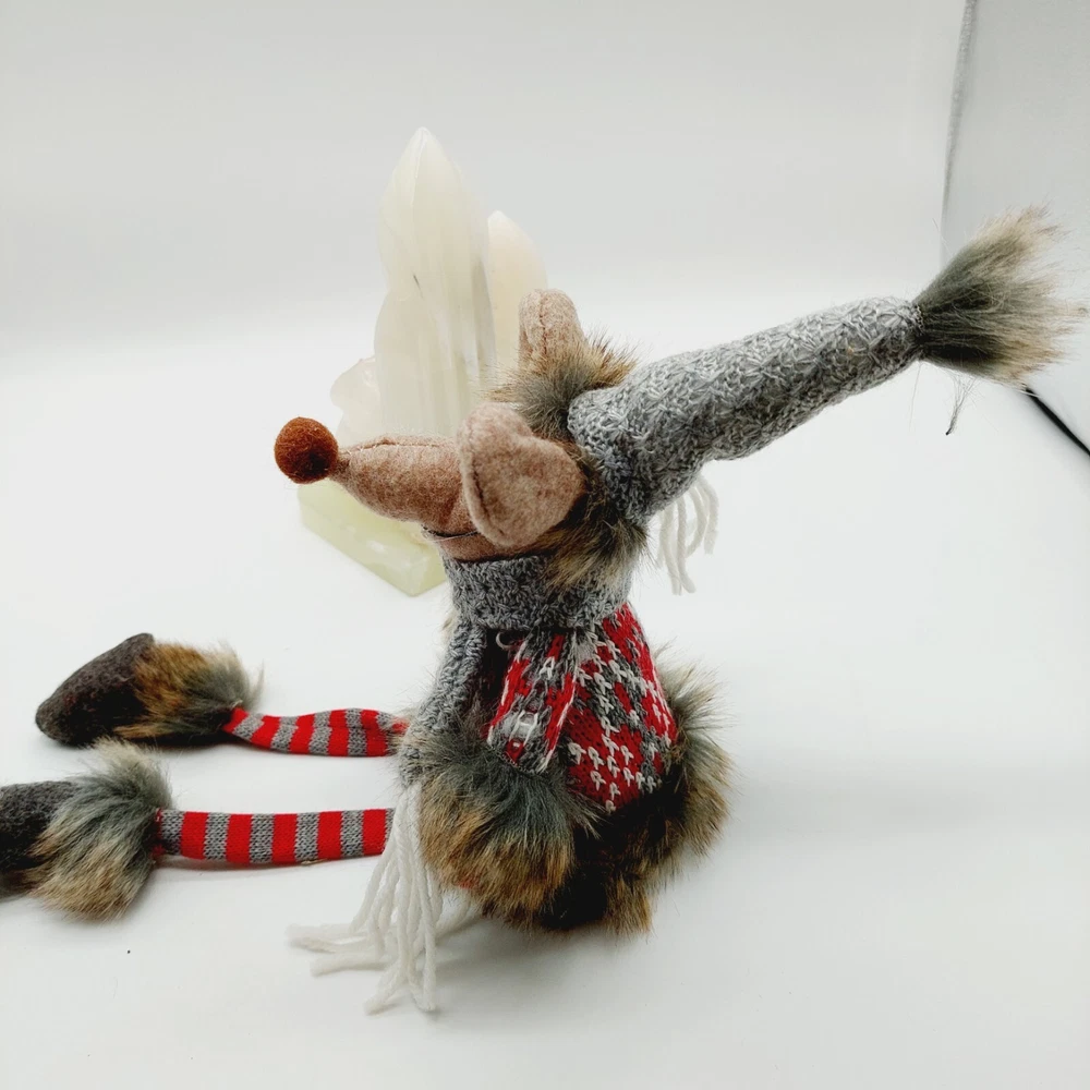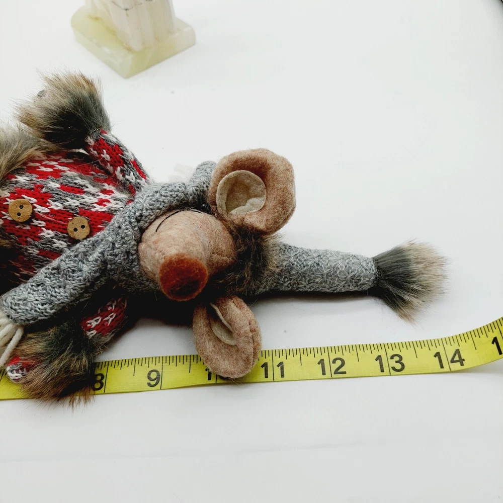 Mouse Plush Brown Shelf Sitter Felted Long Legs Gray Hat Scarf Stuffed